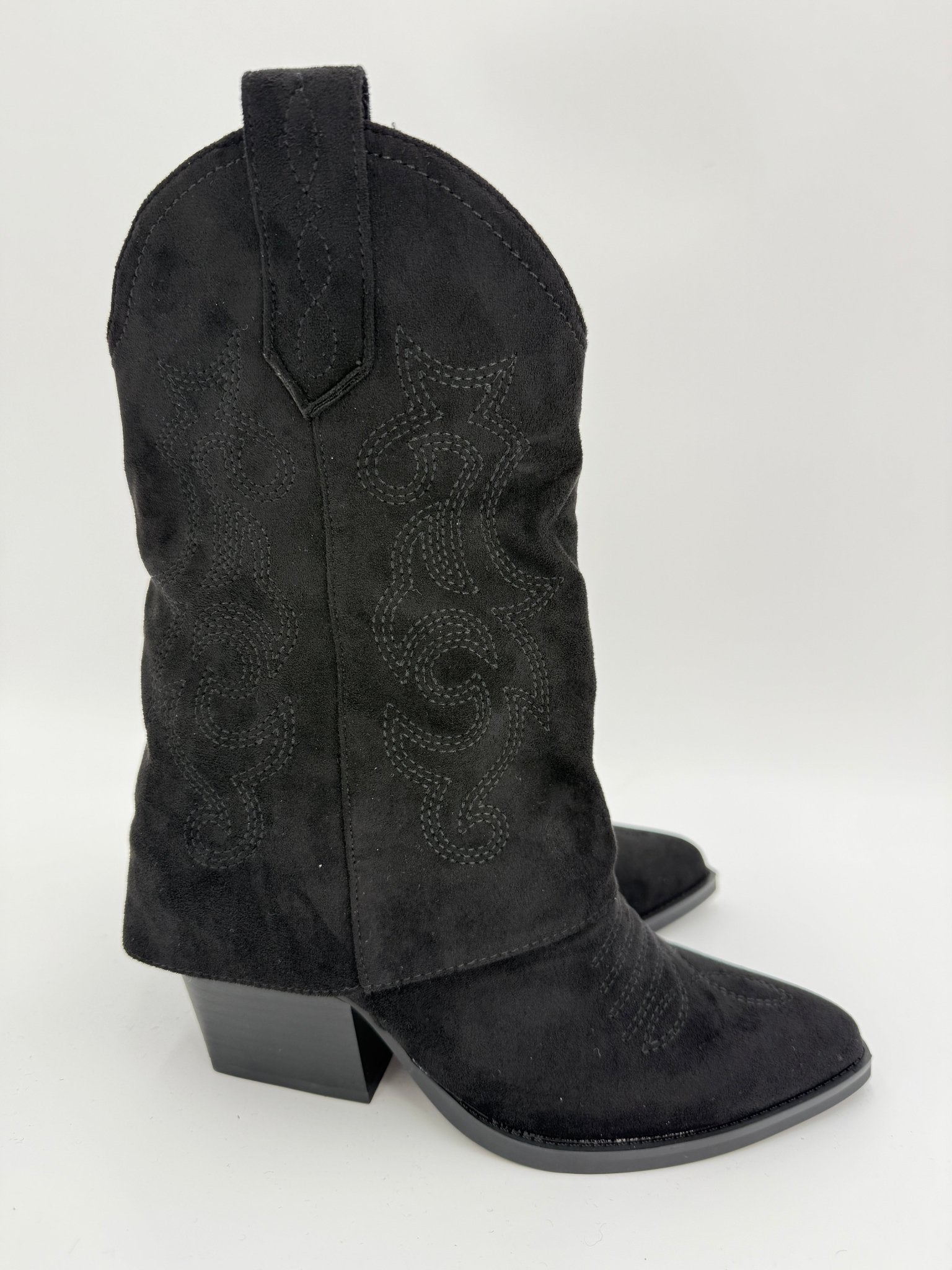 Make a statement with these bold fold-over cowboy boots, expertly designed for those who refuse to blend in. The sumptuous faux suede construction delivers a refined aesthetic, whilst the signature fold-over silhouette ensures you'll turn heads at every festival and occasion. Full zip fastening allows quick transitions between venues, and the embroidered detailing showcases genuine craftsmanship. The pointed toe and pull tab complete a boot that honours Western tradition whilst embracing contemporary style. An investment piece for the discerning dresser seeking authentic character with modern practicality. Shark boot.