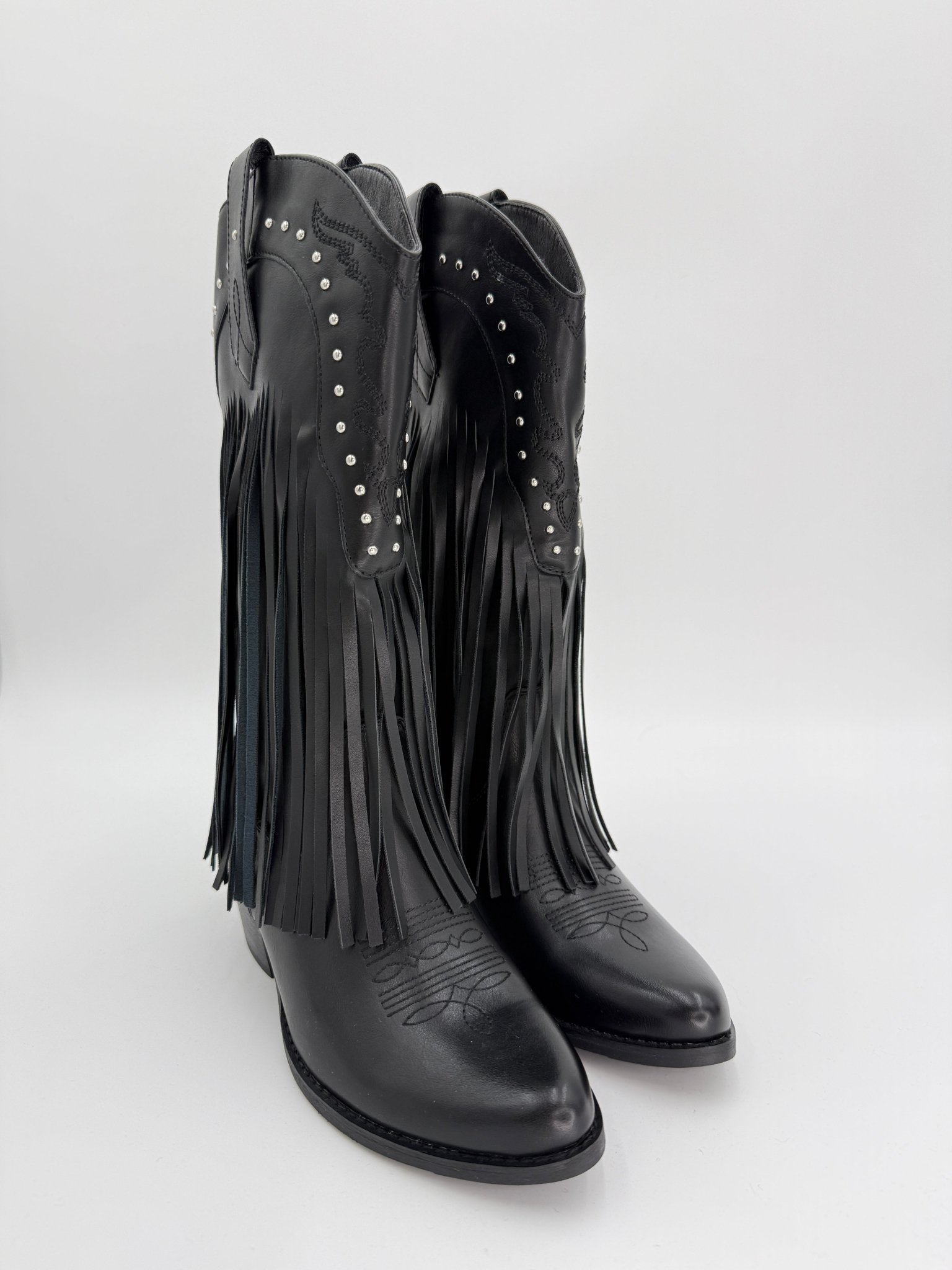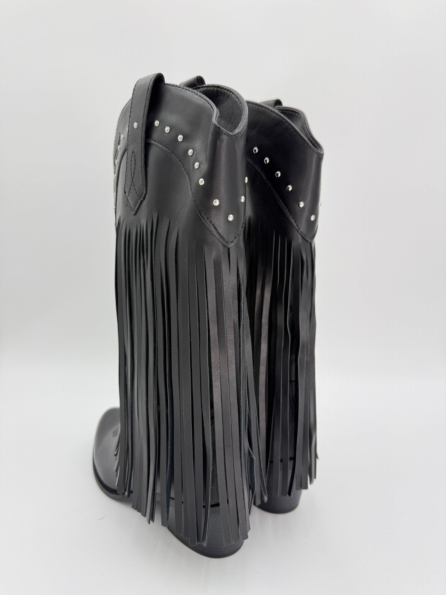 Black Fringe Faux Leather Cowboy Boots