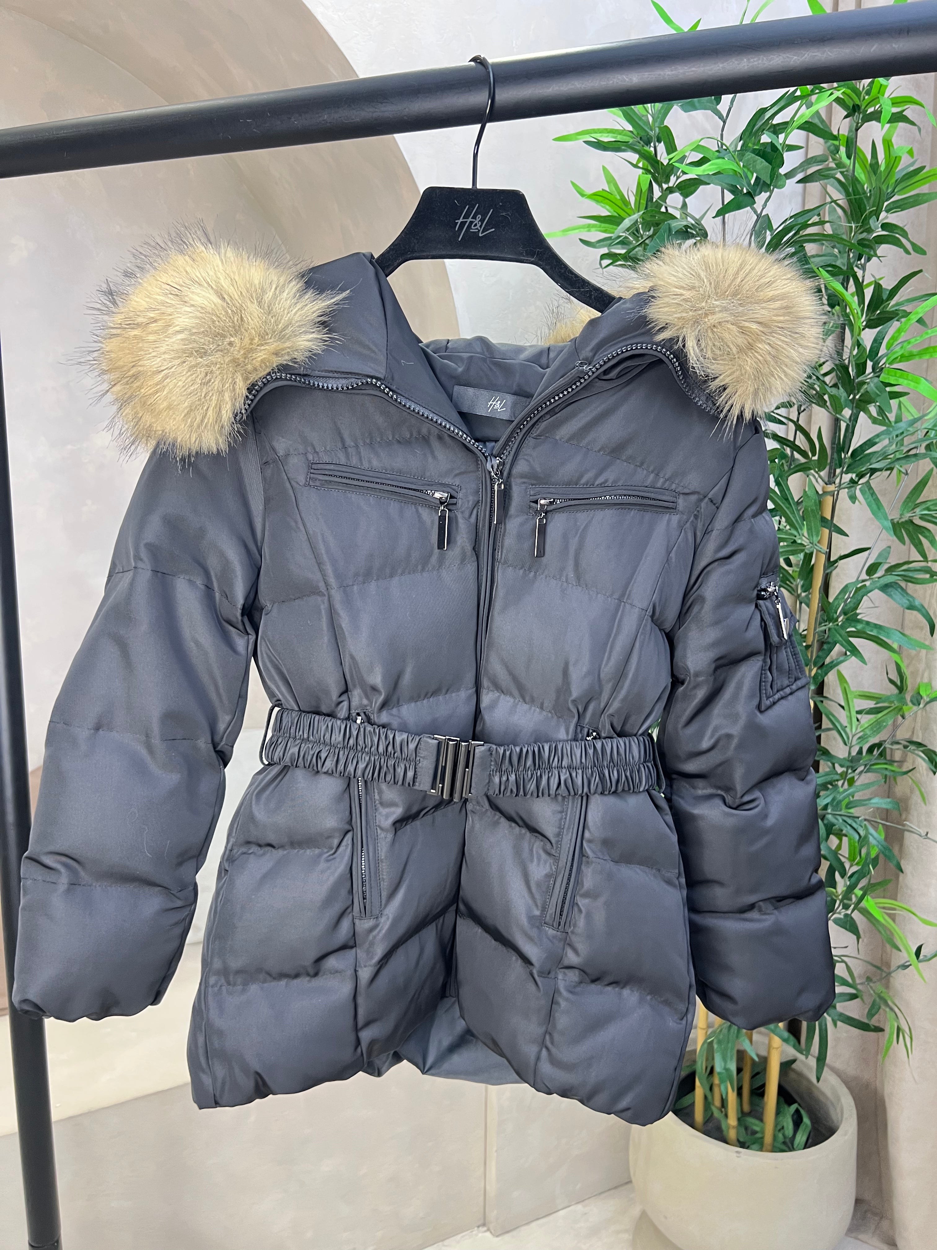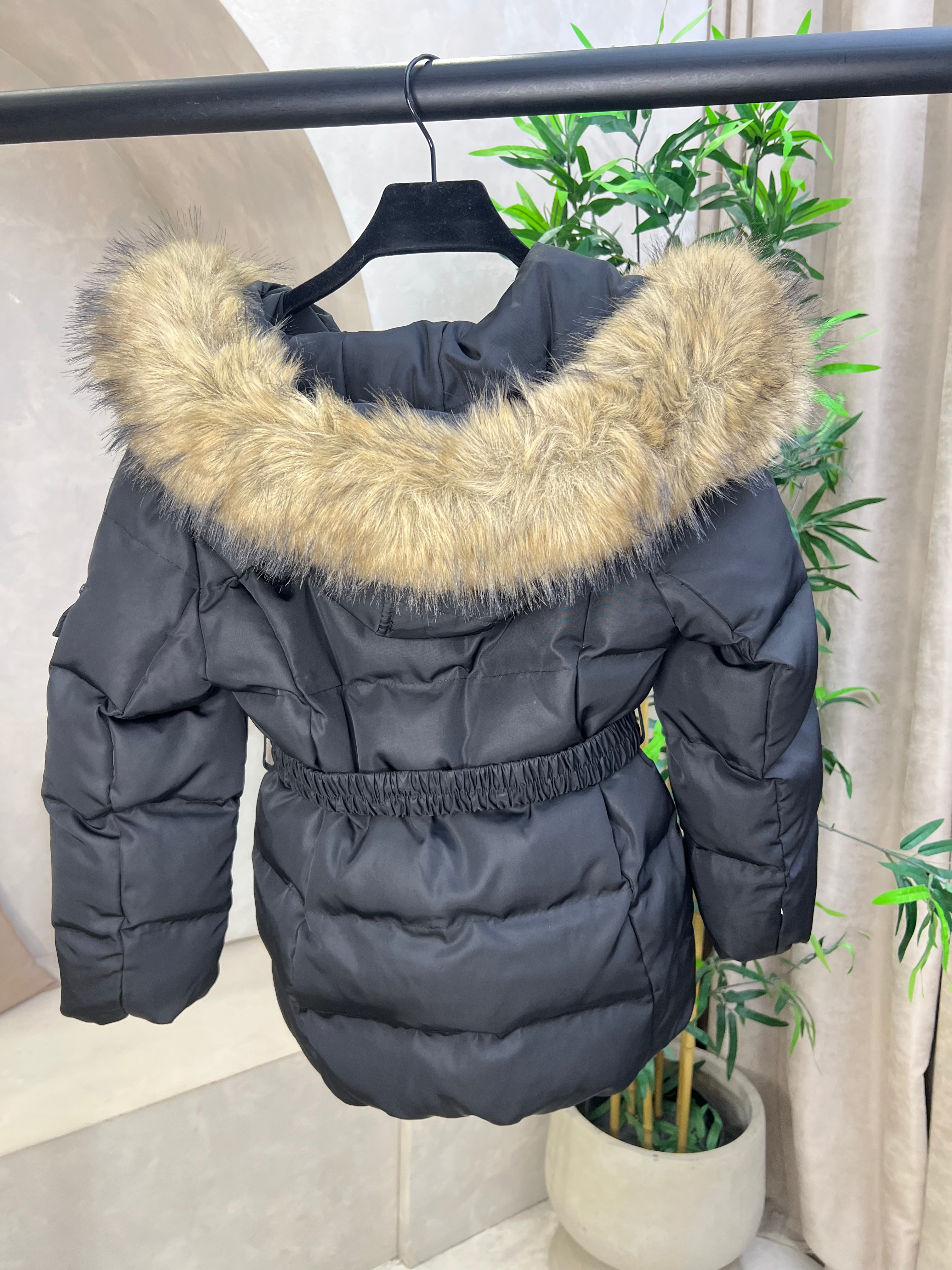Childrens Black Faux Fur Padded Belted Coat Sample