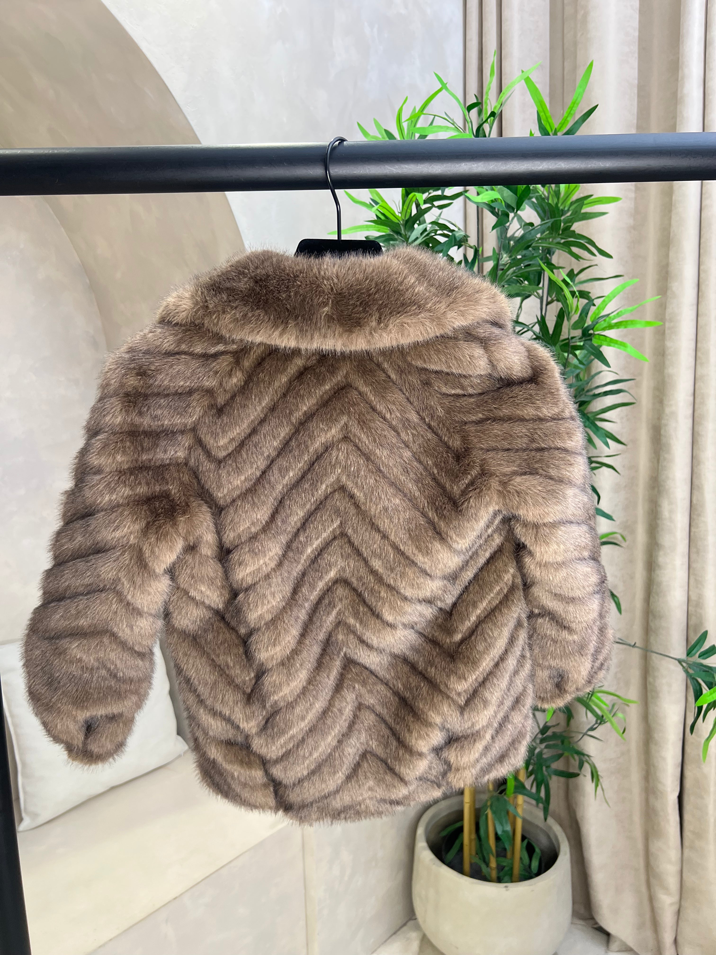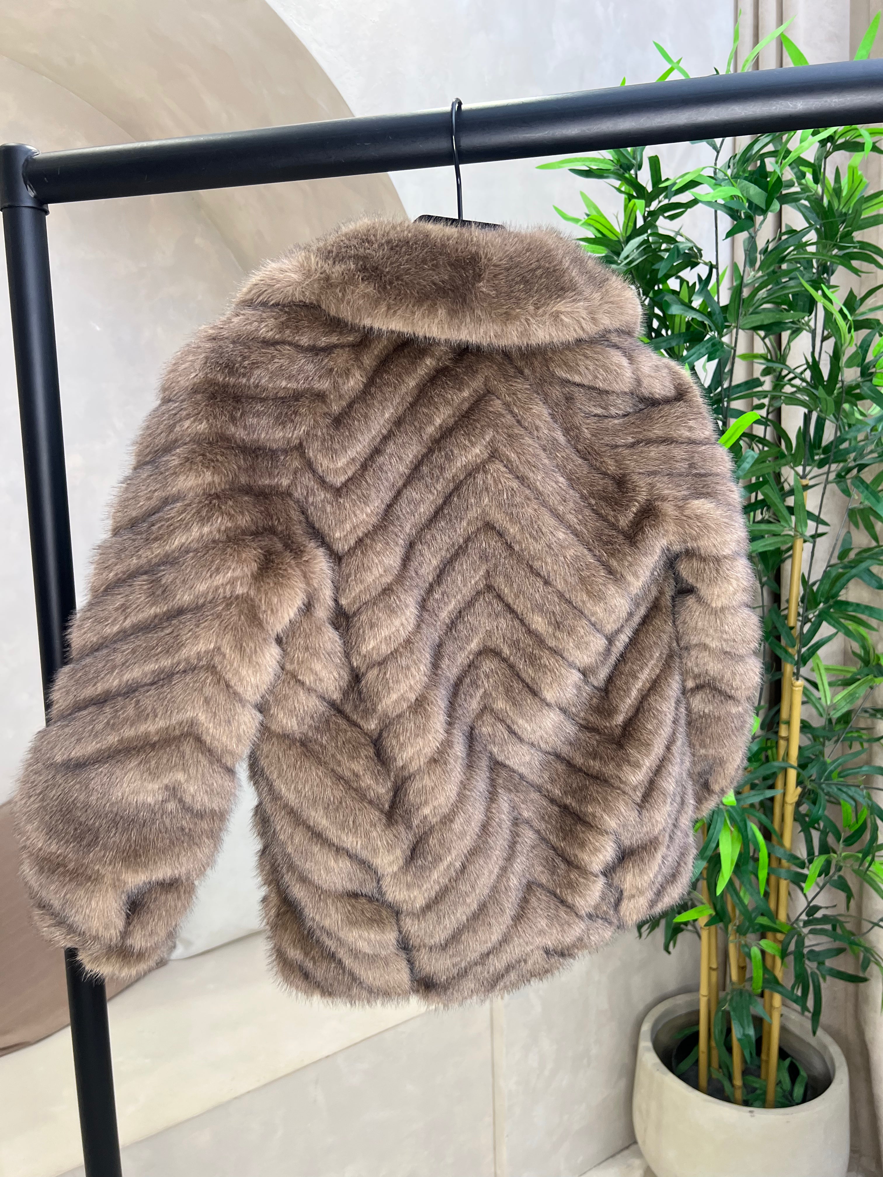 Childrens Chocolate Faux Fur Zig Zag Coat Sample