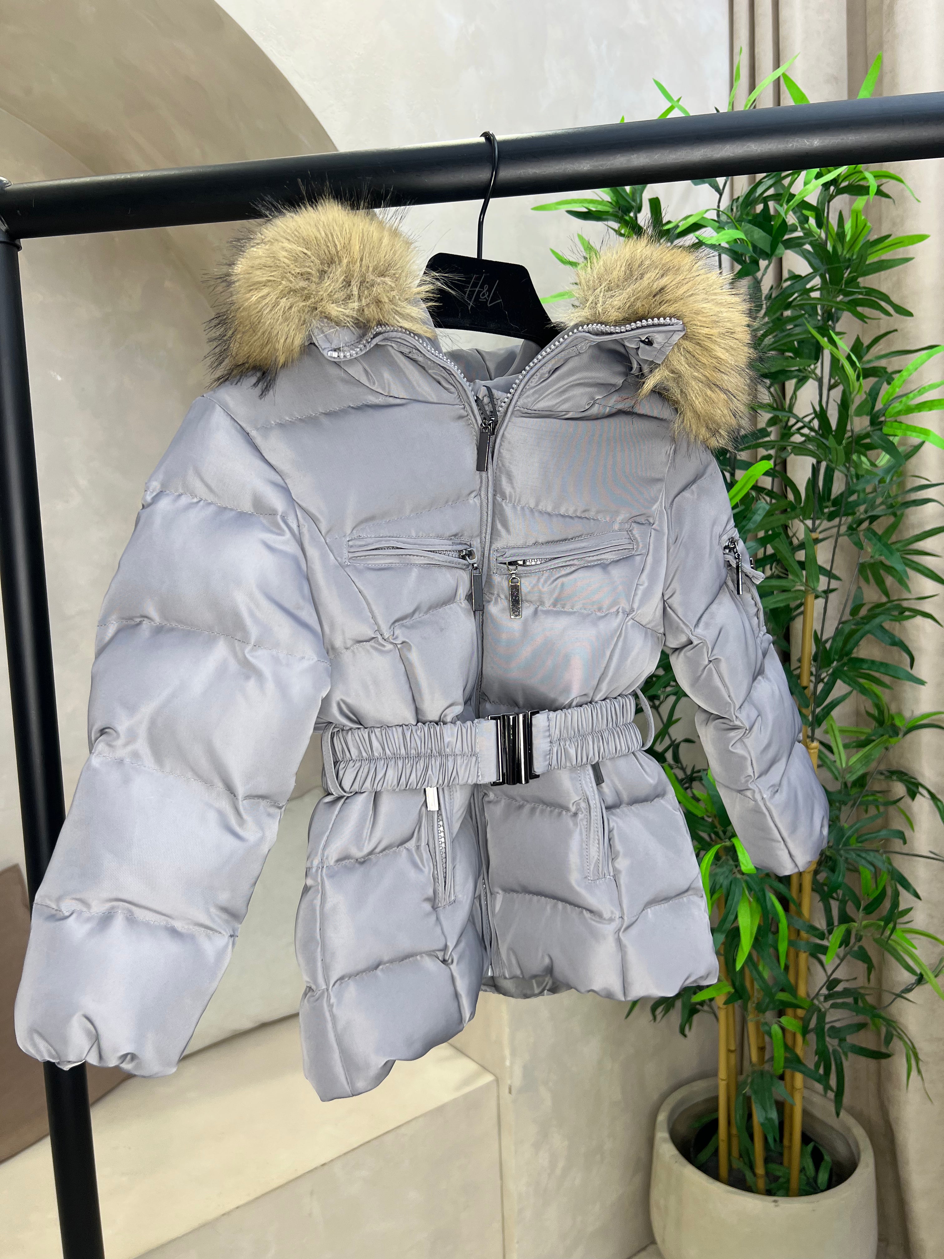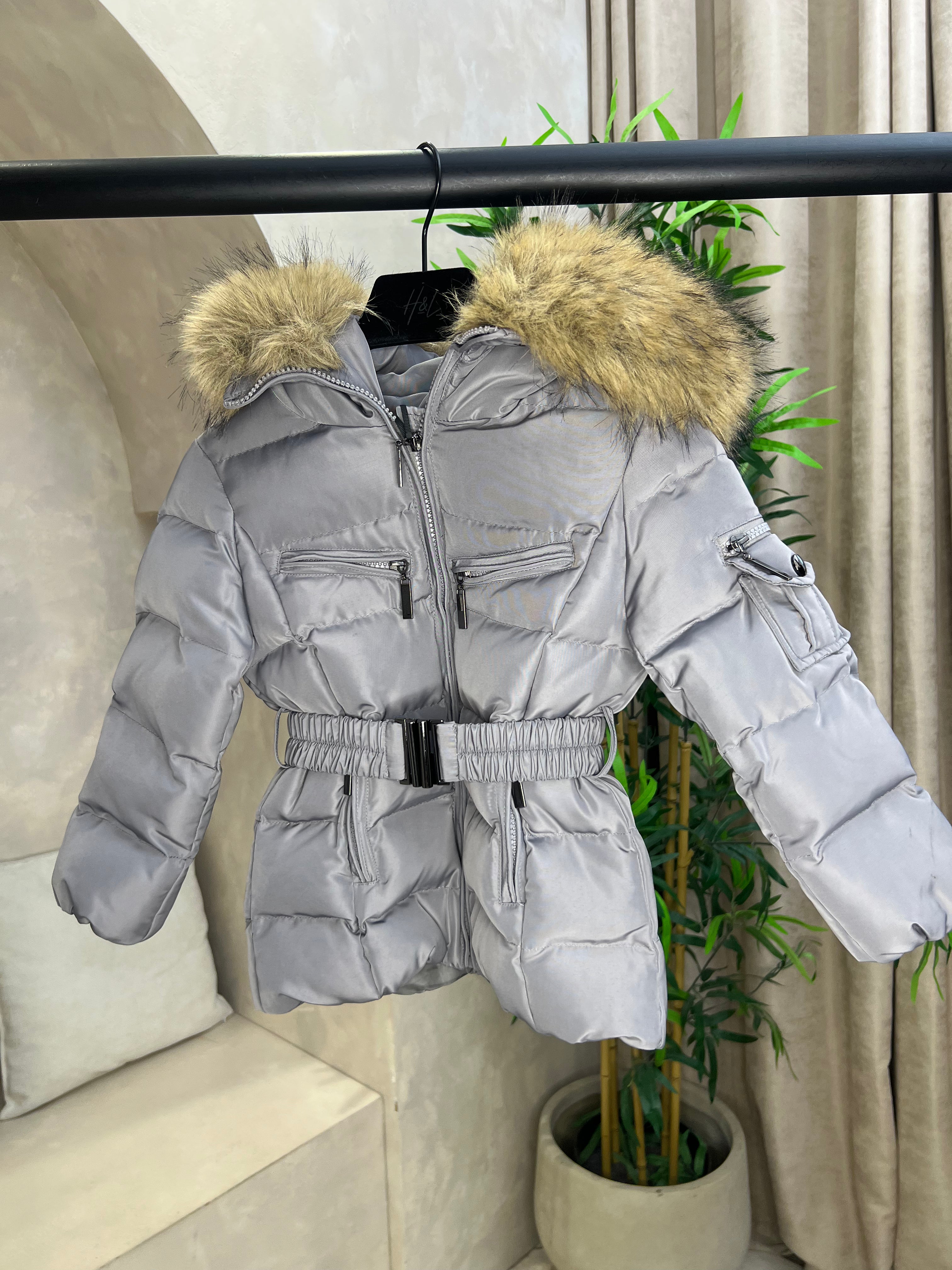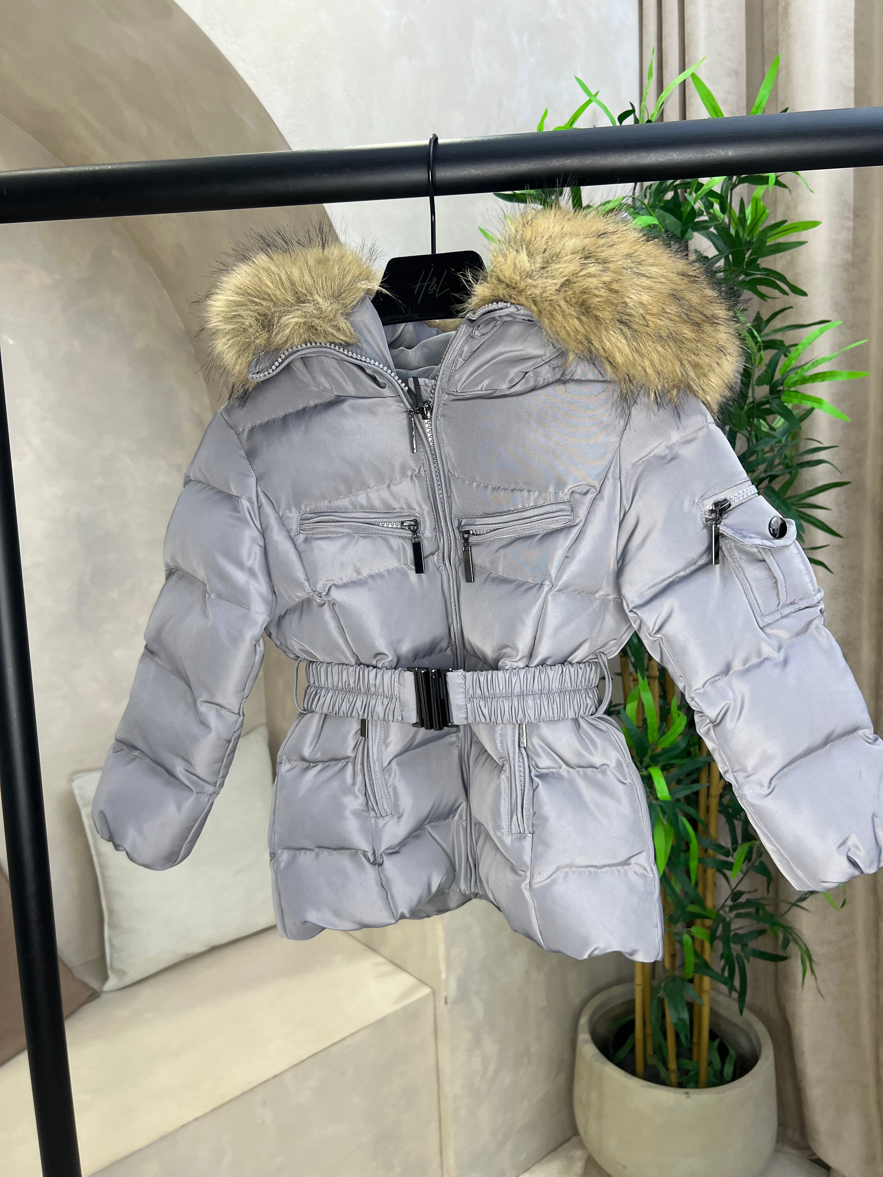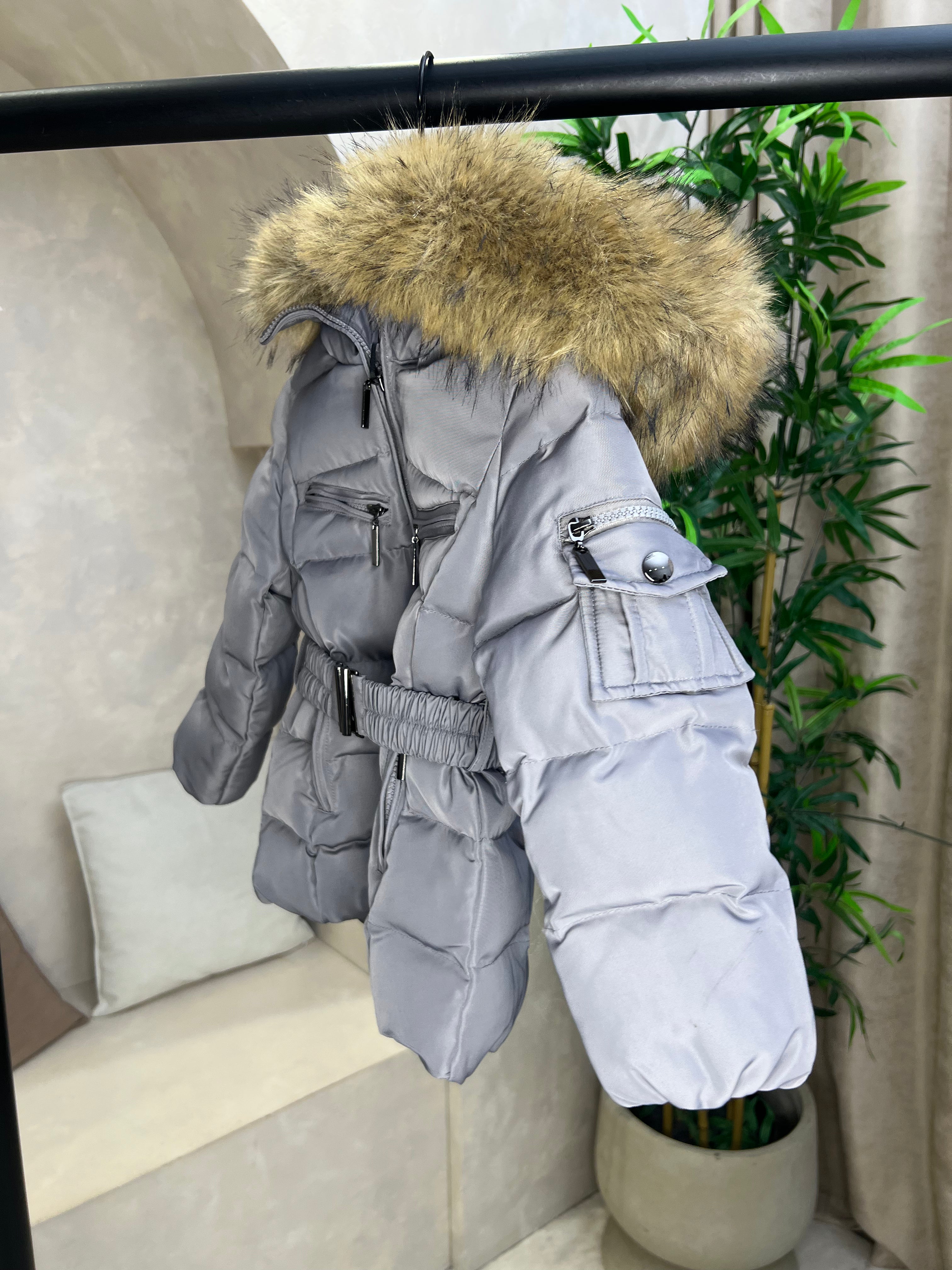 Childrens Grey Faux Fur Padded Belted Coat Sample