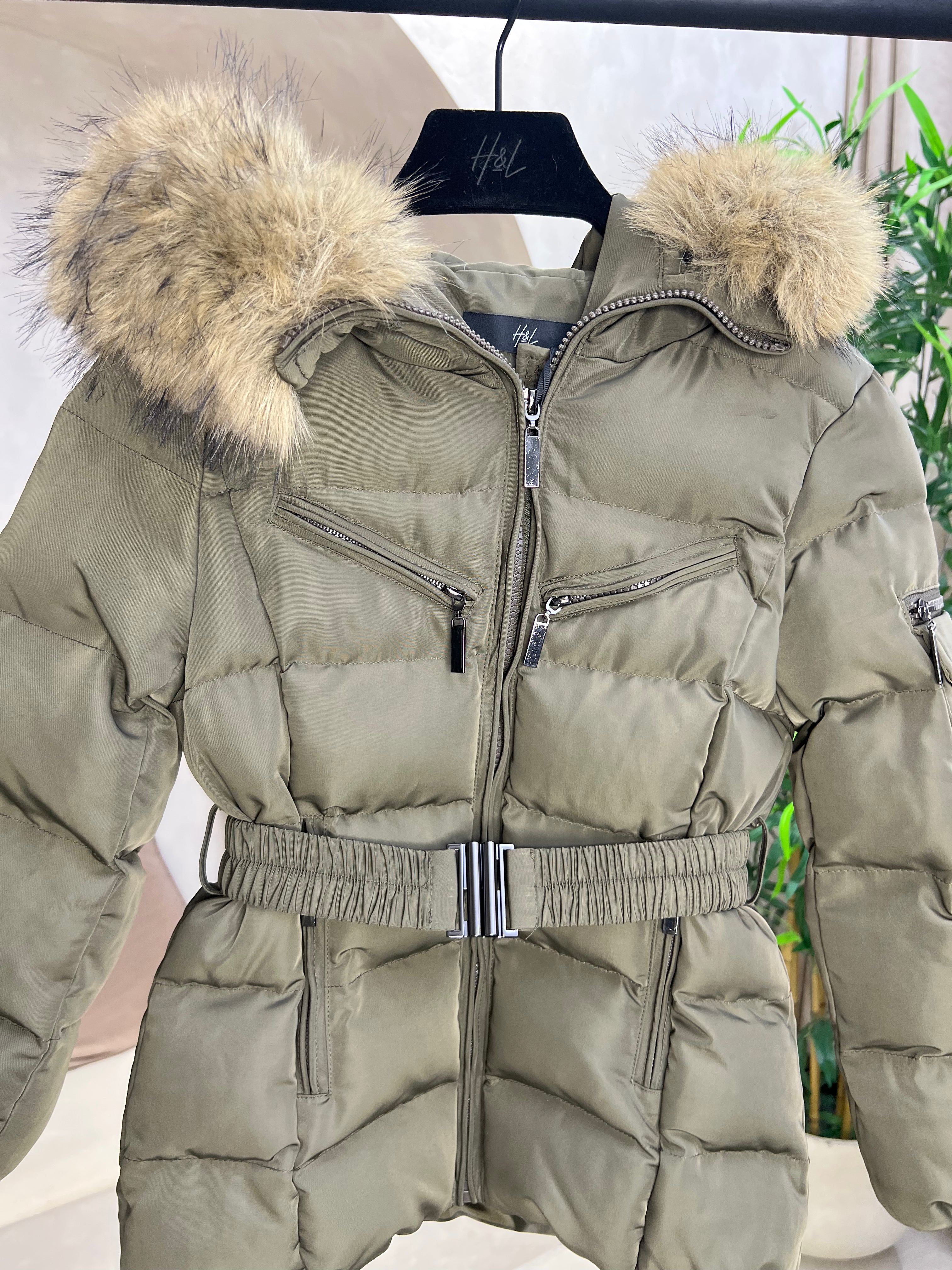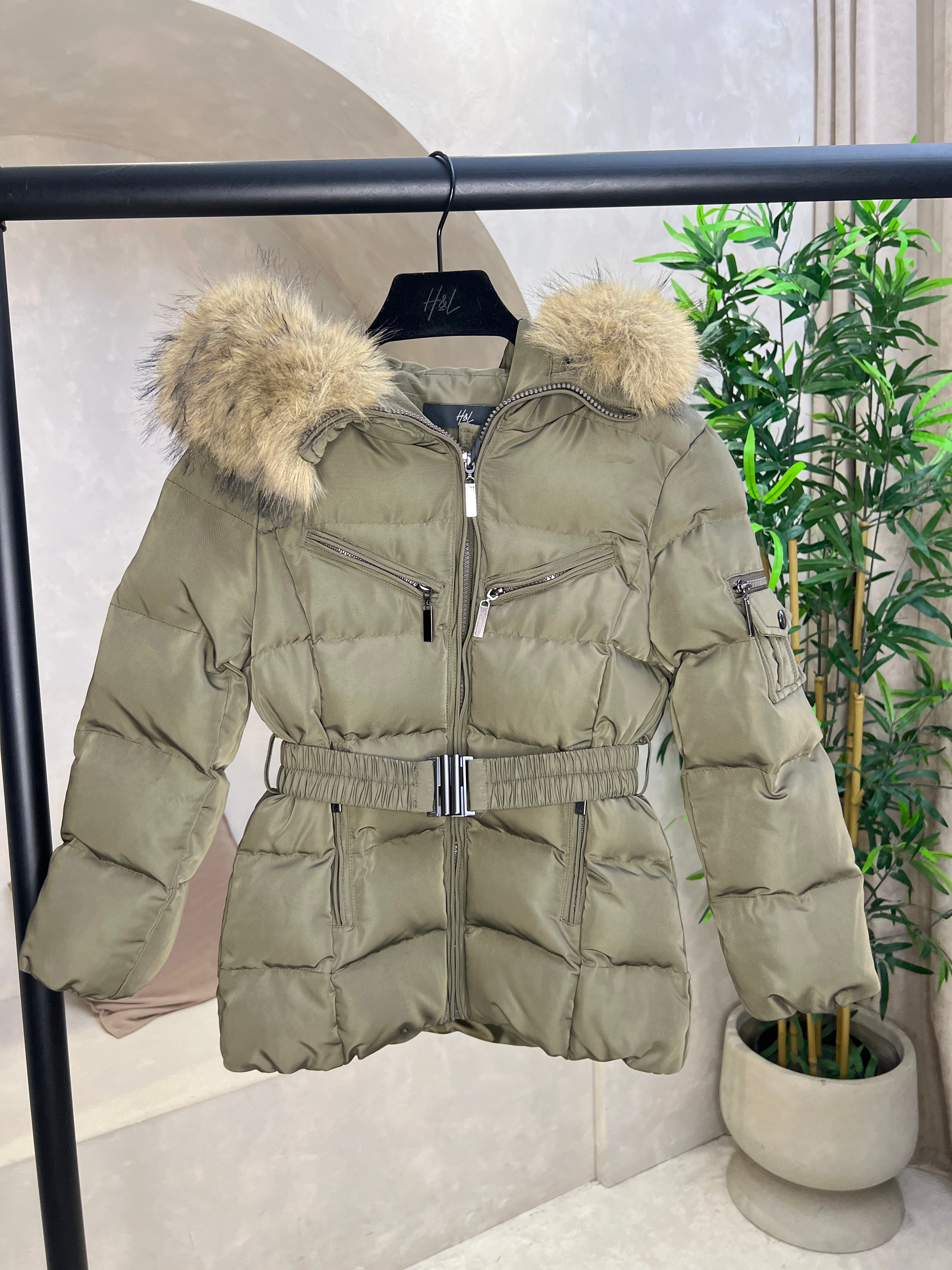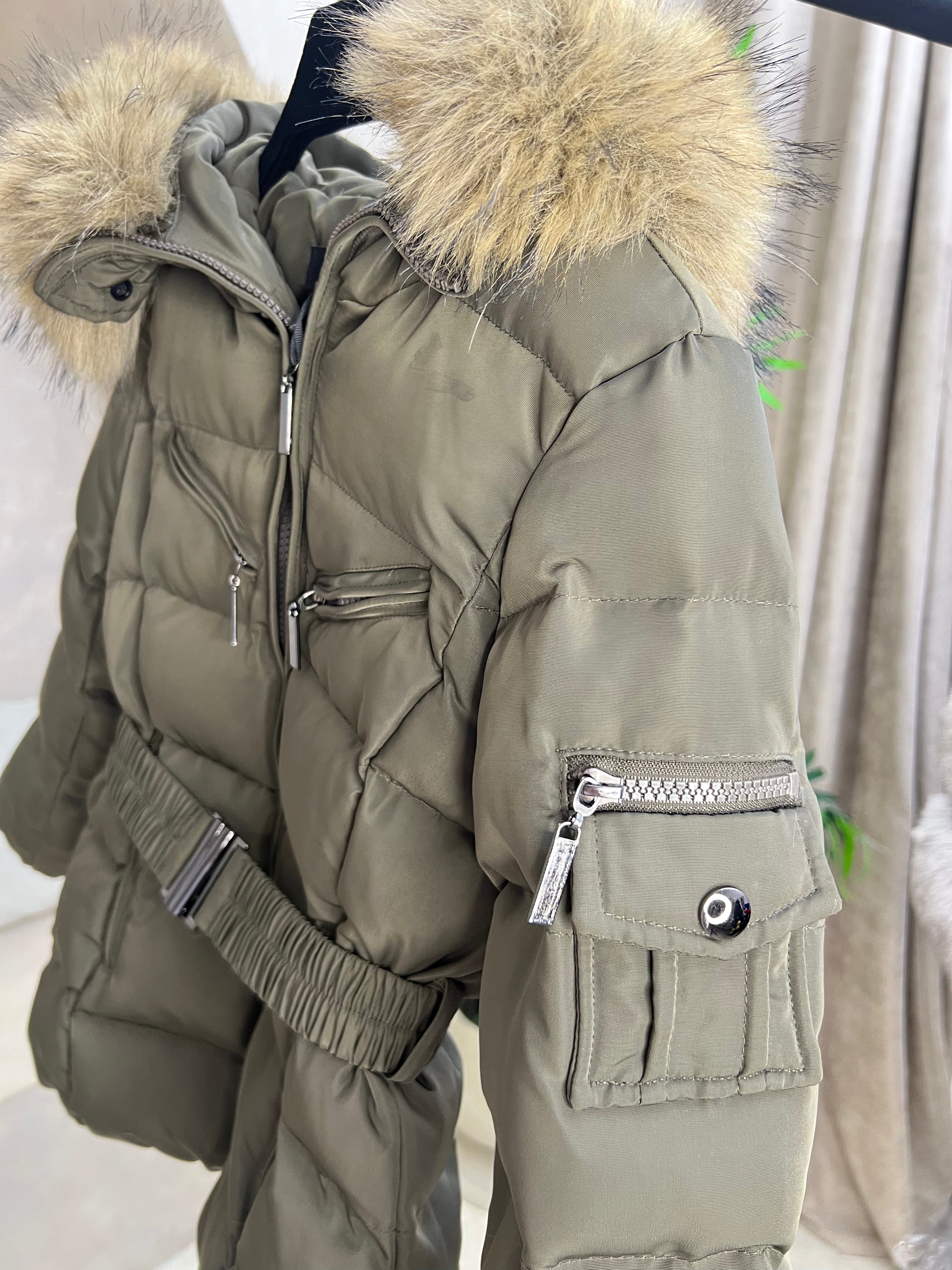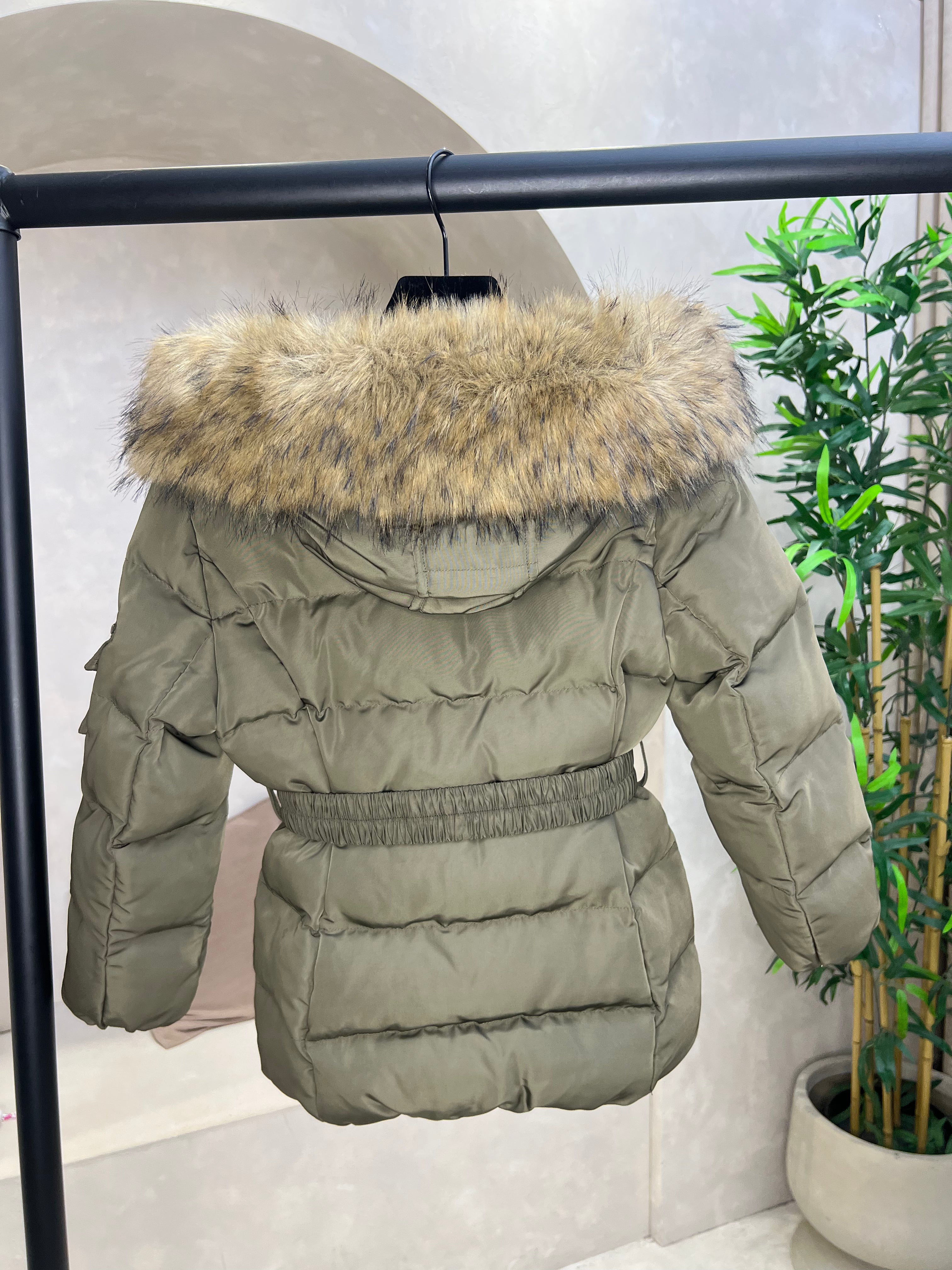Childrens Khaki Faux Fur Padded Belted Coat Sample