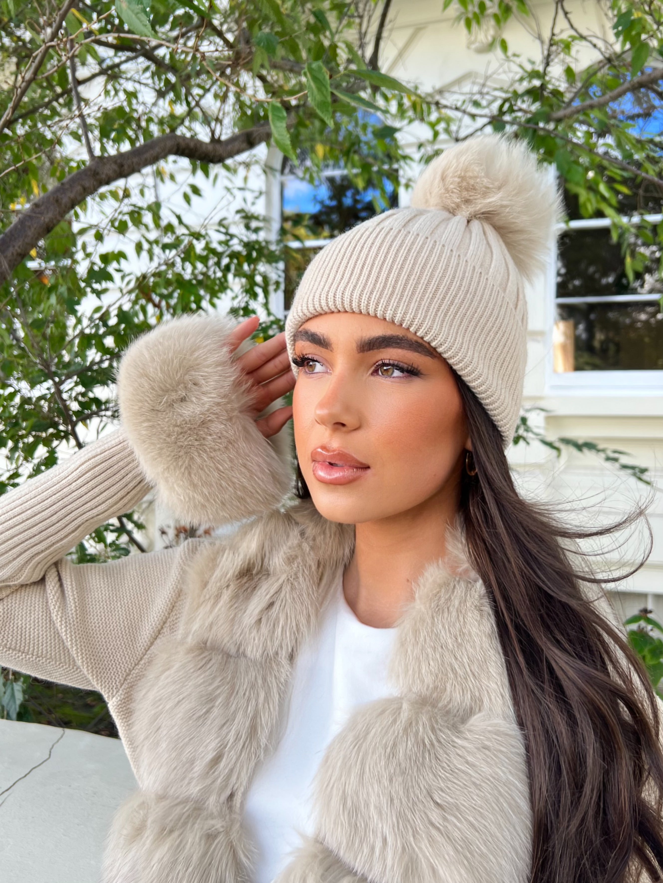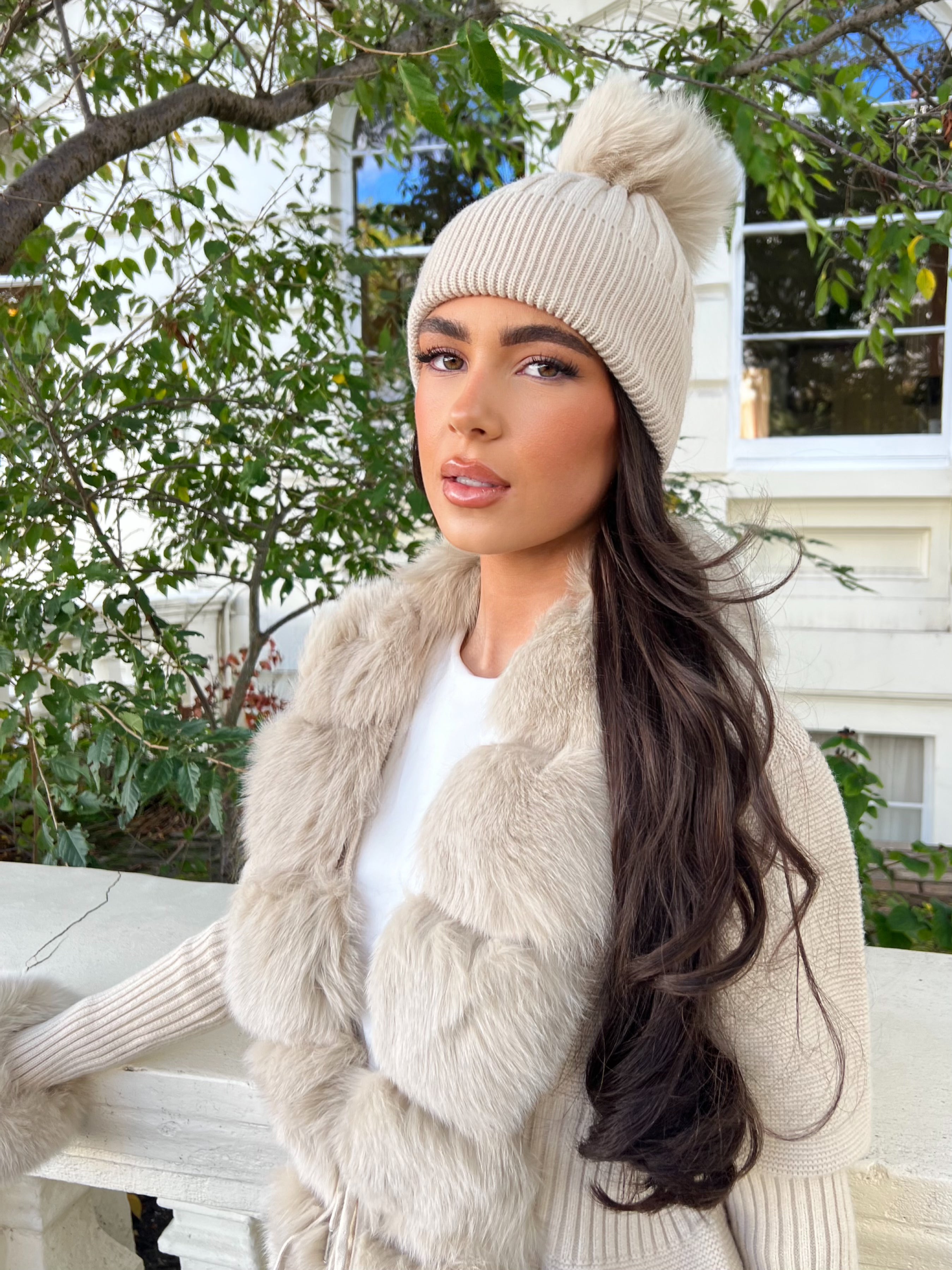 Diese luxuriöse Pelzbommelmütze ist die ultimative Wahl sowohl für Mode als auch für Funktion. Diese aus luxuriösem Fell gefertigte Mütze ist nicht nur stilvoll, sondern auch unglaublich gemütlich und warm. Mit diesem unverzichtbaren Accessoire bleiben Sie in den kälteren Monaten im Trend und bequem.