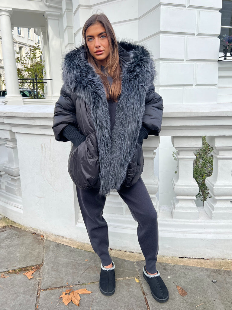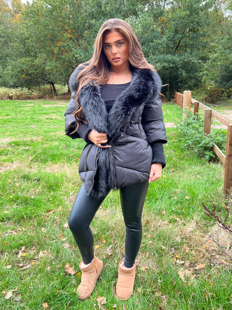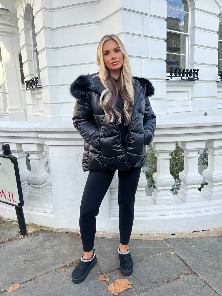 Black Faux Fur Hood Puffer Jacket