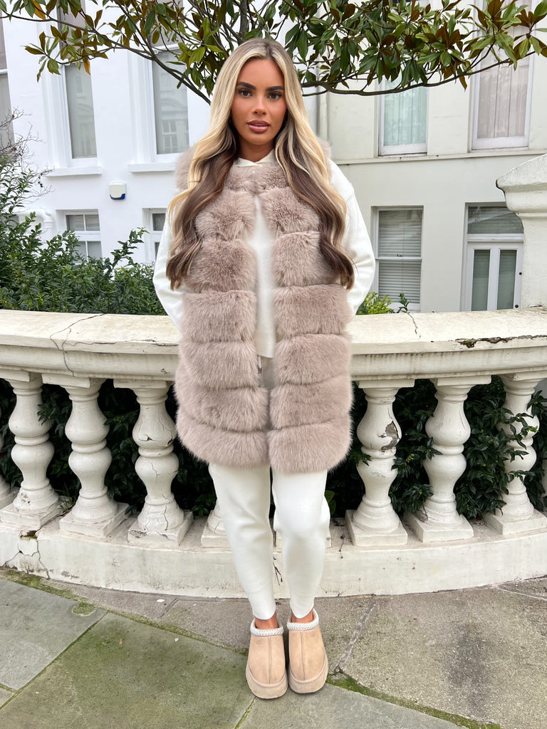 Beige Premium-Longline-Gilet aus Kunstpelz