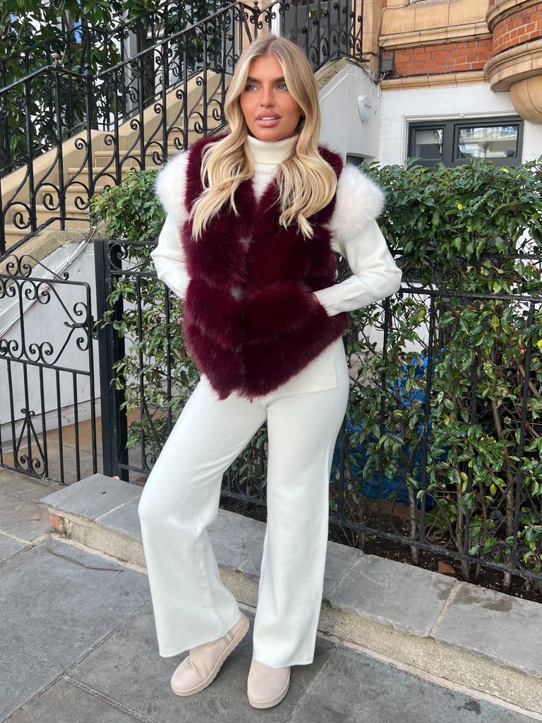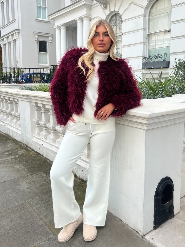 Weinrote Premium-Kunstpelzjacke