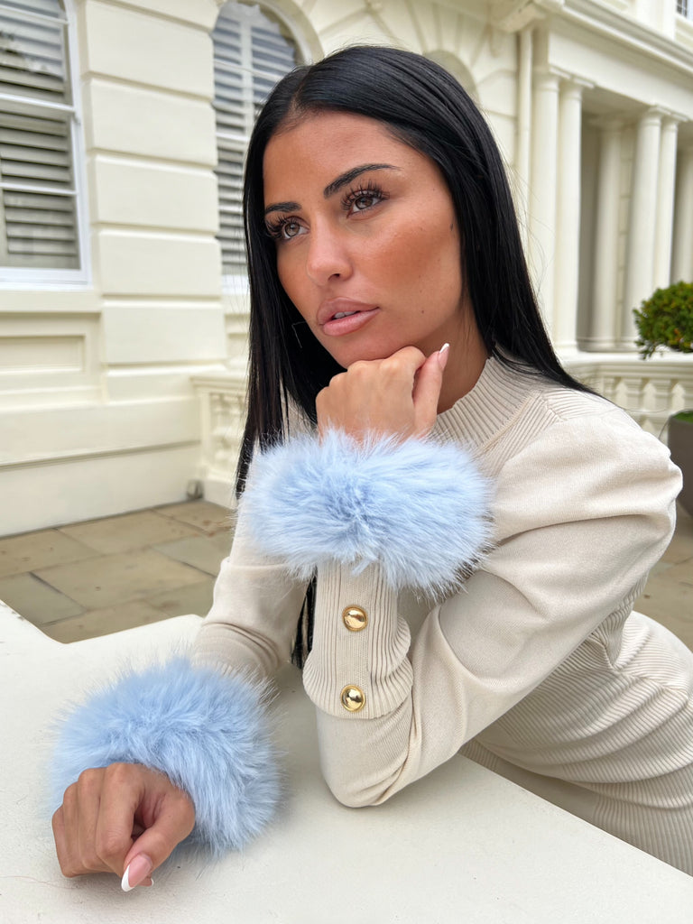 Babyblaues Druckknopfband, luxuriöse Pelzmanschetten