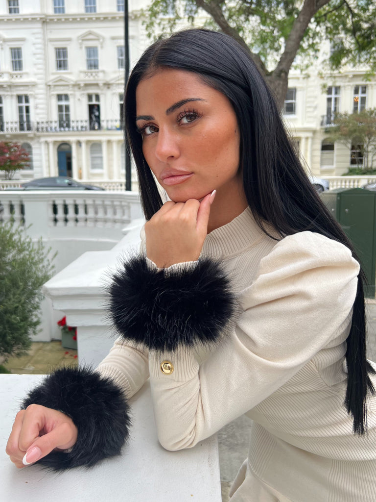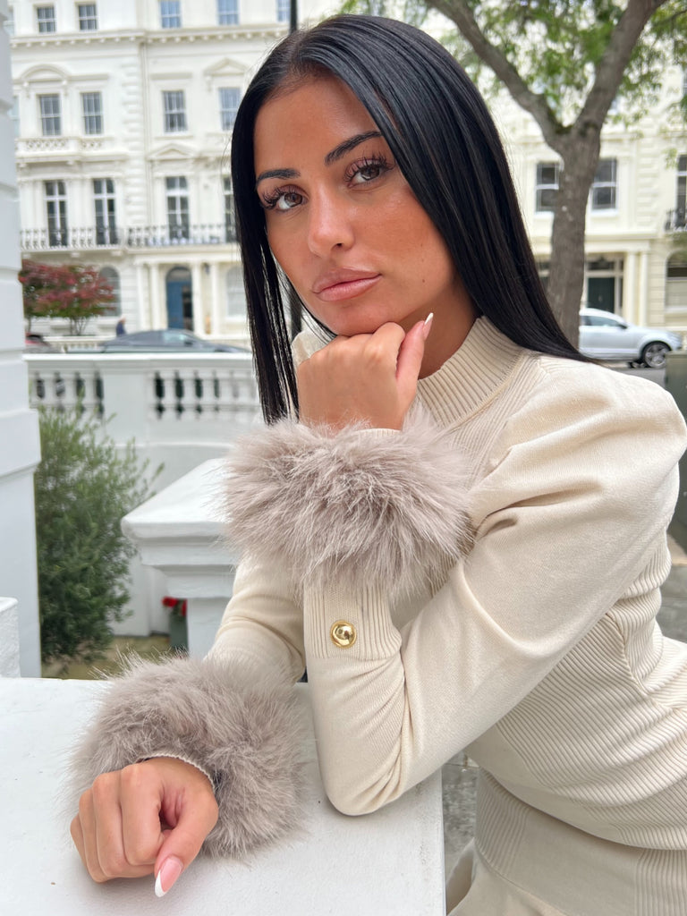 Beige Premium Faux Fur Jogger Tracksuit