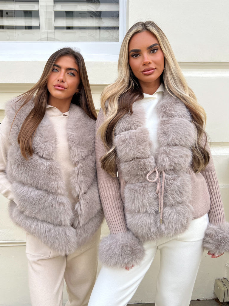 Beigefarbene Premium-Kunstpelzweste