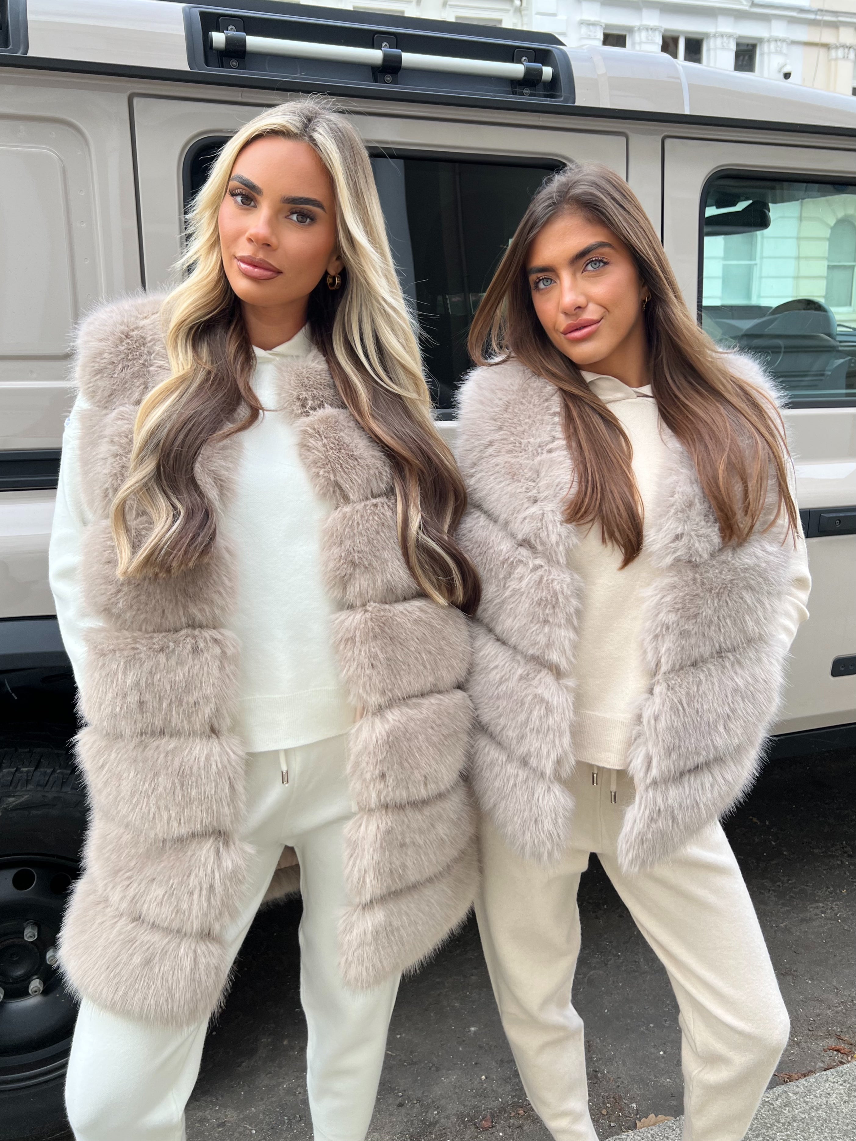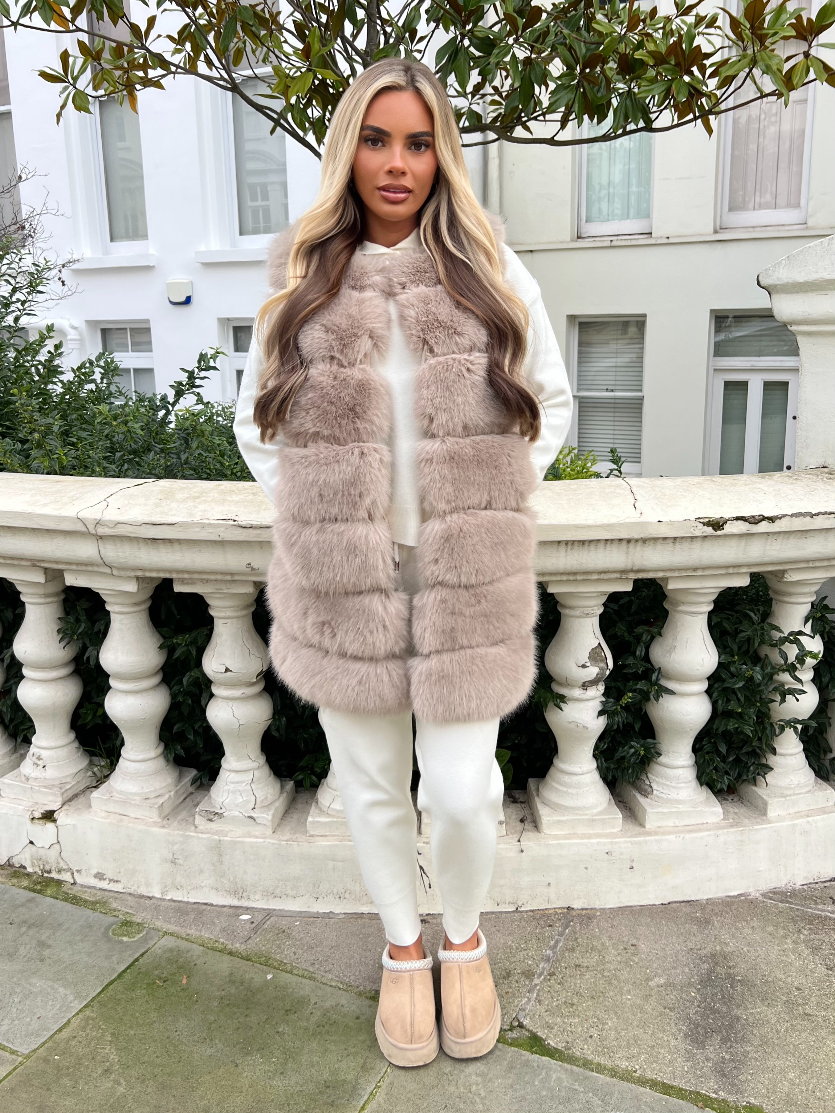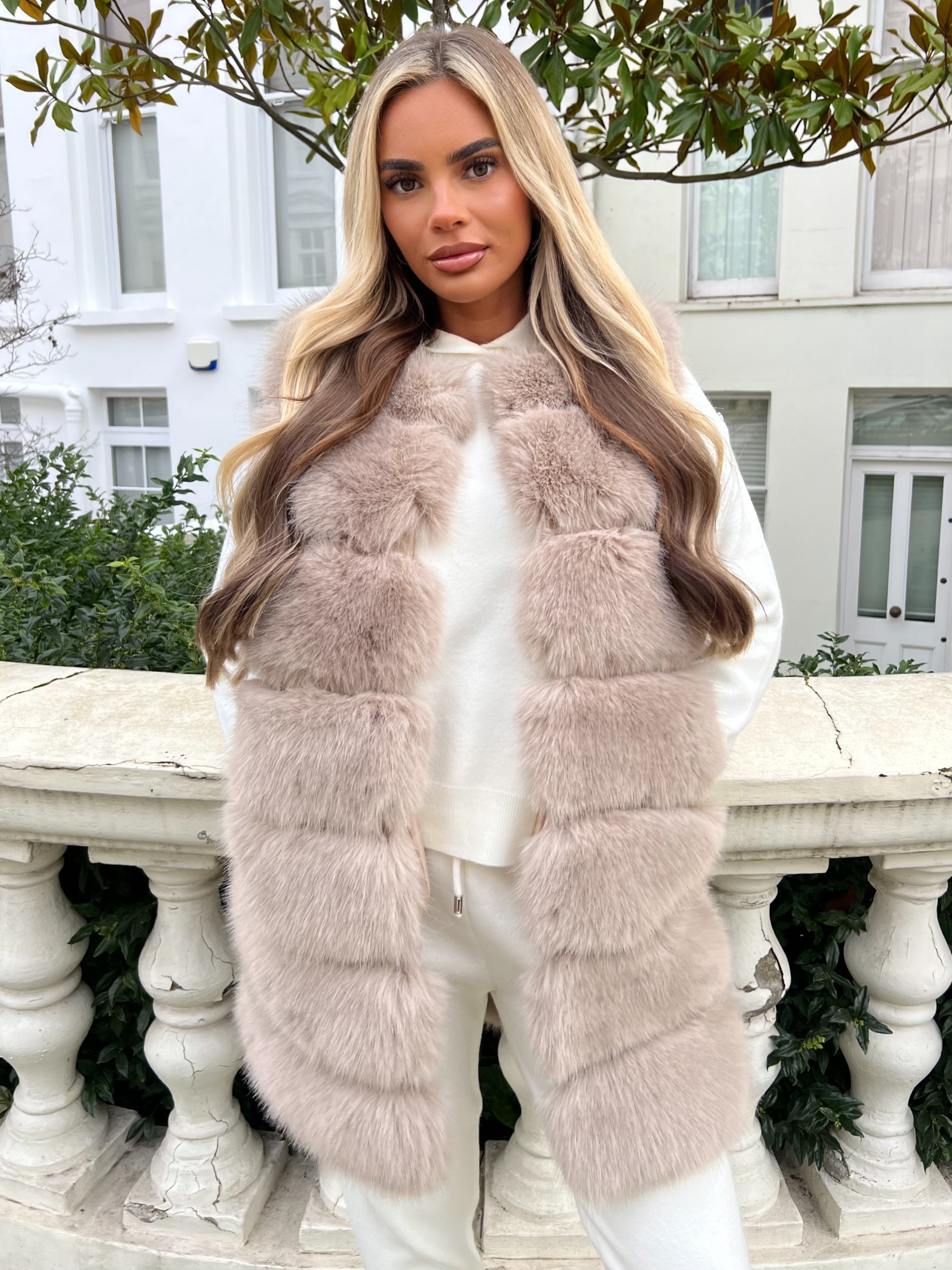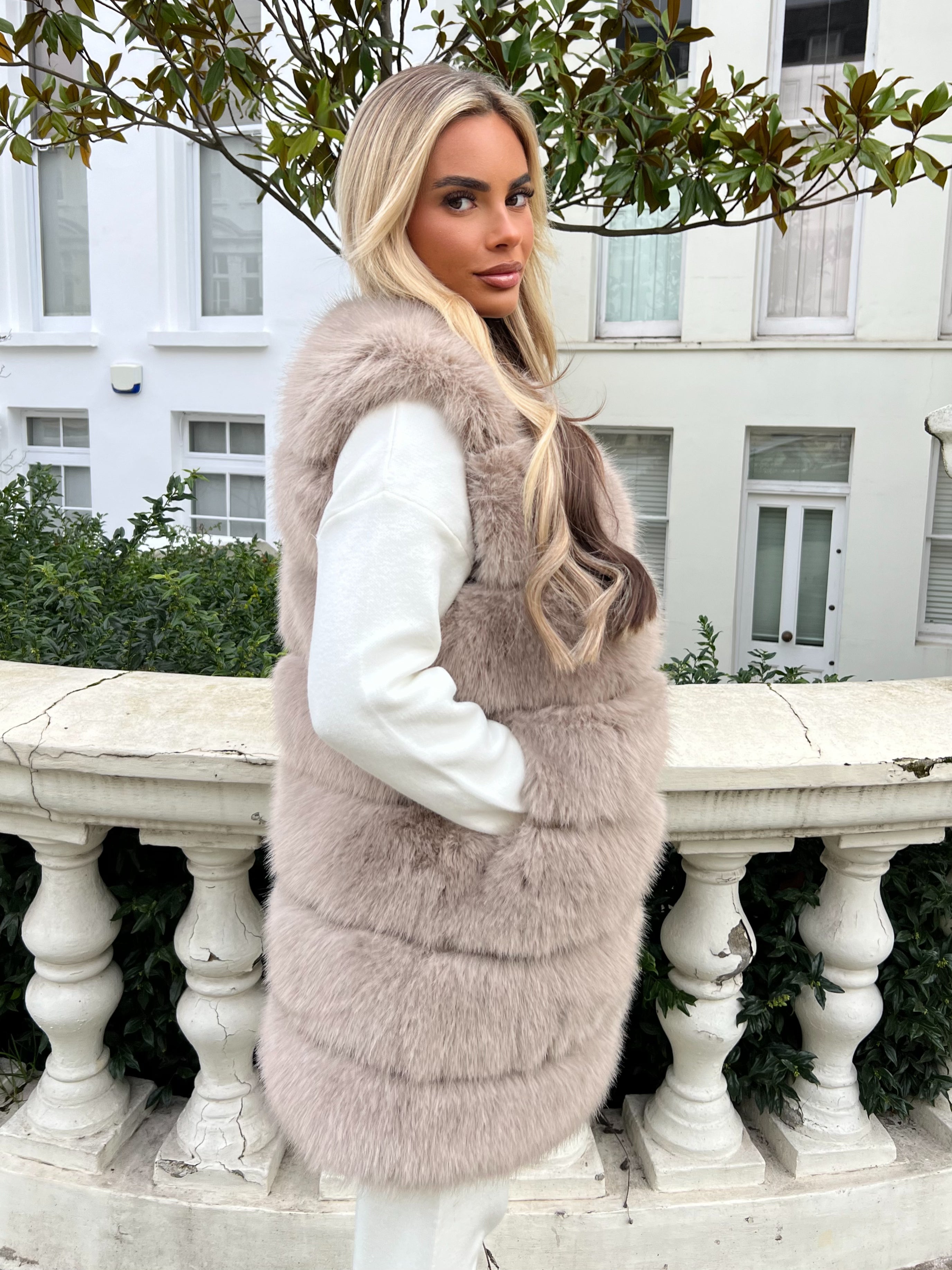 Beige Premium-Longline-Gilet aus Kunstpelz