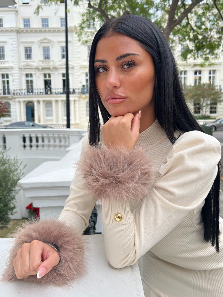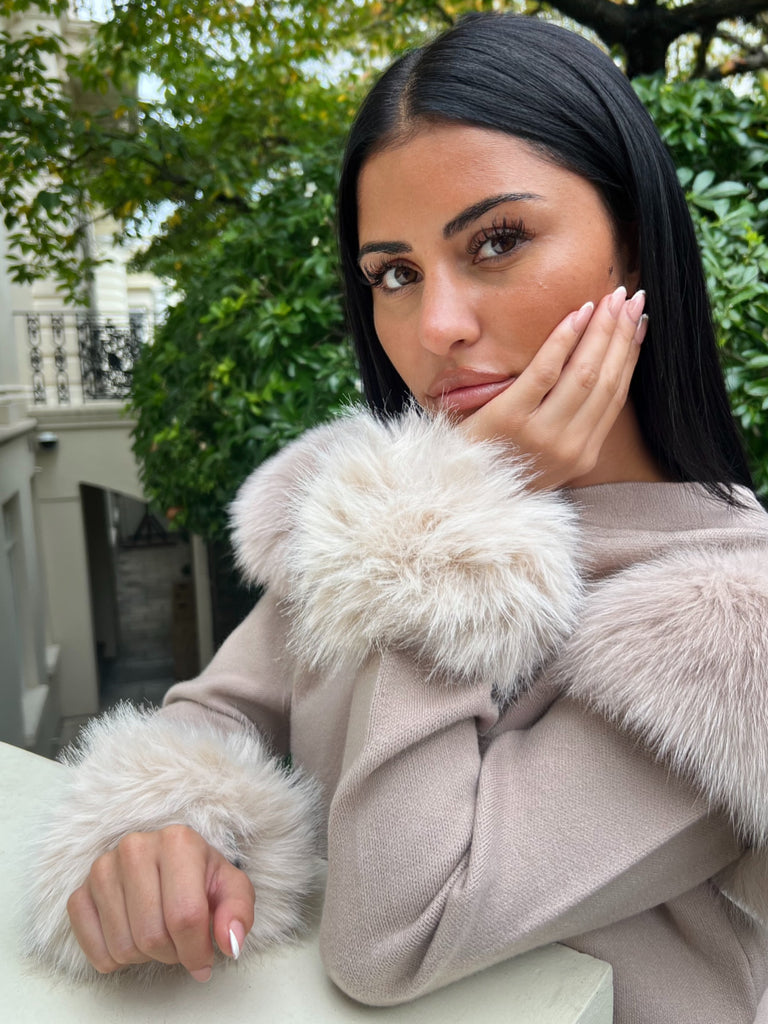 Light Beige Premium Faux Fur Jogger Tracksuit