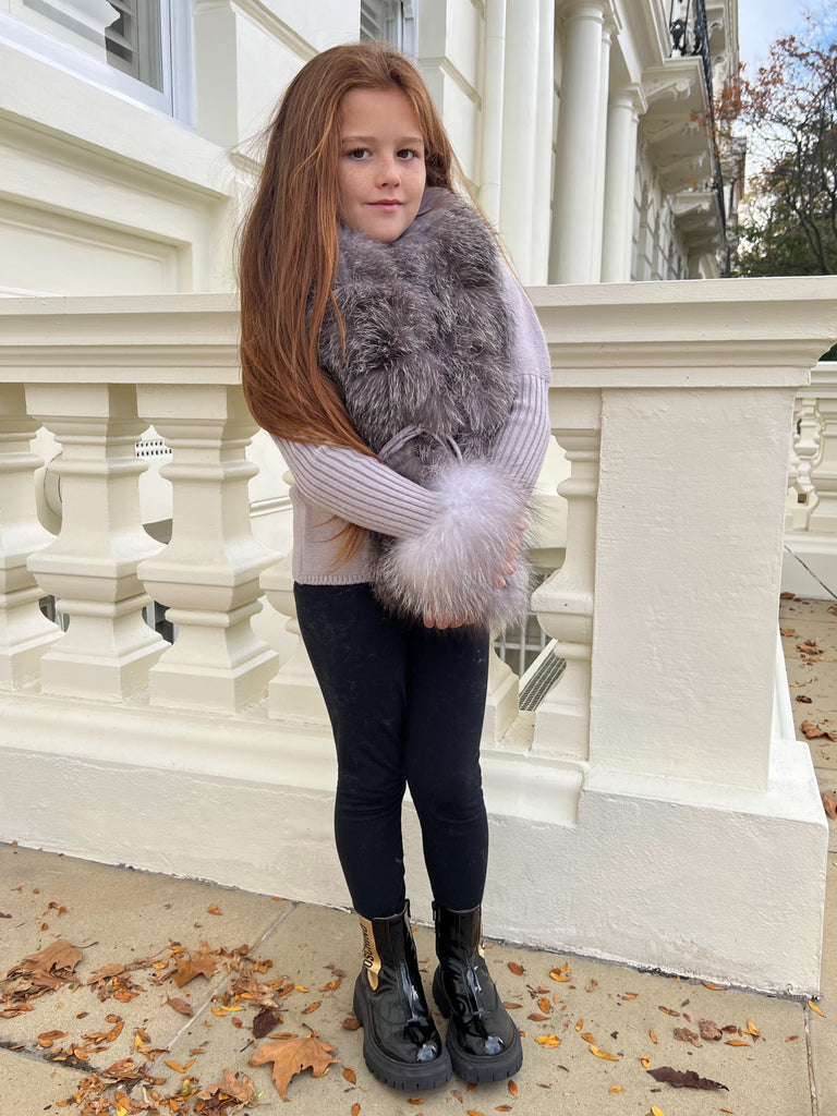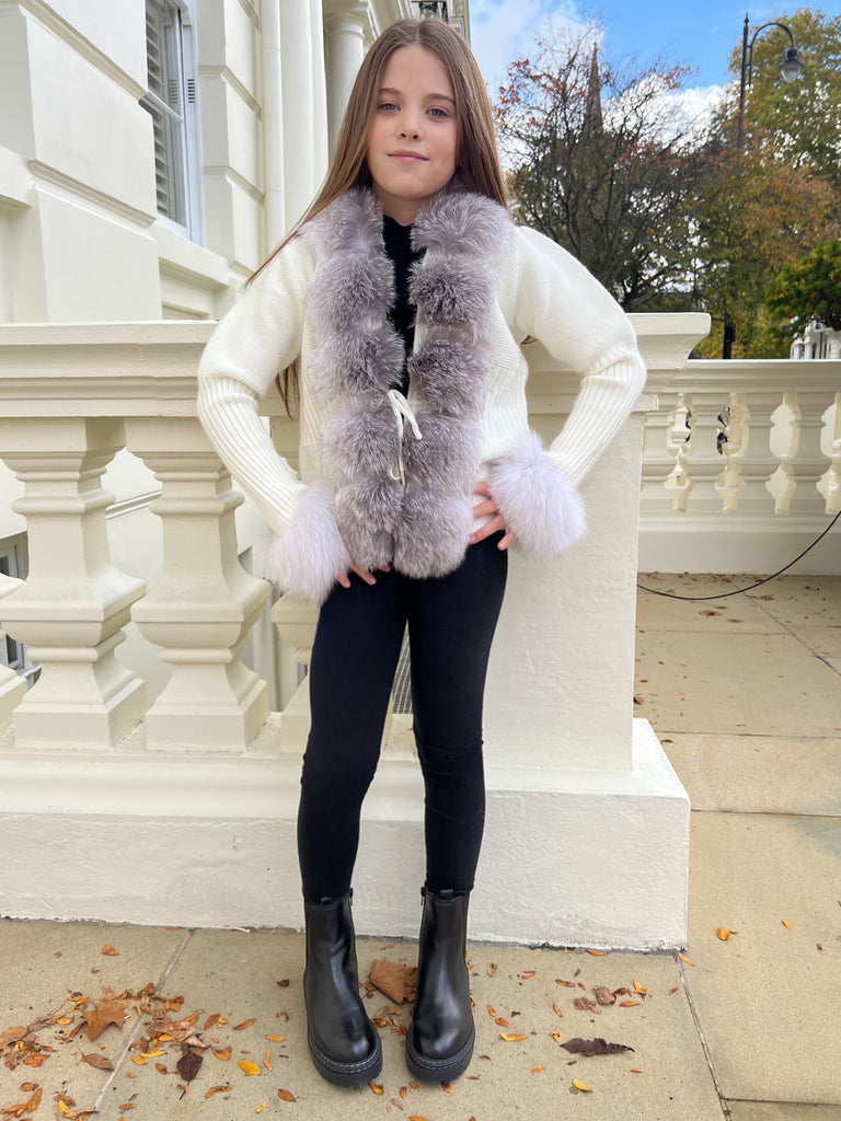 Grauer/zweifarbiger Luxus-Pelz-Cardigan für Kinder