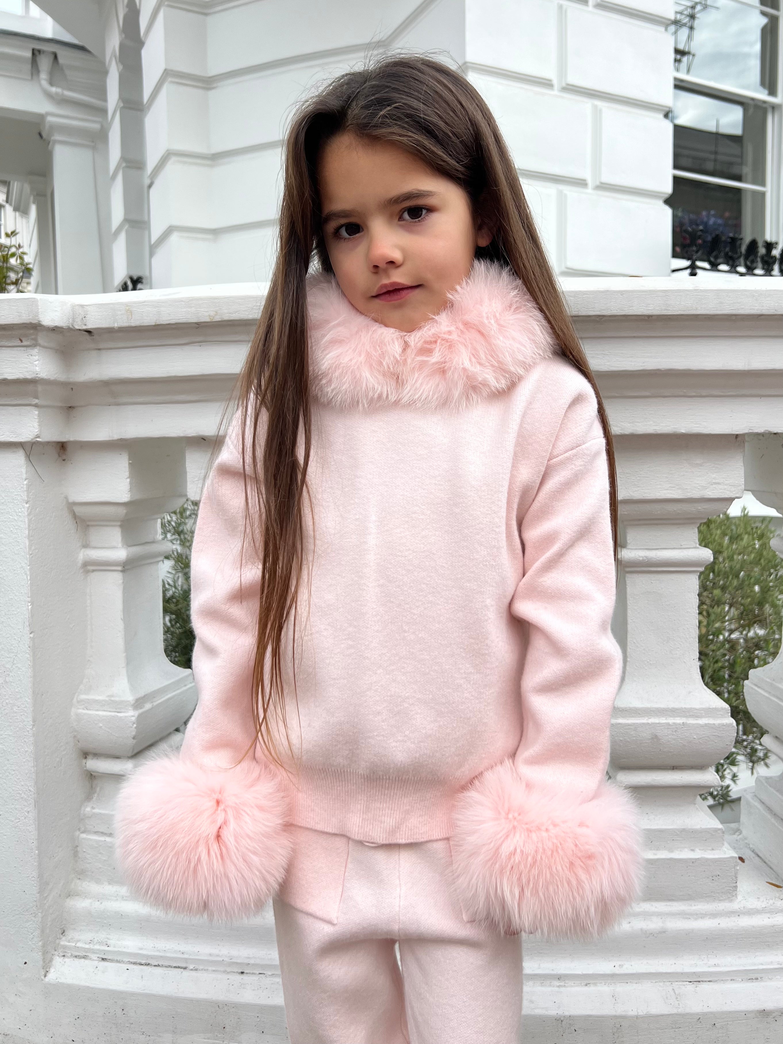 Babyblauer Luxus-Pelz-Trainingsanzug für Kinder