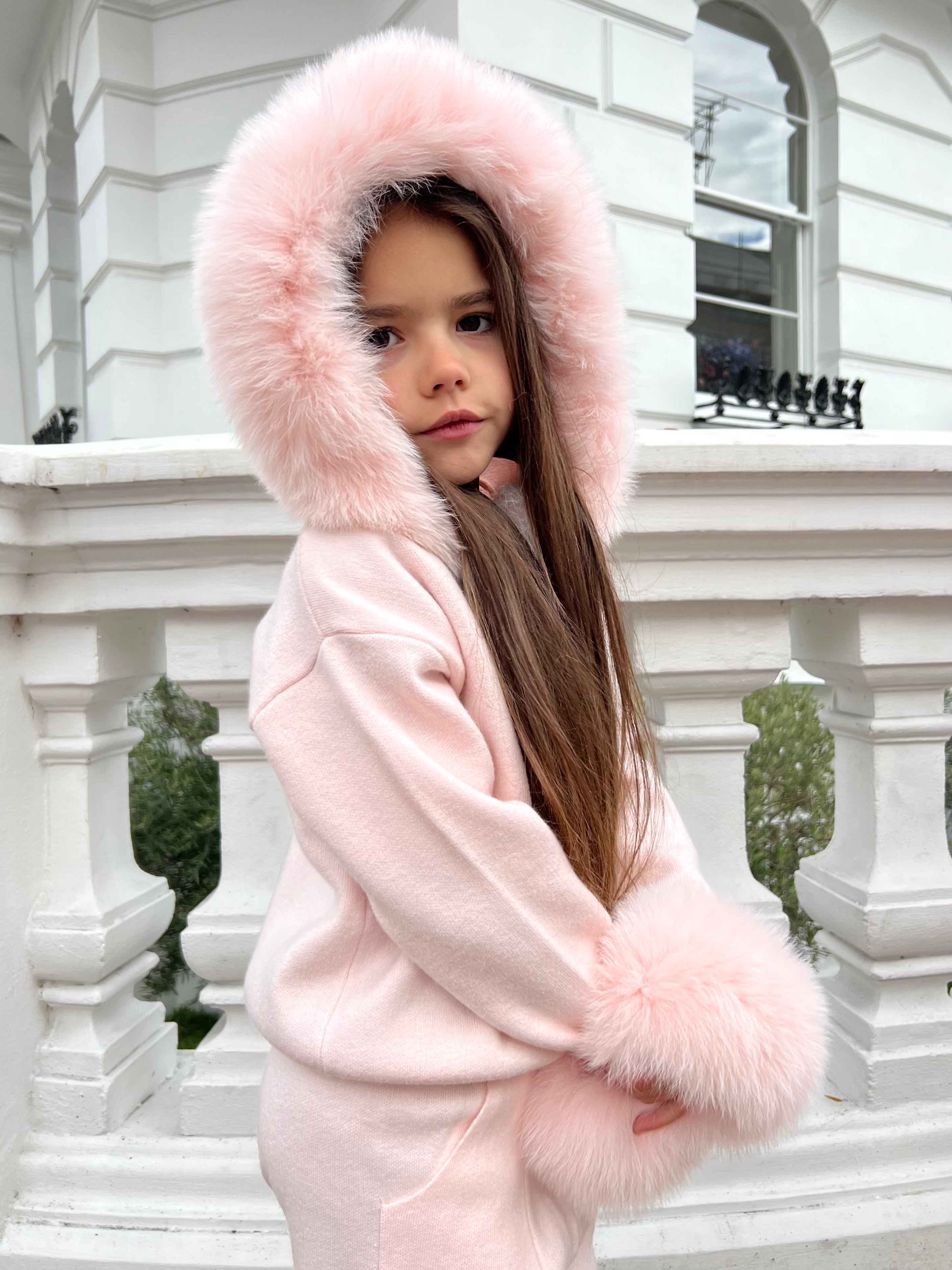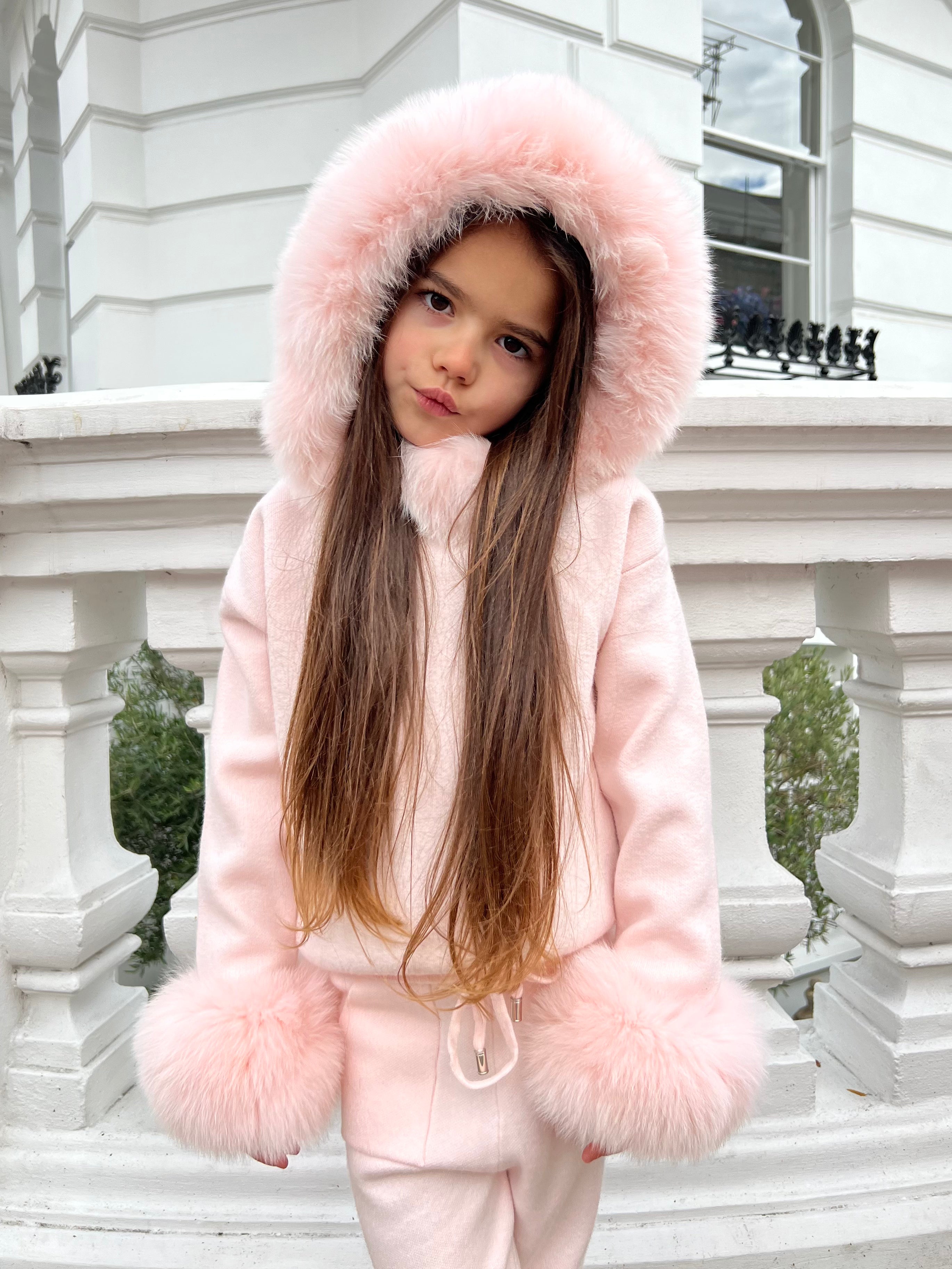 Verwöhnen Sie Ihre Kleinen mit Wärme und Stil mit unserem babyblauen Luxus-Pelz-Trainingsanzug für Kinder. Das Kapuzendesign sorgt für zusätzlichen Komfort und der trendige Look macht sie zum coolsten Kind auf der ganzen Welt. Dieser Trainingsanzug besteht aus dem weichsten Luxuspelz und hält sie den ganzen Tag über warm und stilvoll.