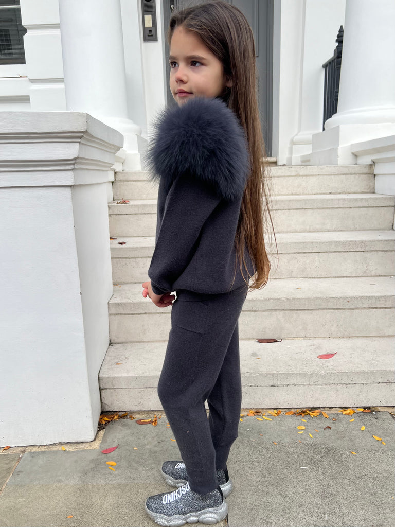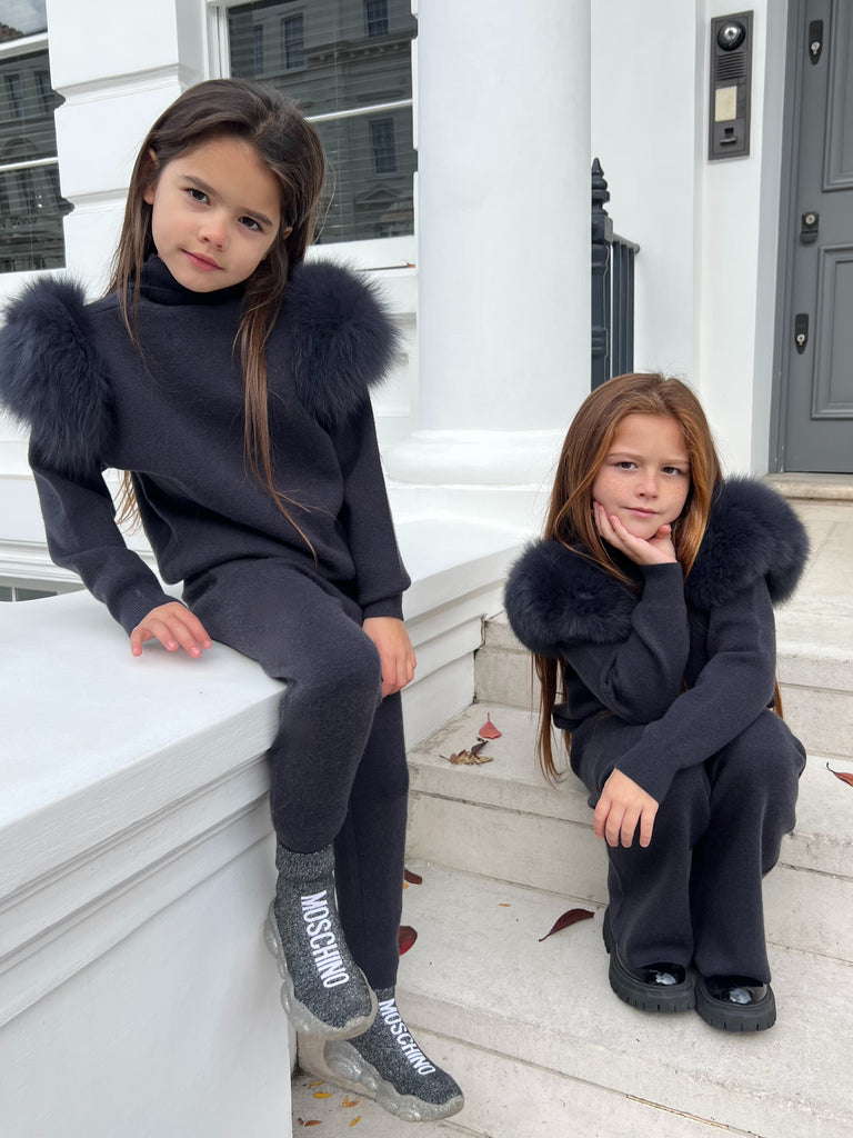 Babyblauer Luxus-Pelz-Trainingsanzug für Kinder
