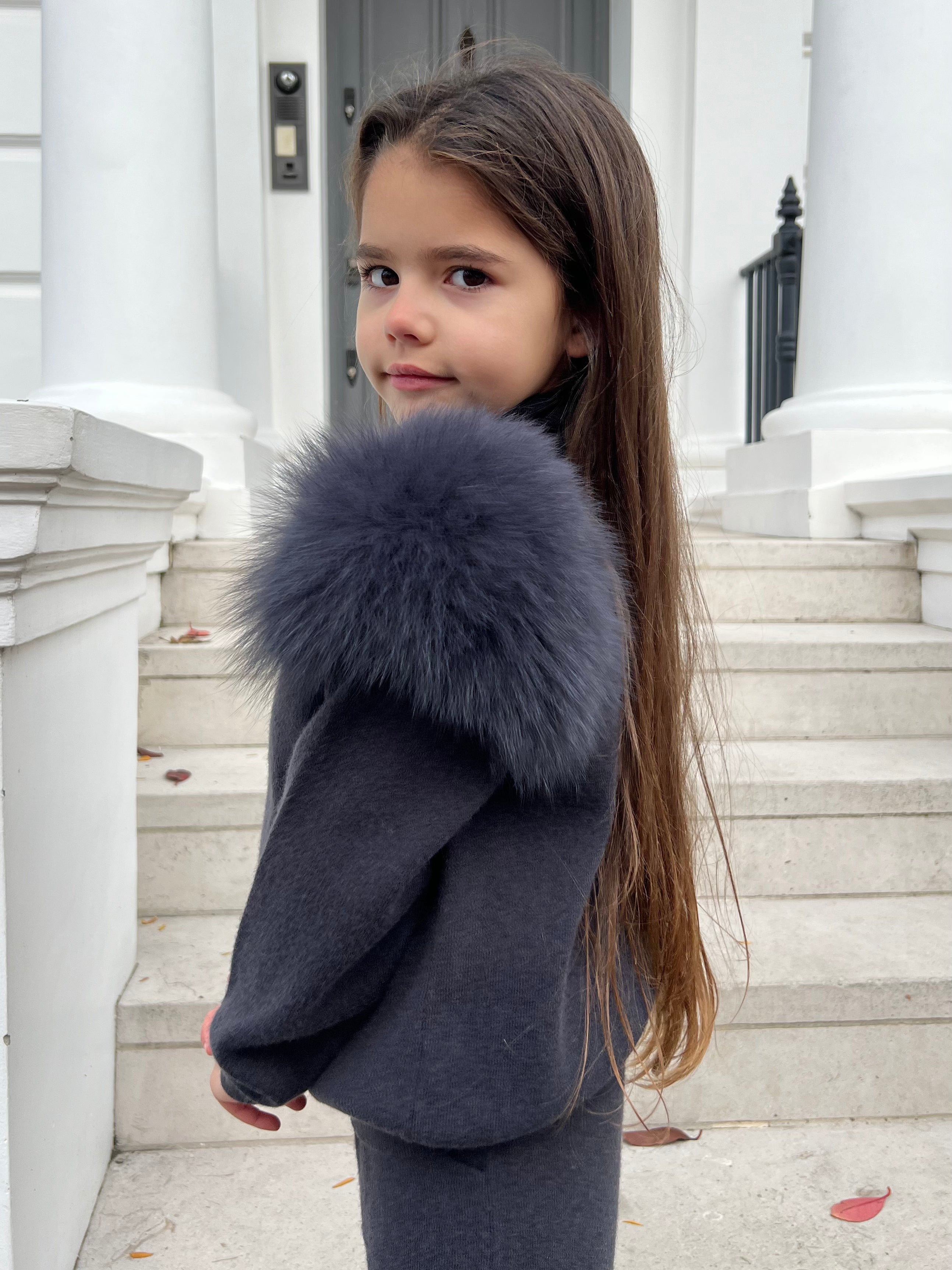 Verwöhnen Sie Ihre Kleinen mit Wärme und Stil mit unserem babyblauen Luxus-Pelz-Trainingsanzug für Kinder. Das Kapuzendesign sorgt für zusätzlichen Komfort und der trendige Look macht sie zum coolsten Kind auf der ganzen Welt. Dieser Trainingsanzug besteht aus dem weichsten Luxuspelz und hält sie den ganzen Tag über warm und stilvoll.