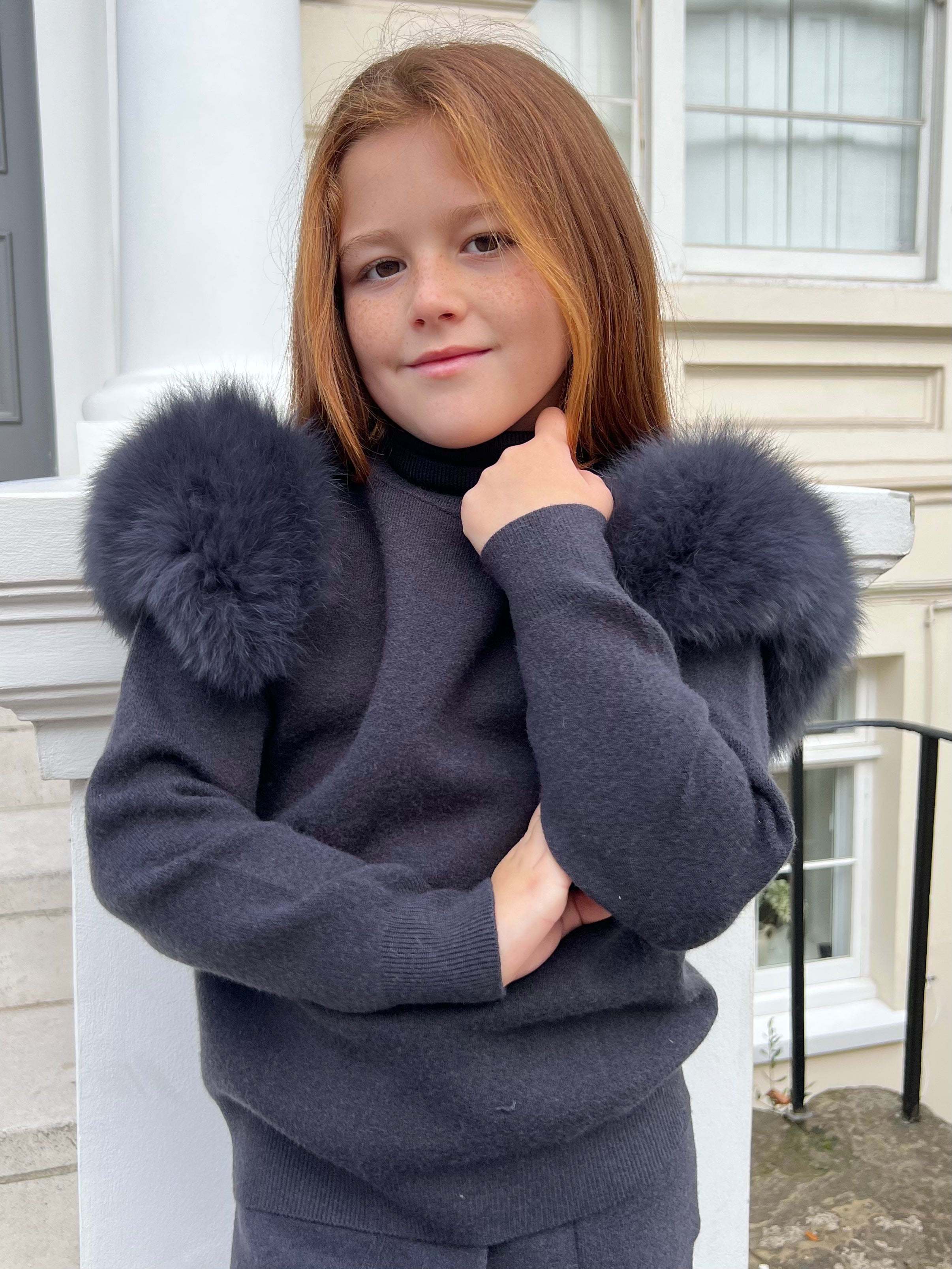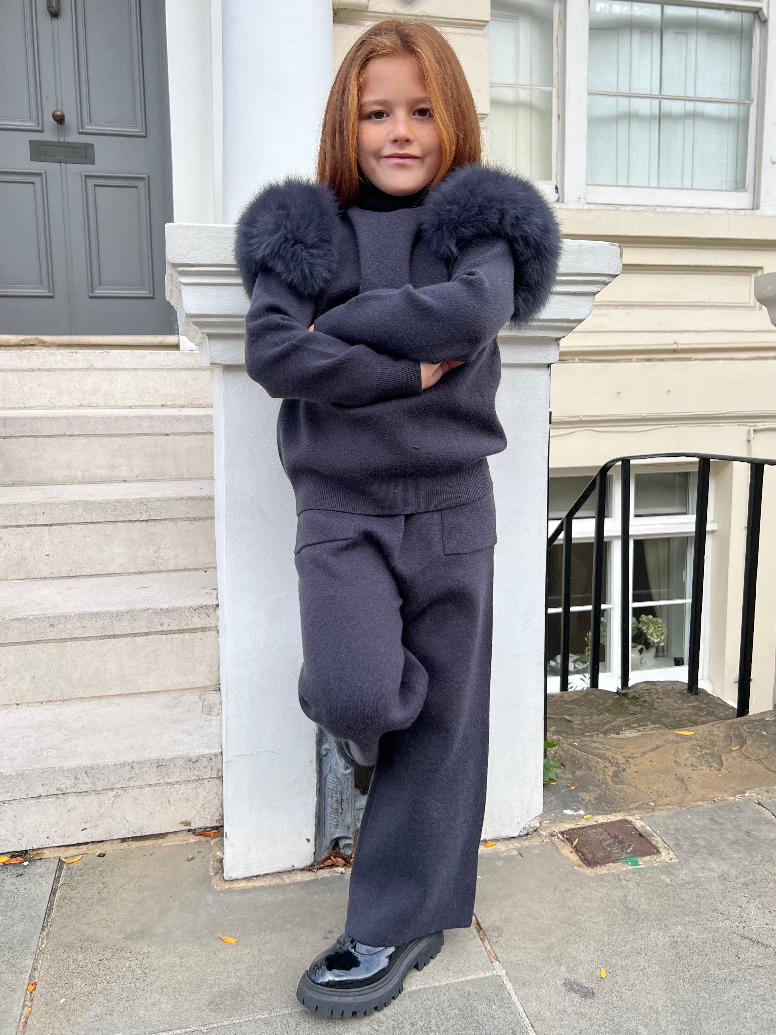 Verwöhnen Sie Ihre Kleinen mit Wärme und Stil mit unserem babyblauen Luxus-Pelz-Trainingsanzug für Kinder. Das Kapuzendesign sorgt für zusätzlichen Komfort und der trendige Look macht sie zum coolsten Kind auf der ganzen Welt. Dieser Trainingsanzug besteht aus dem weichsten Luxuspelz und hält sie den ganzen Tag über warm und stilvoll.