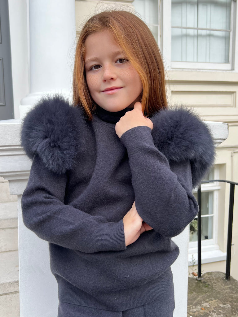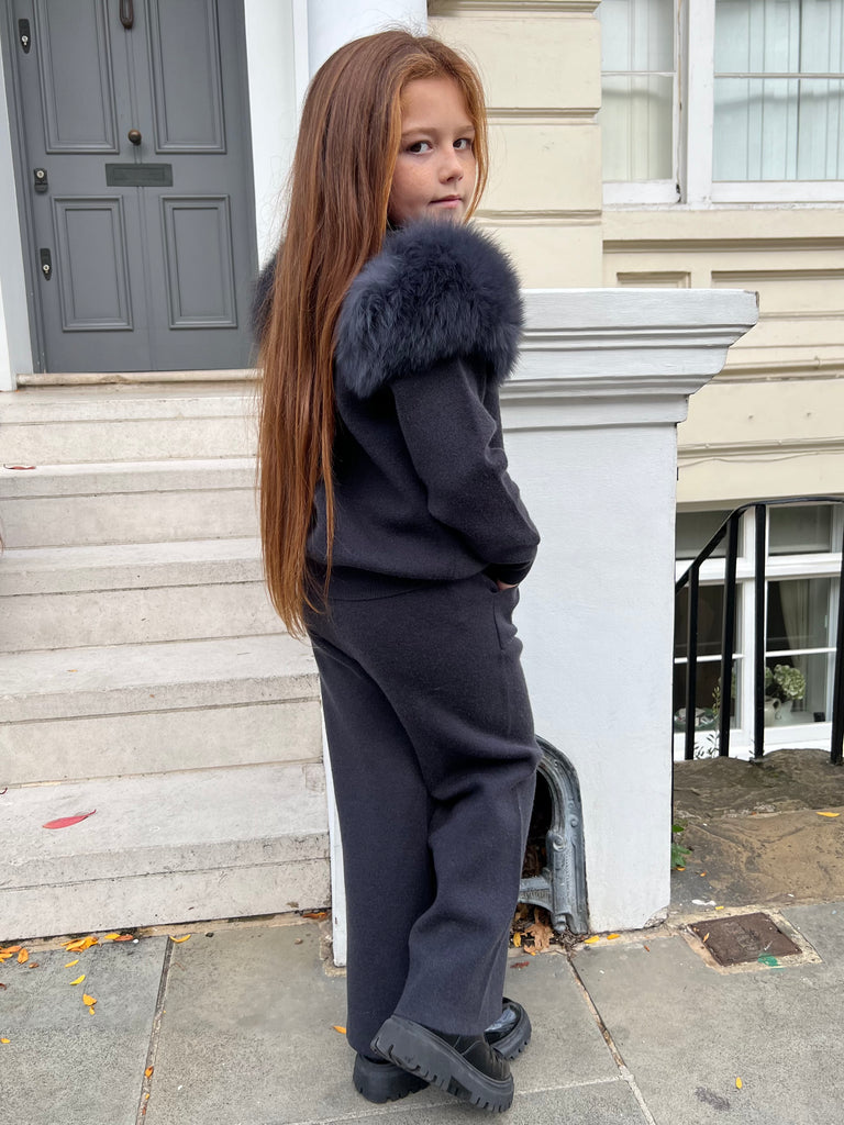 Babyblauer Luxus-Pelz-Trainingsanzug für Kinder