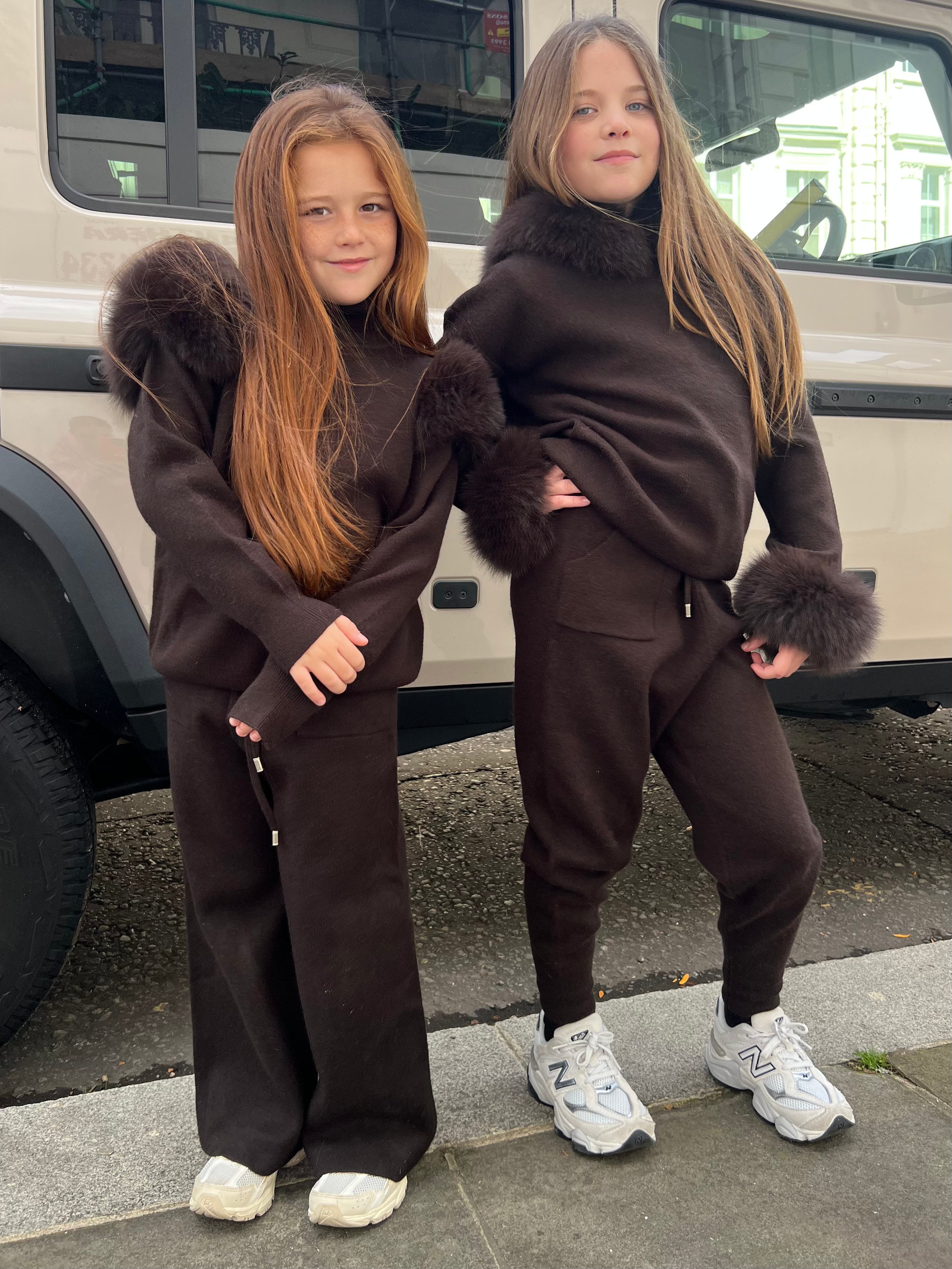 Babyblauer Luxus-Pelz-Trainingsanzug für Kinder
