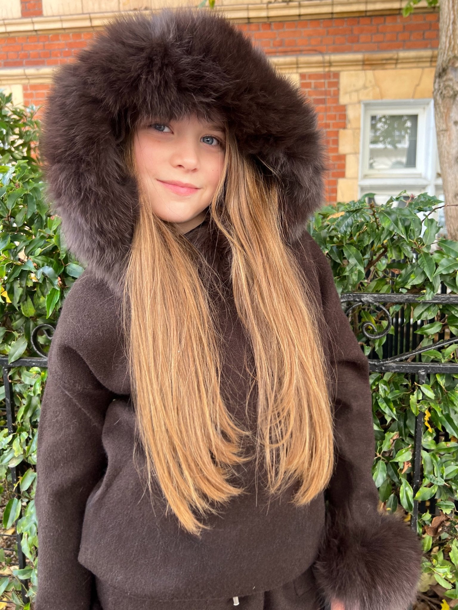 Verwöhnen Sie Ihre Kleinen mit Wärme und Stil mit unserem babyblauen Luxus-Pelz-Trainingsanzug für Kinder. Das Kapuzendesign sorgt für zusätzlichen Komfort und der trendige Look macht sie zum coolsten Kind auf der ganzen Welt. Dieser Trainingsanzug besteht aus dem weichsten Luxuspelz und hält sie den ganzen Tag über warm und stilvoll.