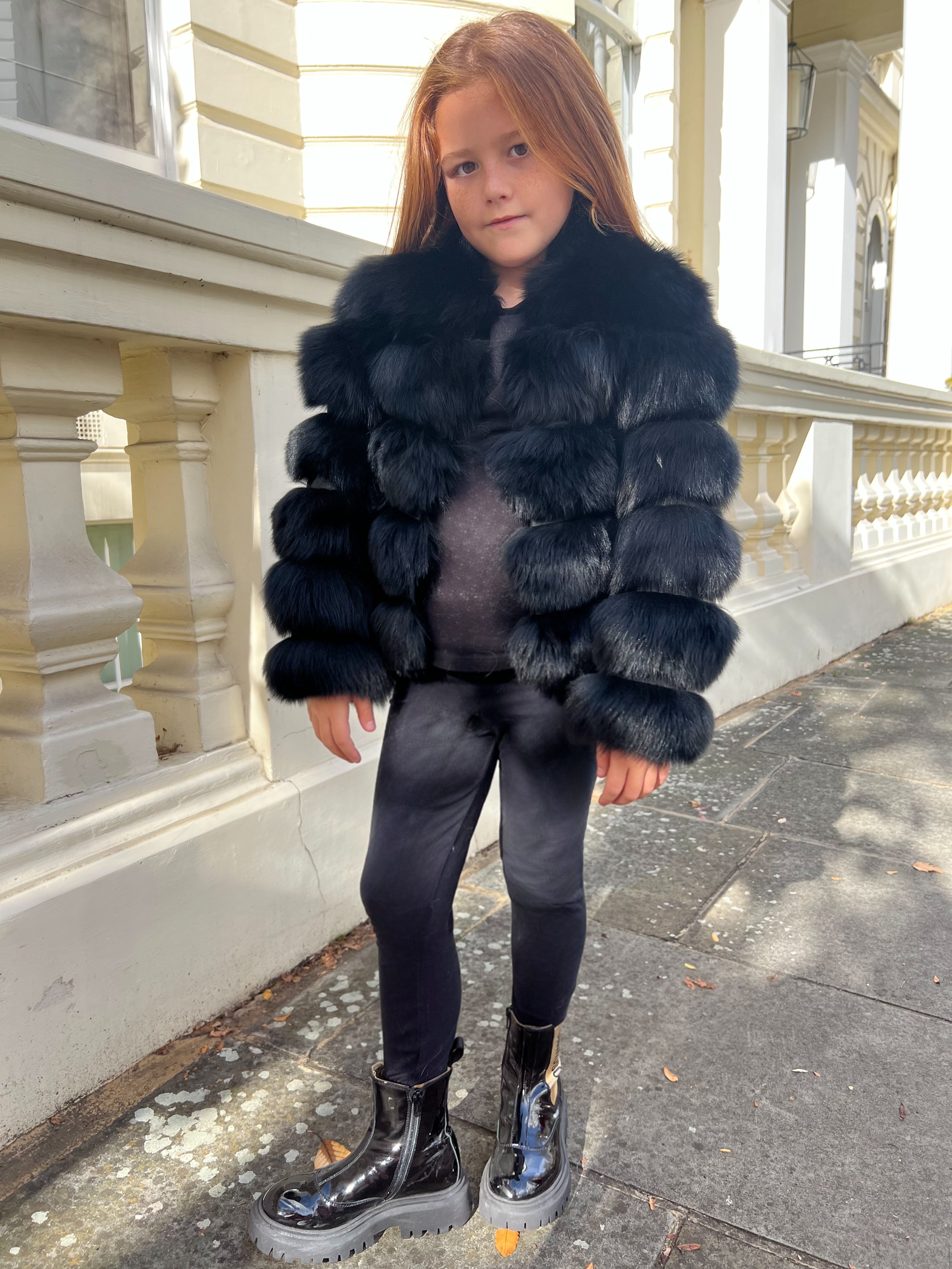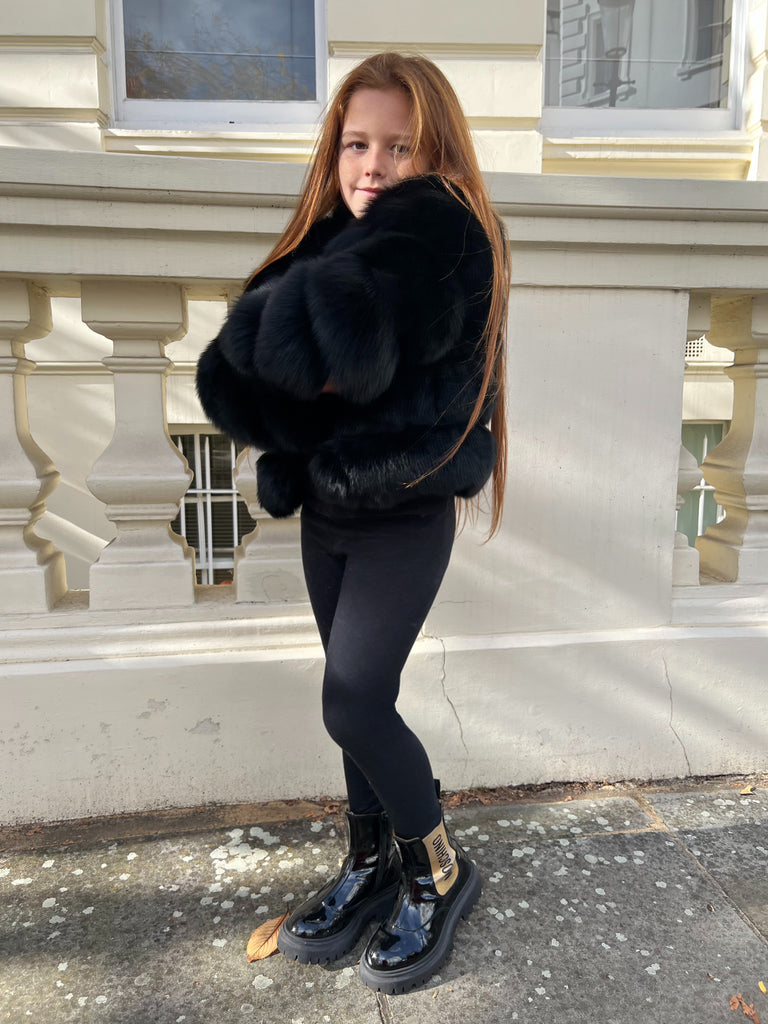 Dieser schwarze Luxus-Pelzmantel für Kinder hält Ihr Kind warm und stilvoll. Dieser aus luxuriösem Fell gefertigte Mantel ist perfekt für jeden Anlass. Sein weiches und bequemes Material gibt Ihrem Kind ein tolles Gefühl und sorgt gleichzeitig für Gemütlichkeit in den kälteren Monaten.