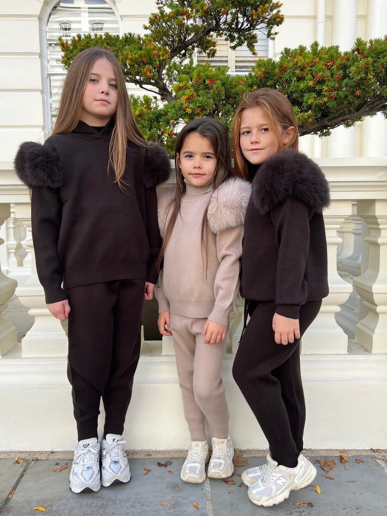 Schokoladenfarbener Luxus-Pelz-Trainingsanzug für Kinder