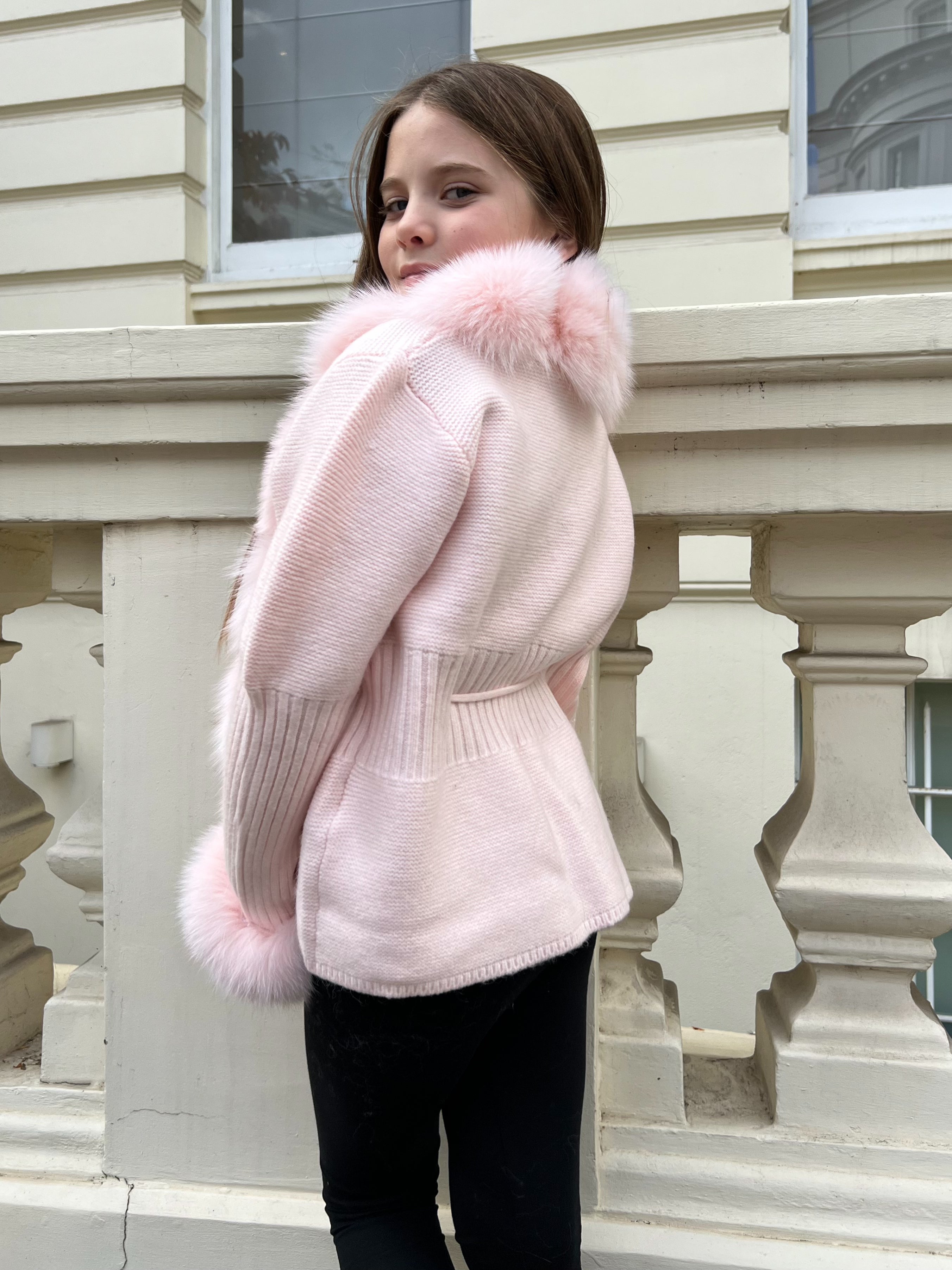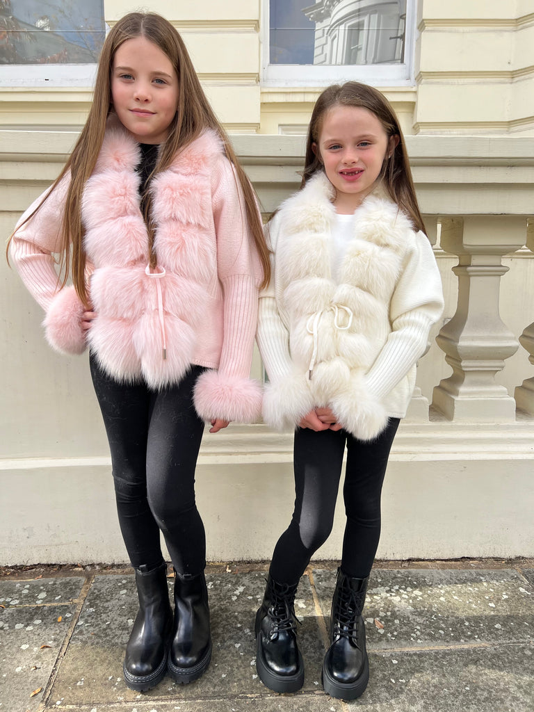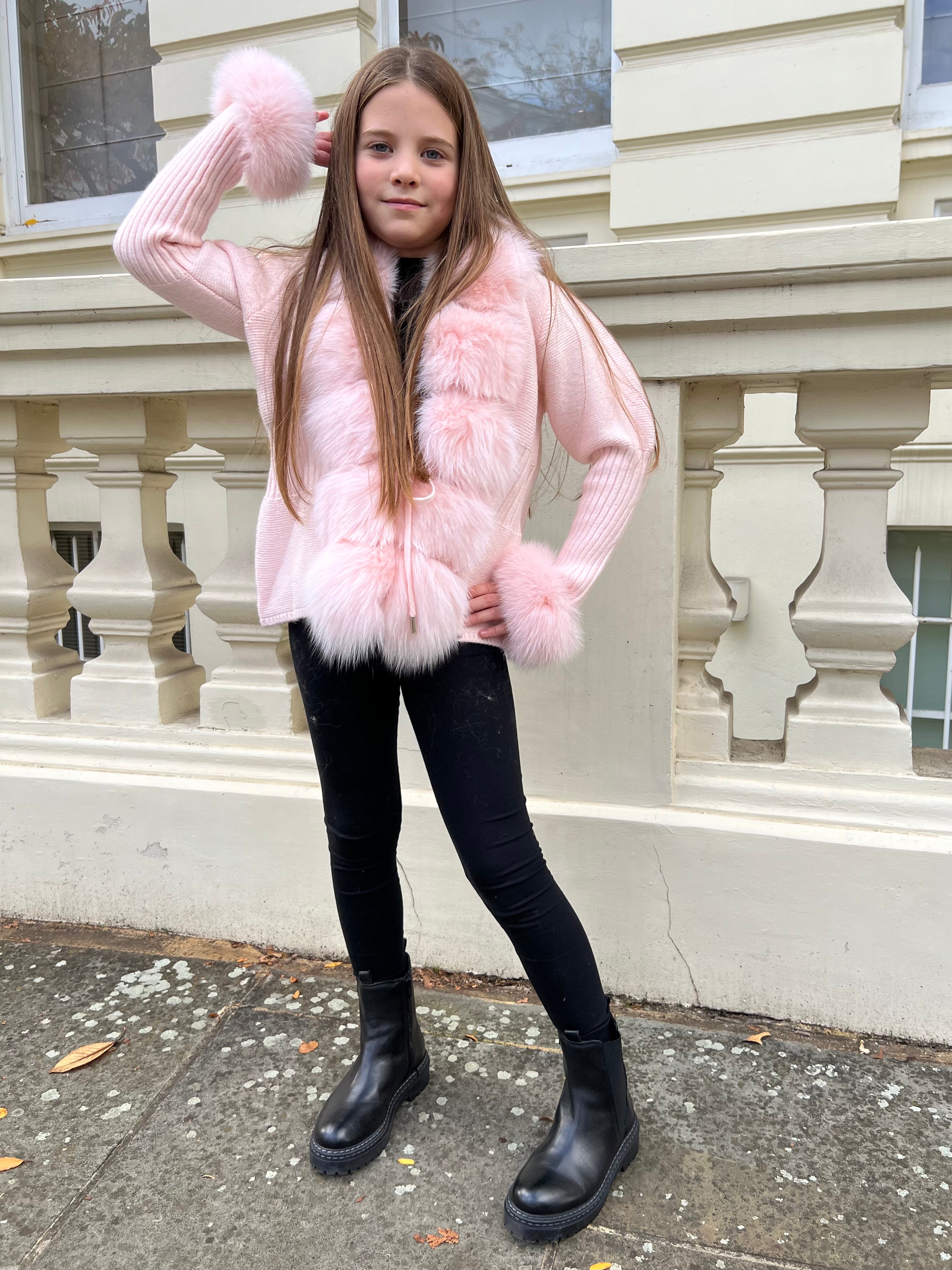 Luxuriöser Pelz-Cardigan für Kinder in Babyrosa