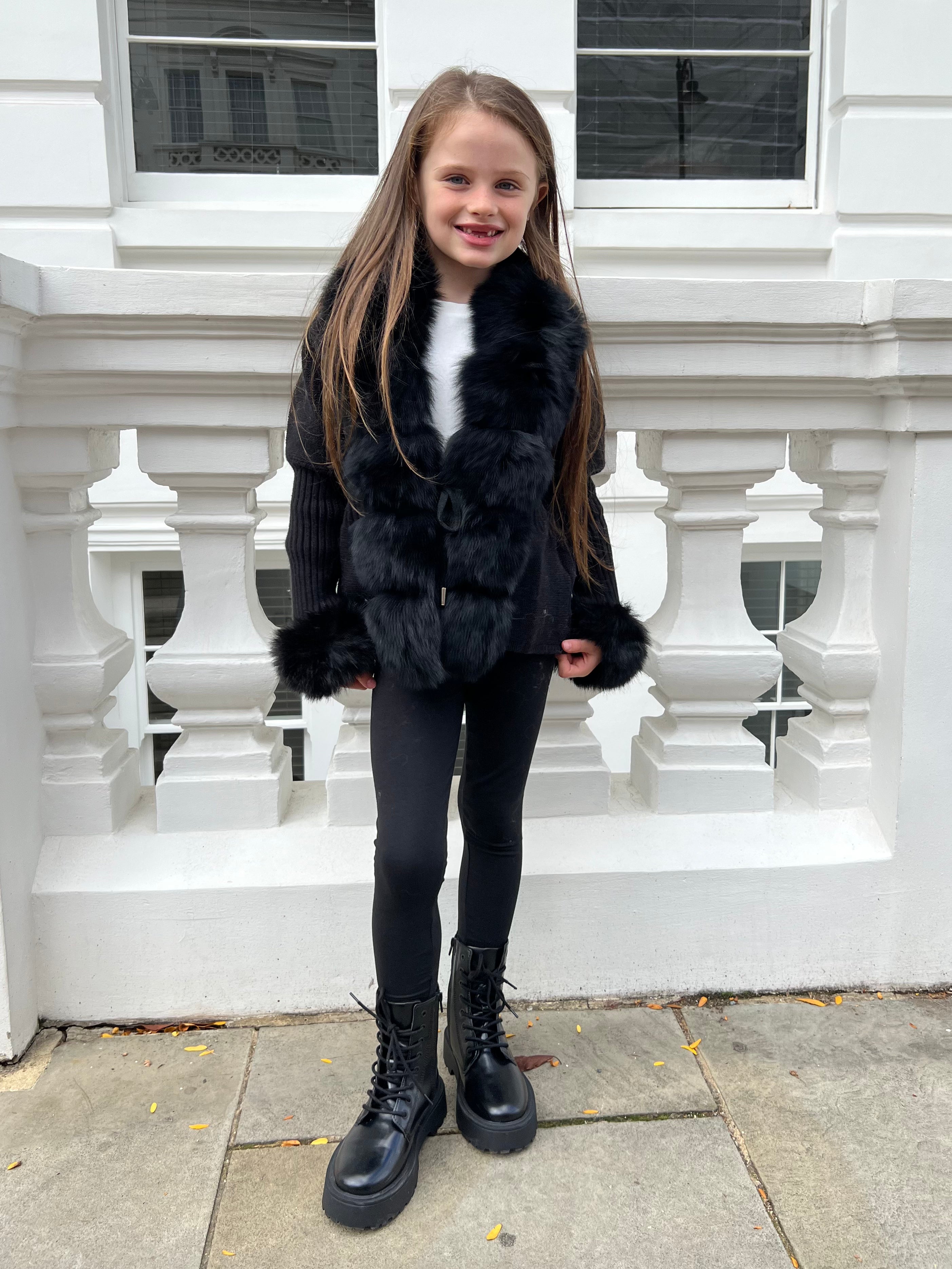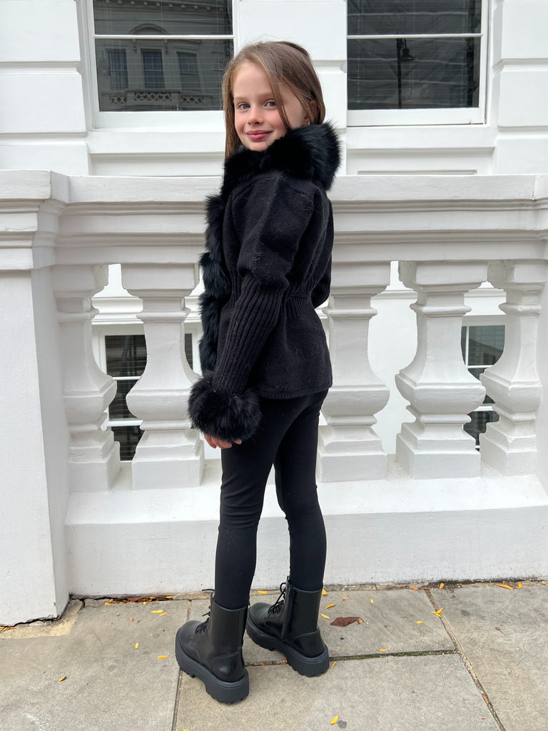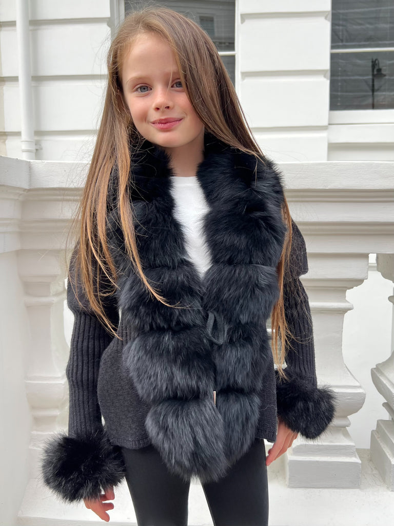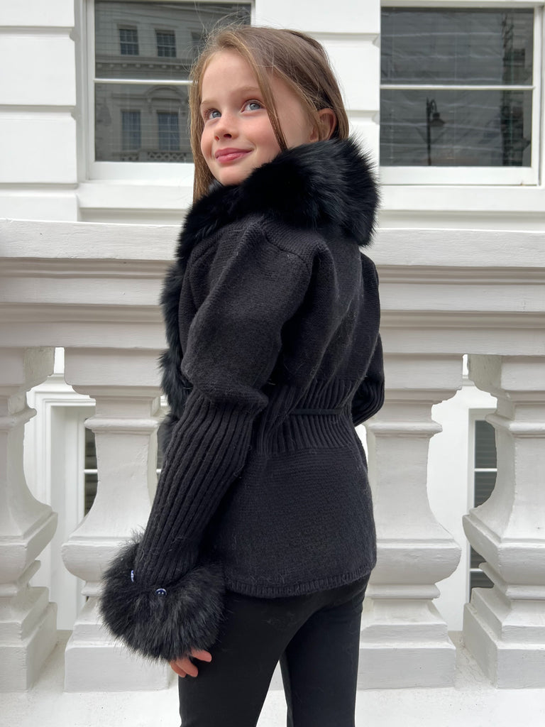 Schwarzer Luxus-Pelz-Cardigan für Kinder