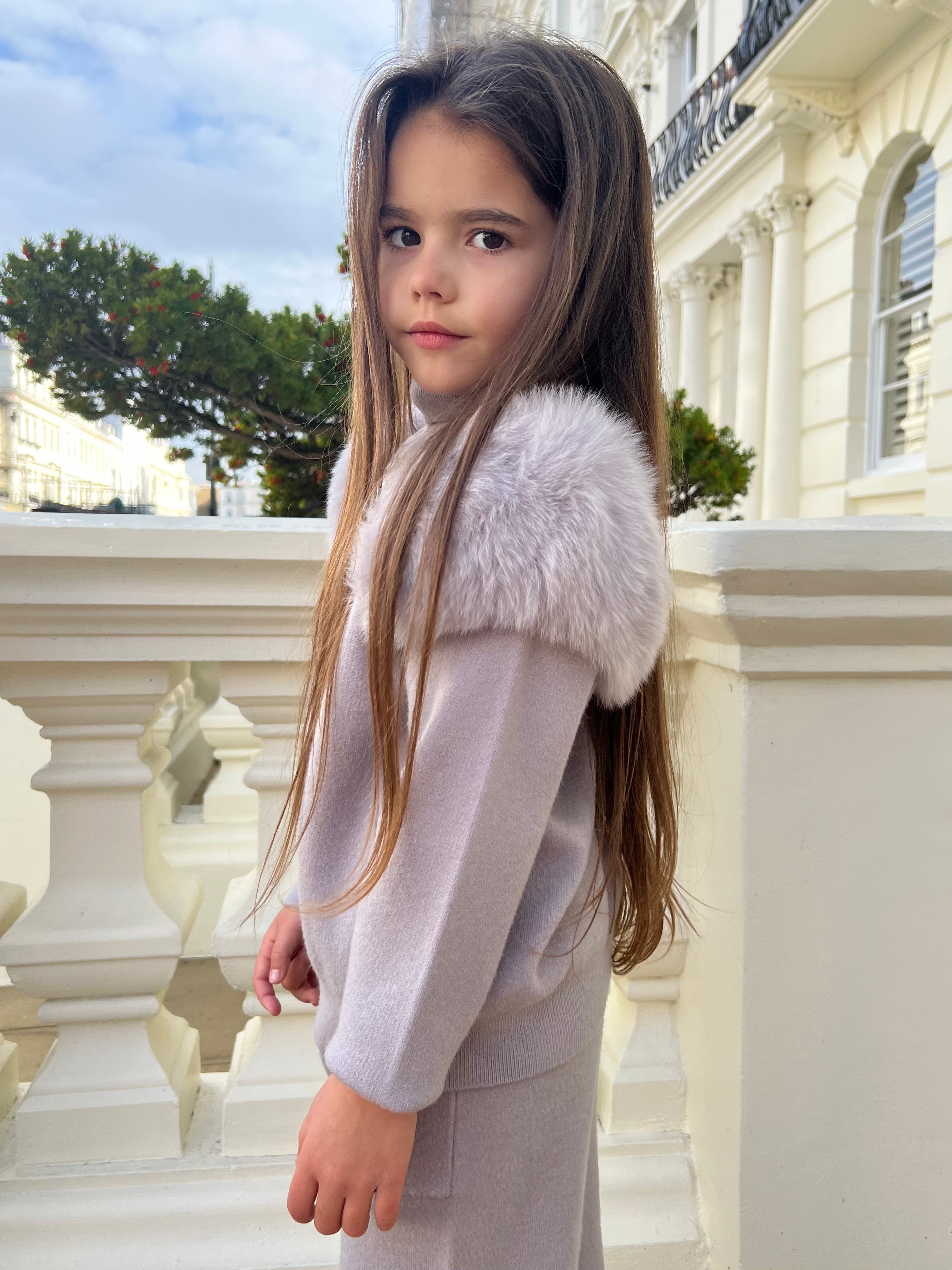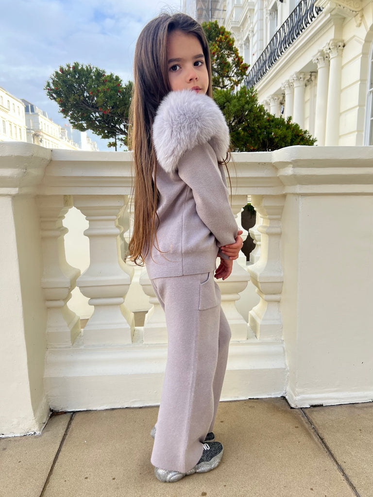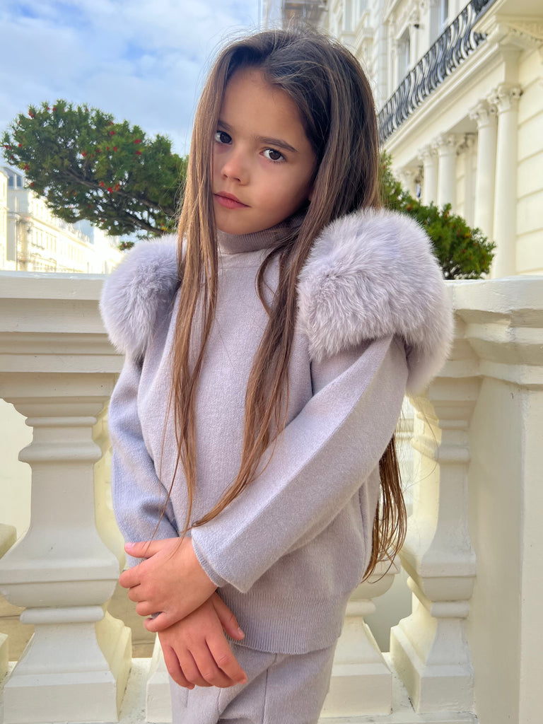 Babyblauer Luxus-Pelz-Trainingsanzug für Kinder