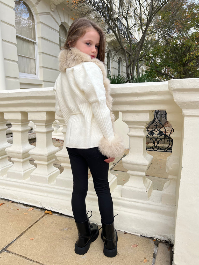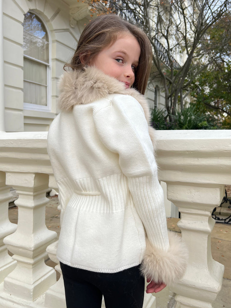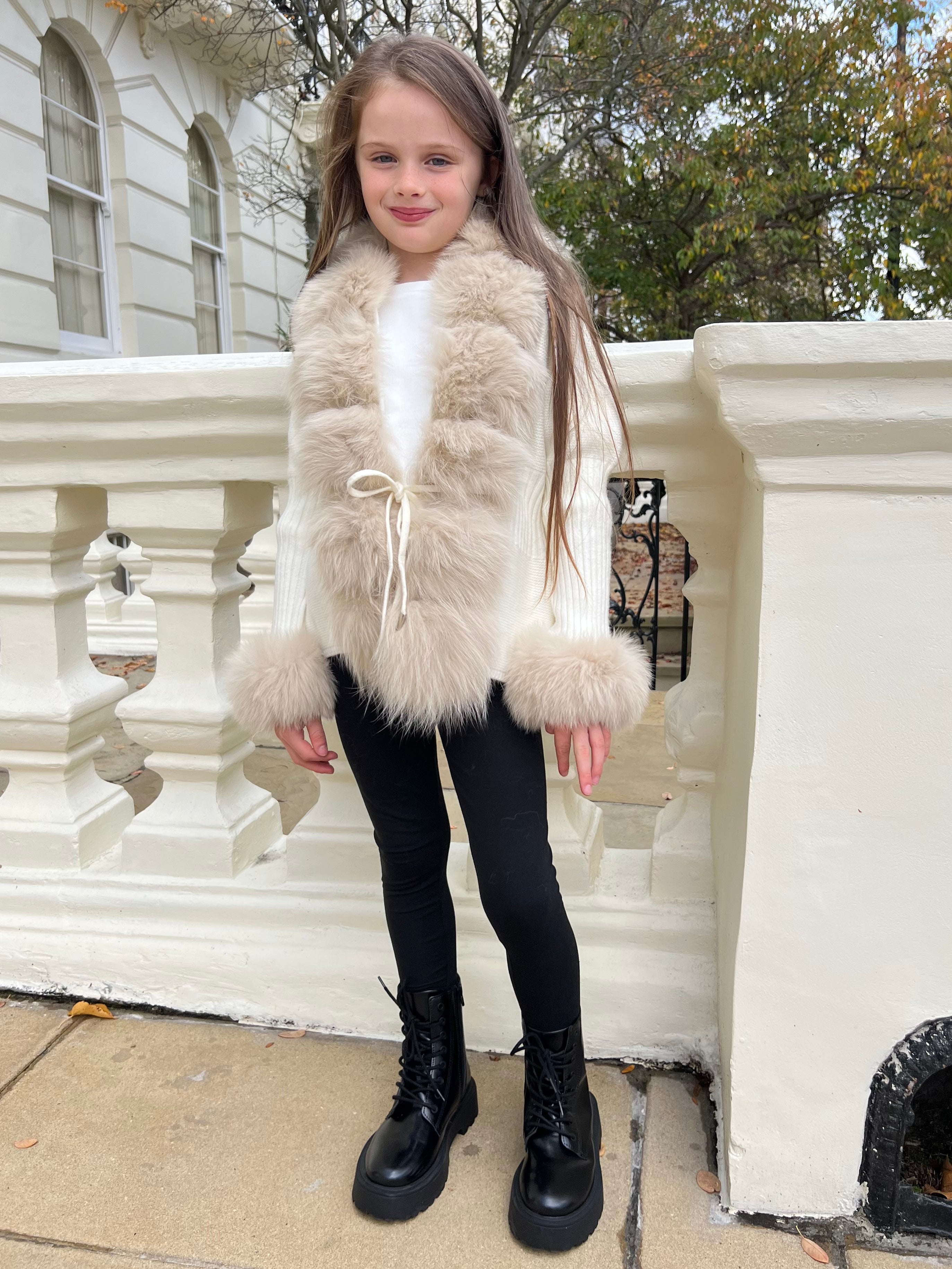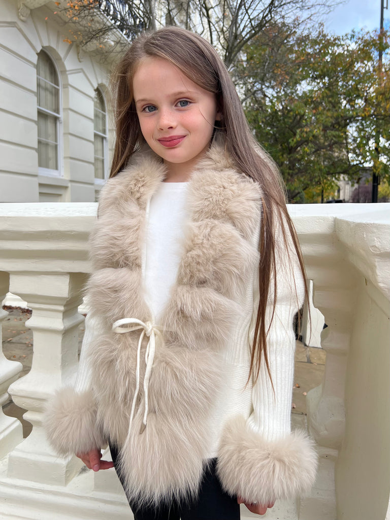 Cremefarbener/beiger Luxus-Pelz-Cardigan für Kinder