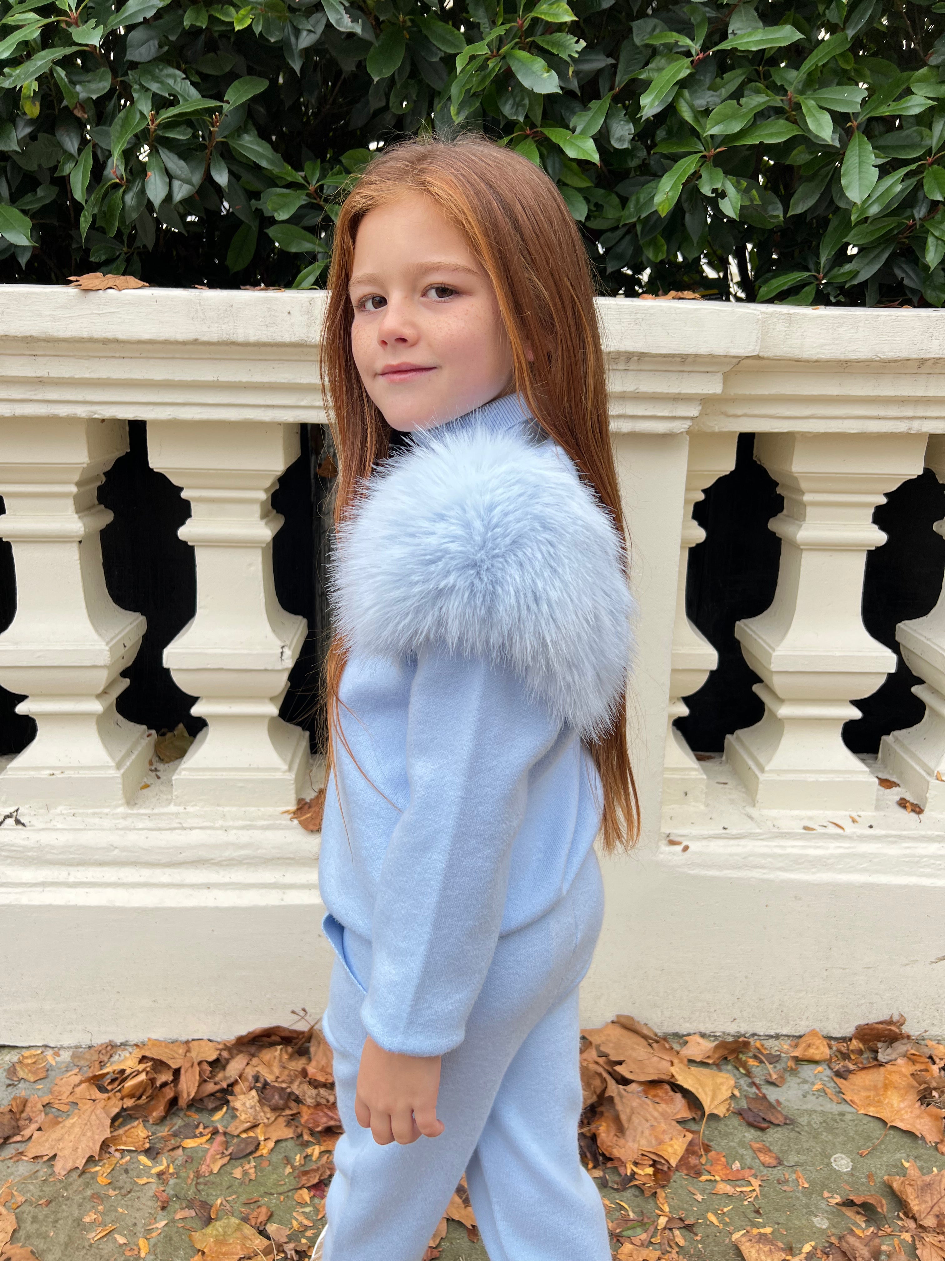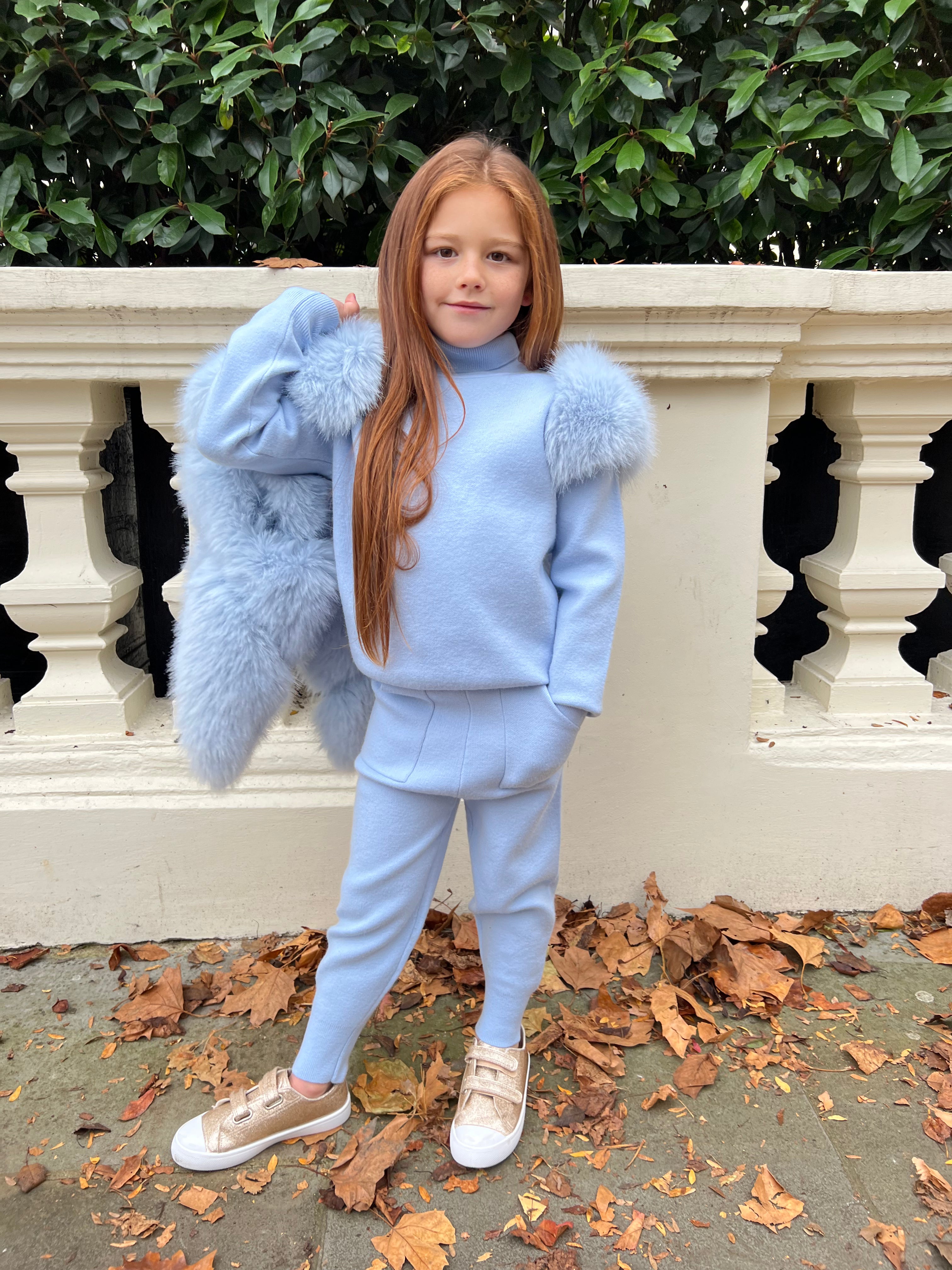Childrens Baby Blue Premium Faux Fur Roll Neck Jogger Tracksuit