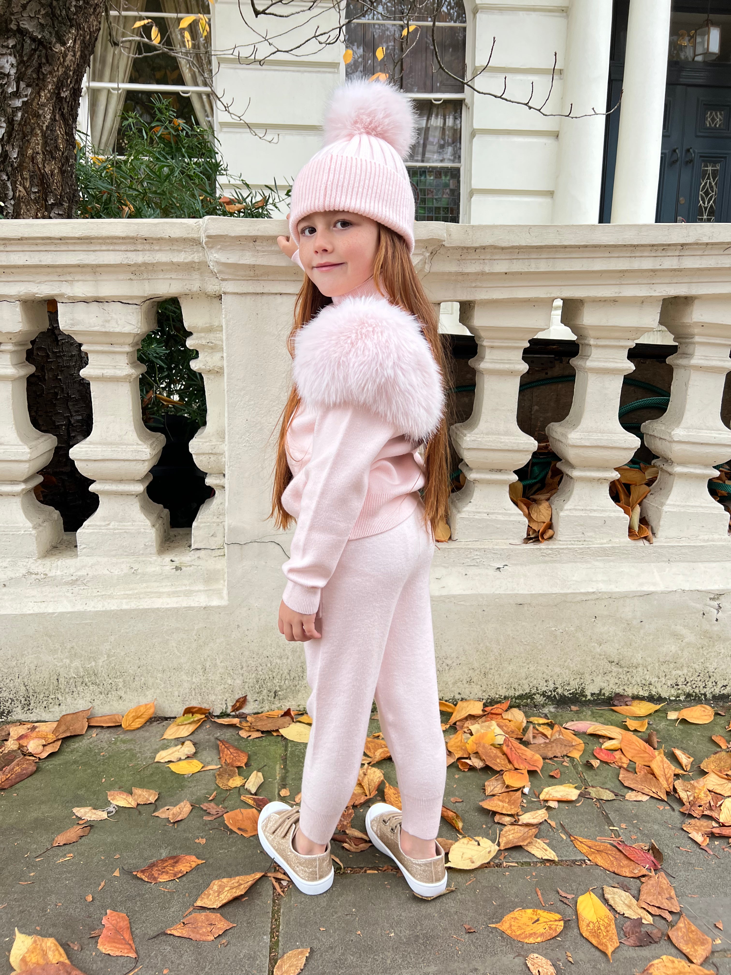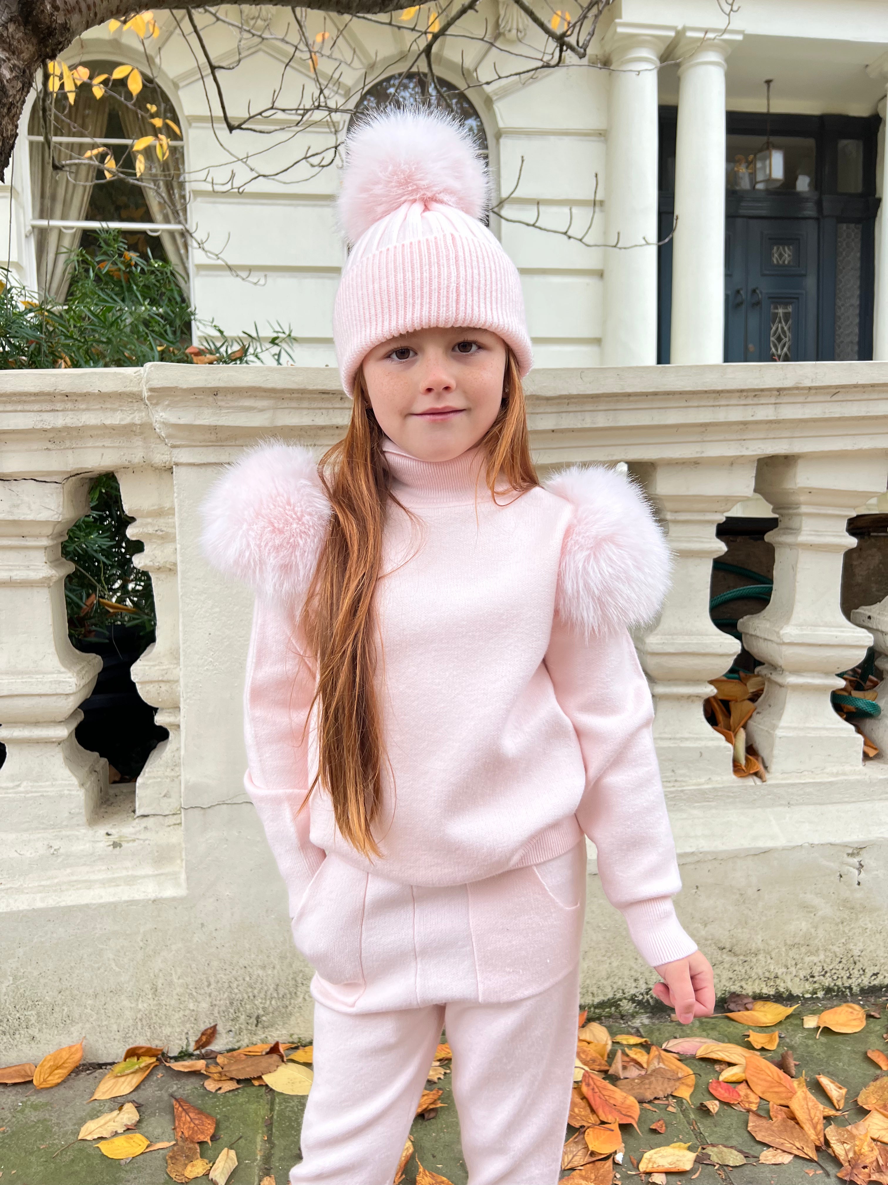 Childrens Baby Pink Premium Faux Fur Roll Neck Jogger Tracksuit