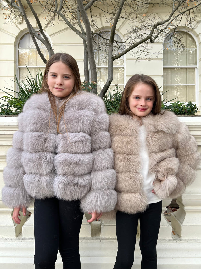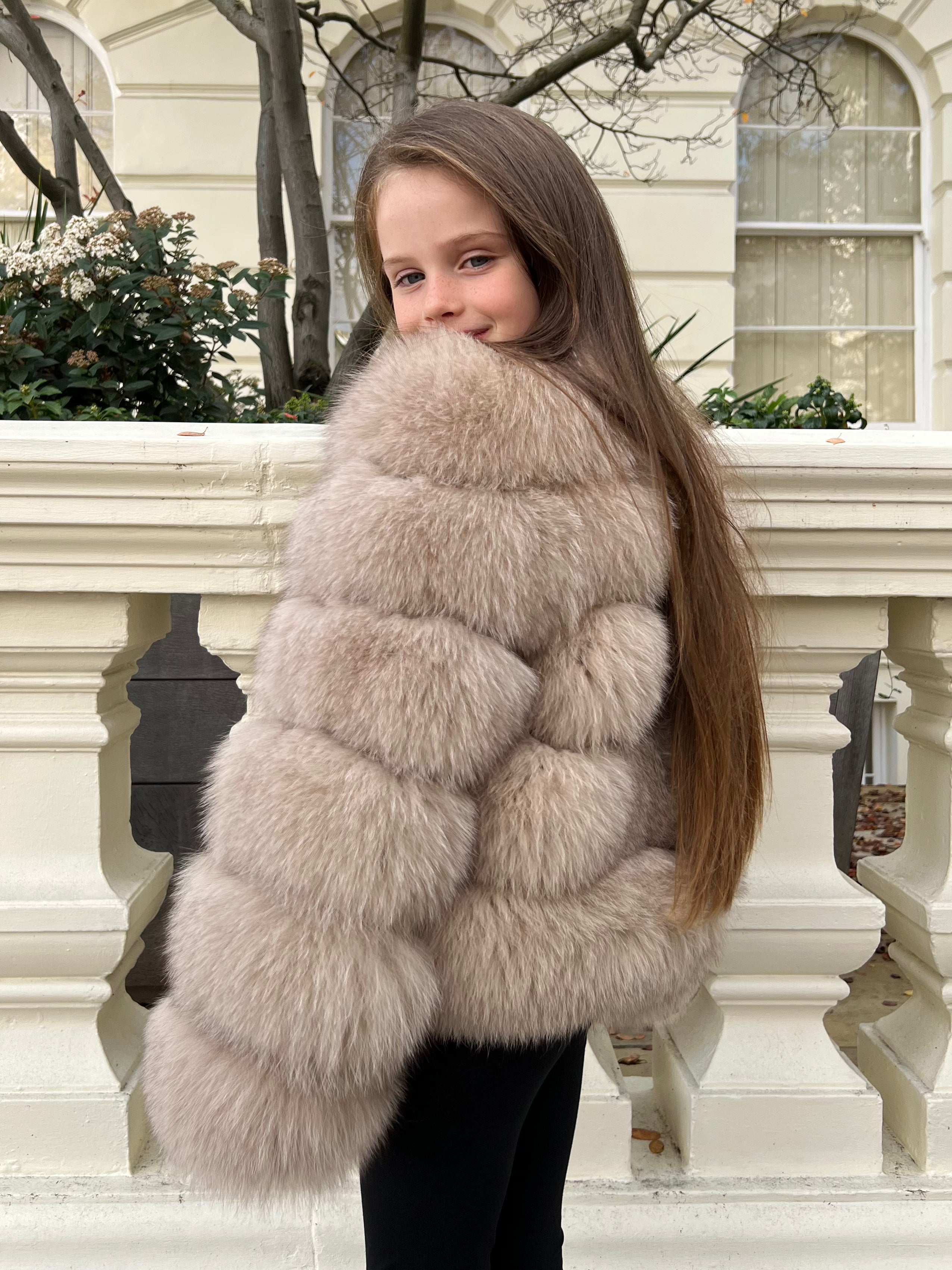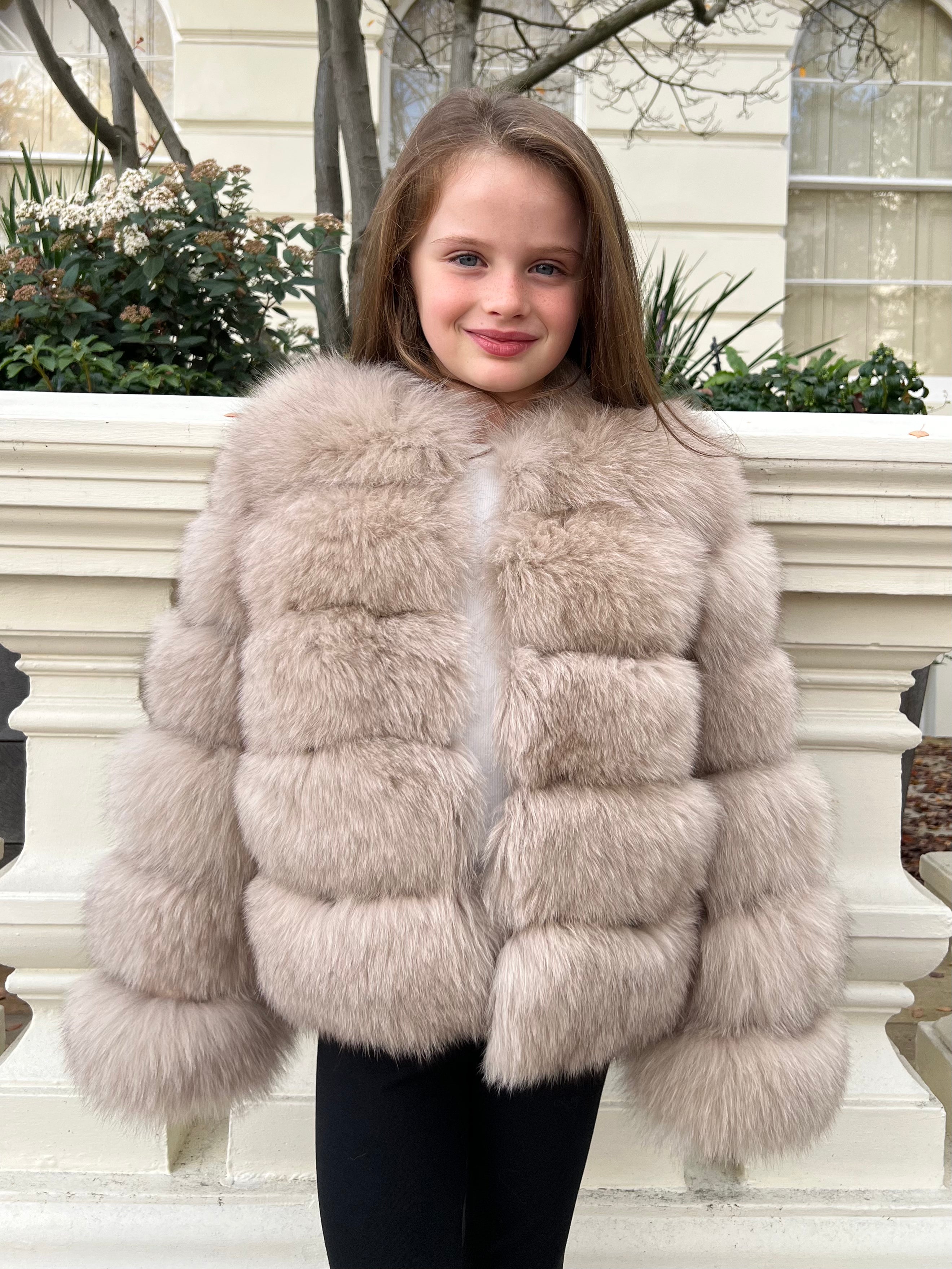 Dunkelbeiger Luxus-Pelzmantel für Kinder