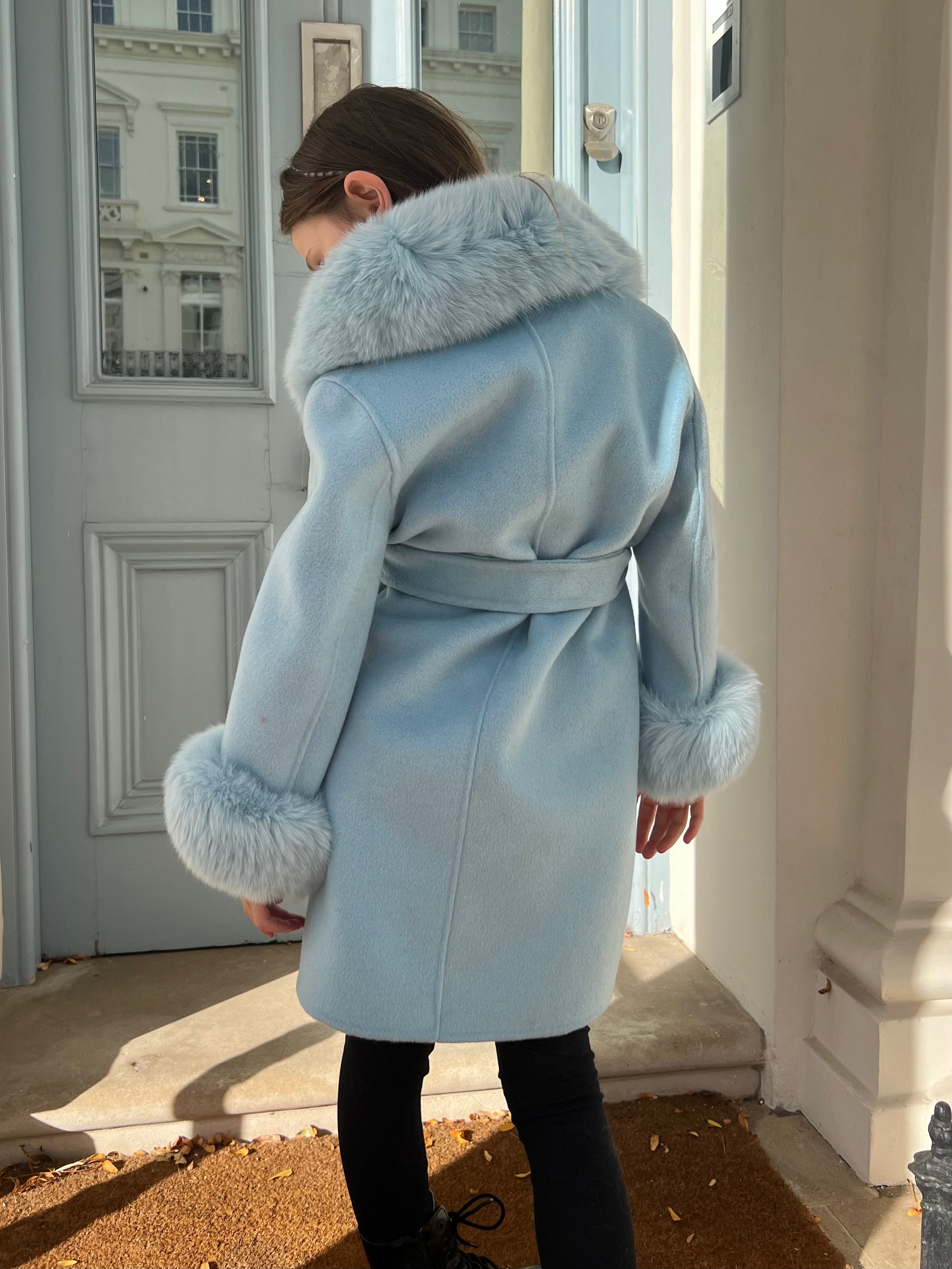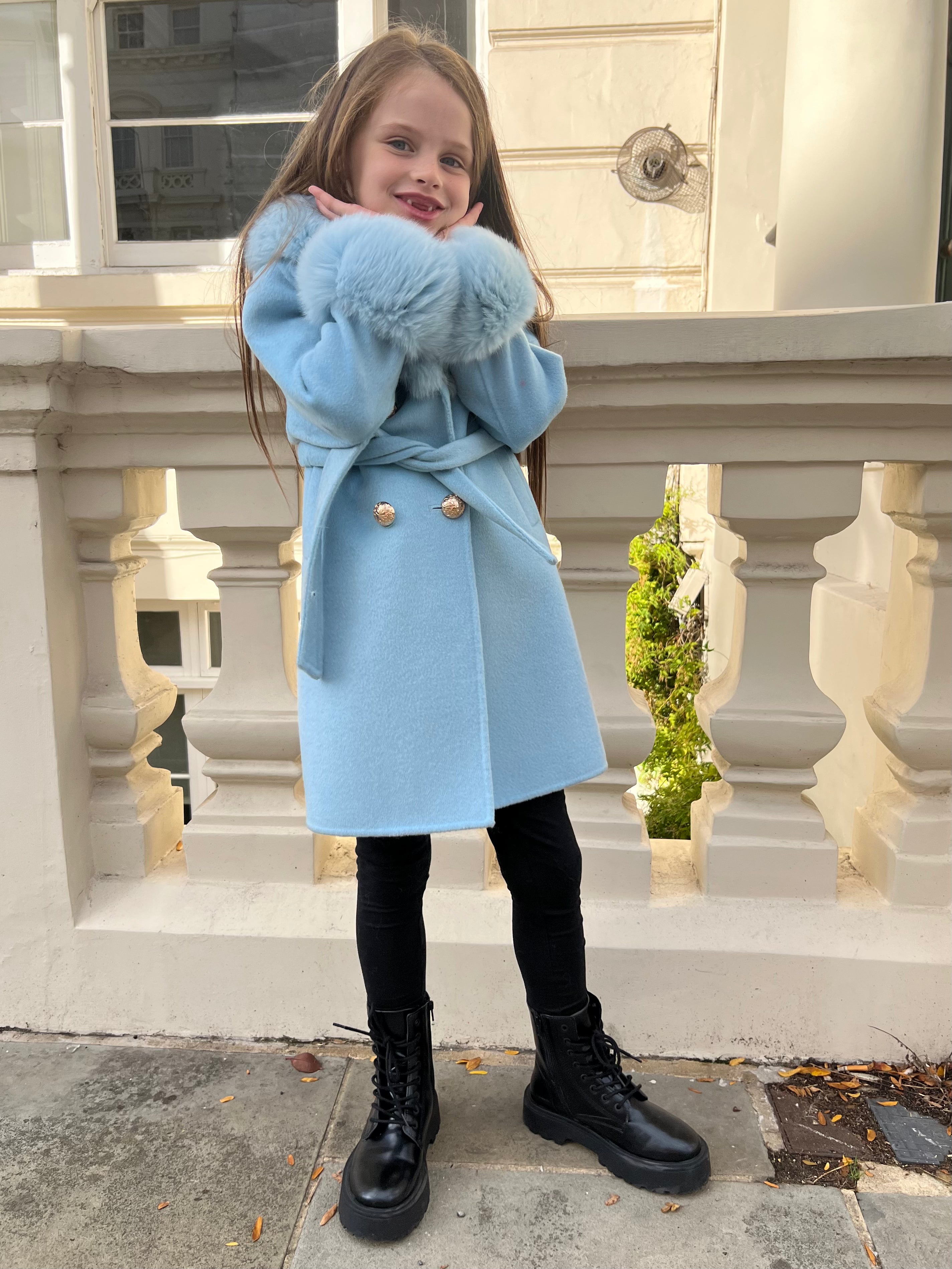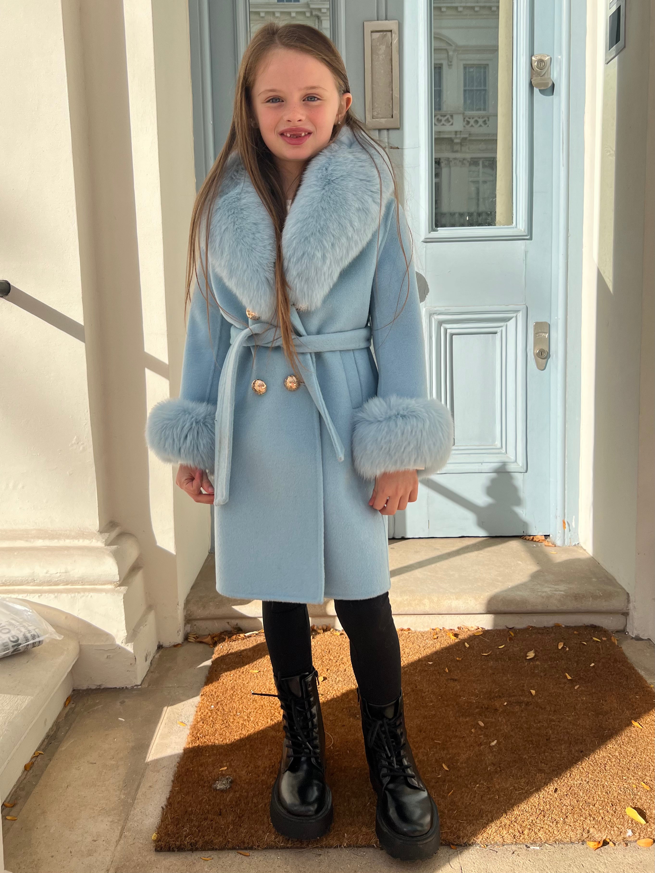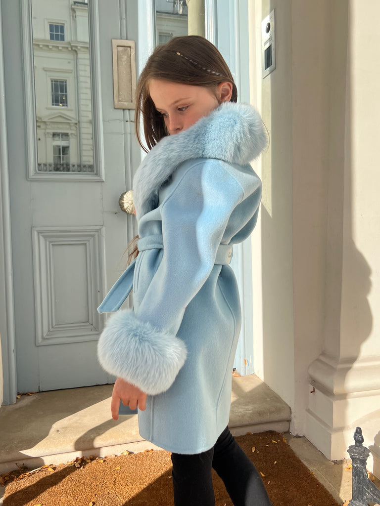 Babyblauer Luxus-Pelzkaschmirmantel für Kinder