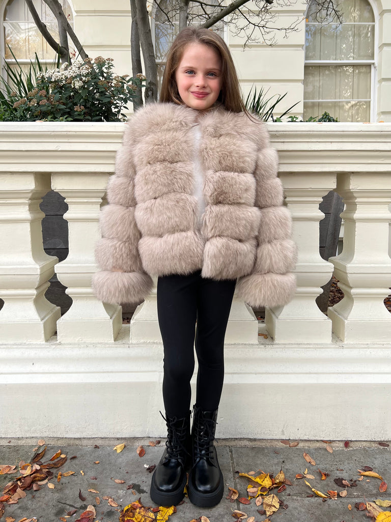Beigefarbener Luxus-Pelzmantel für Kinder