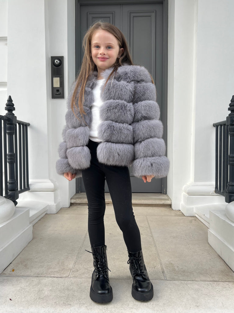 Grauer Luxus-Pelz-Trainingsanzug für Kinder