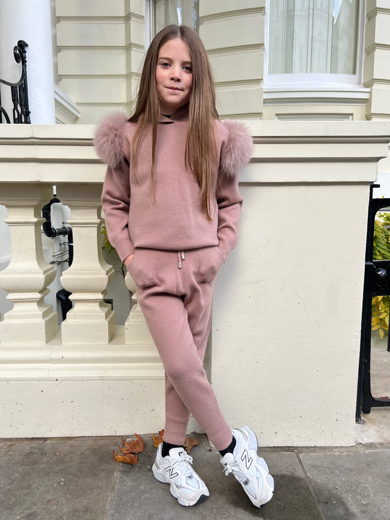 Taupefarbener Luxus-Pelz-Trainingsanzug für Kinder