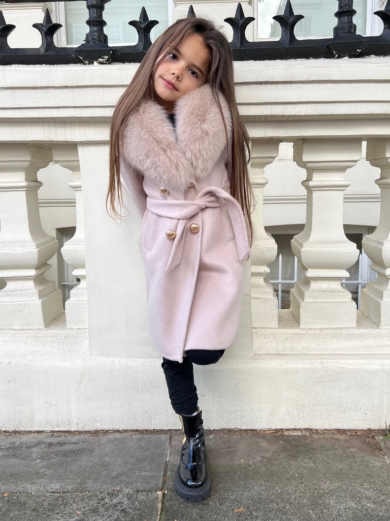 Hellbeiger Luxus-Pelzkaschmirmantel für Kinder