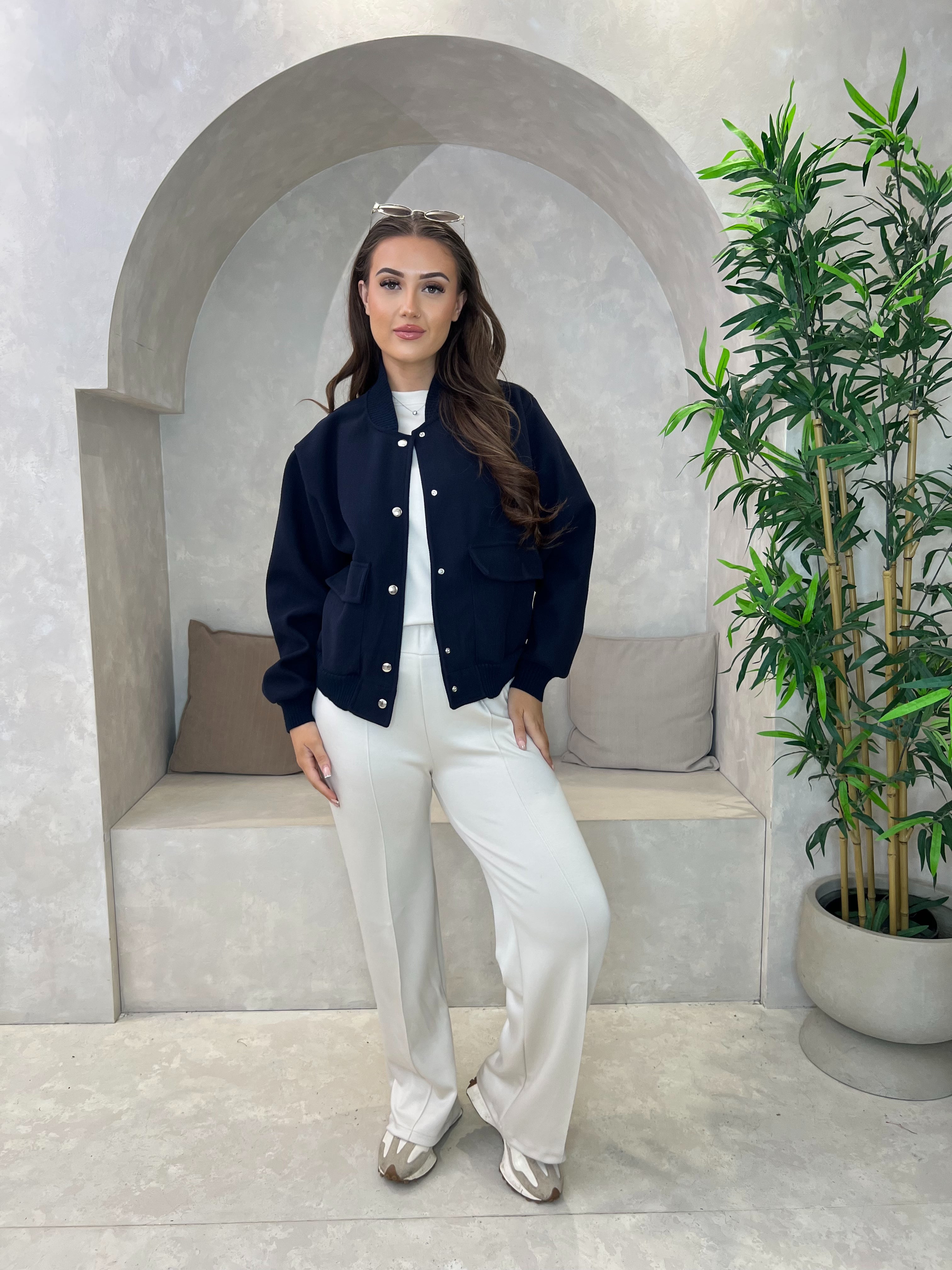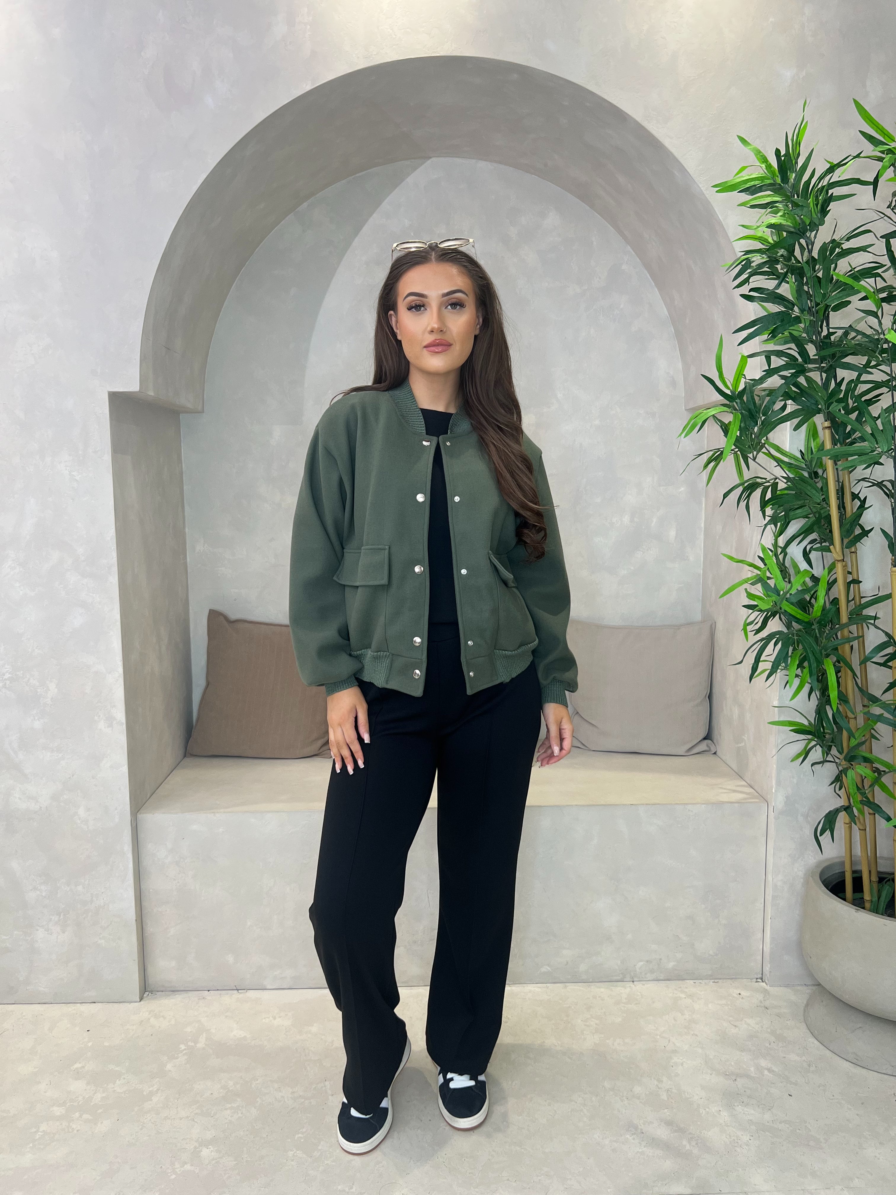 This bomber jacket features a cuffed hem and sleeves, as well as two pockets for convenience. The popper fastening allows for easy and secure closure. Stay stylish and functional with this modern jacket.