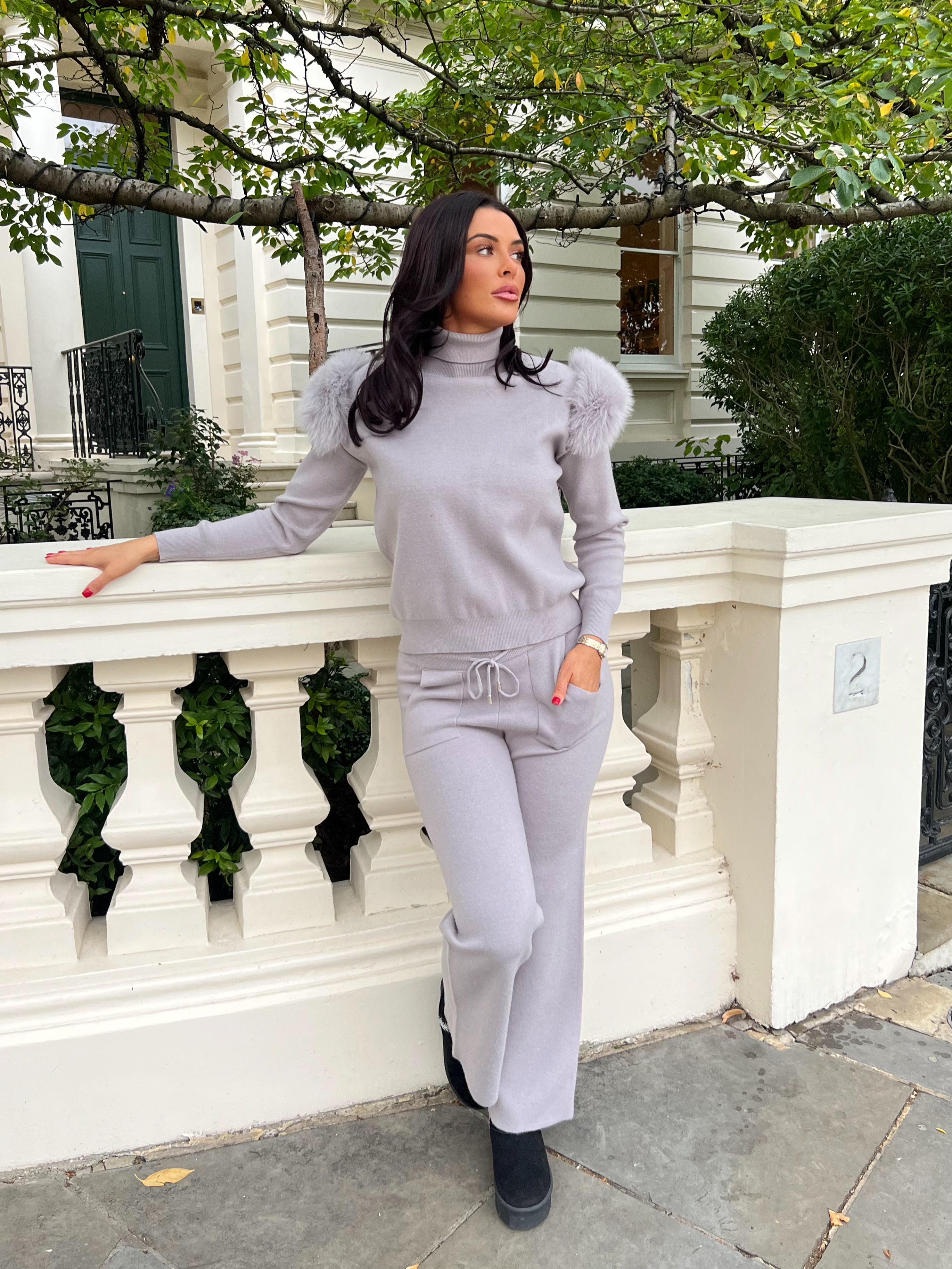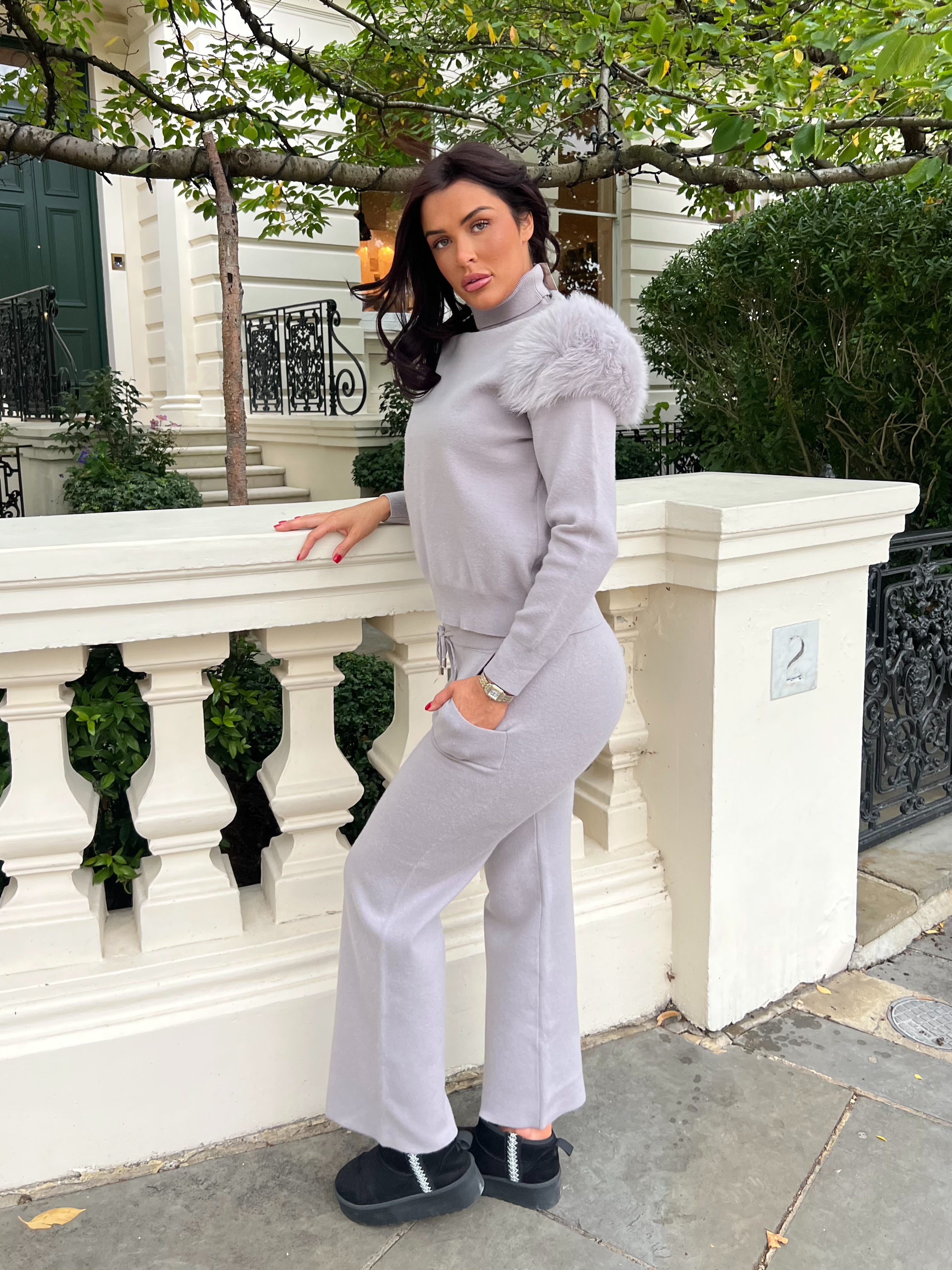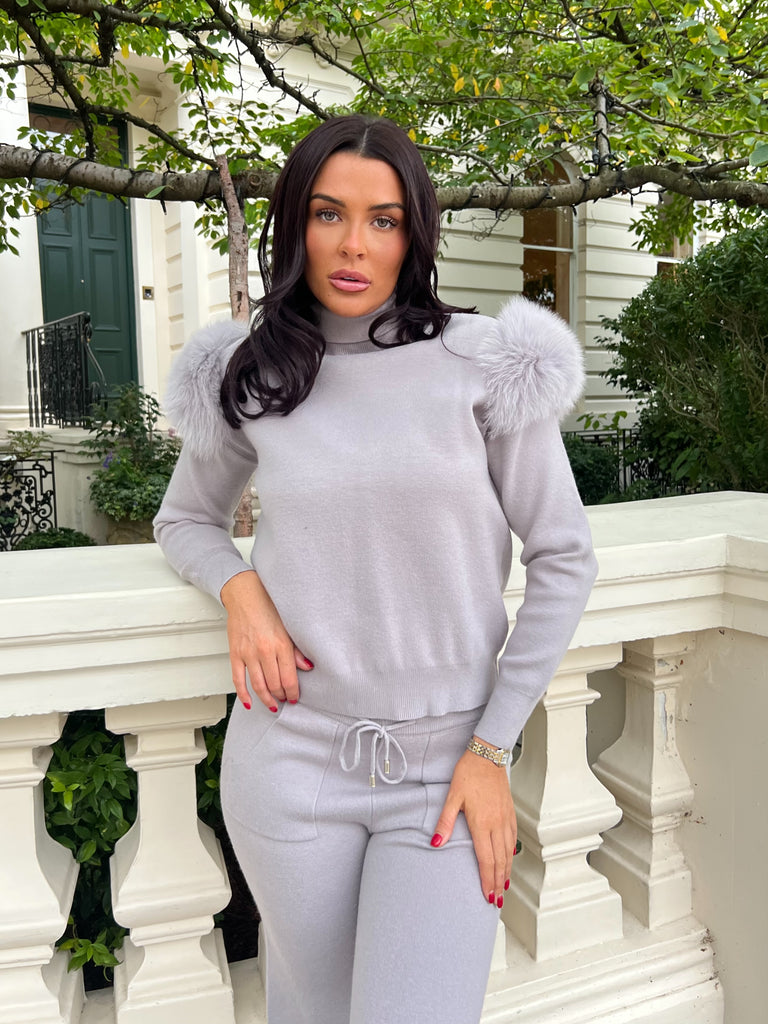 Babyblaues Luxus-Fell-Loungewear-Set