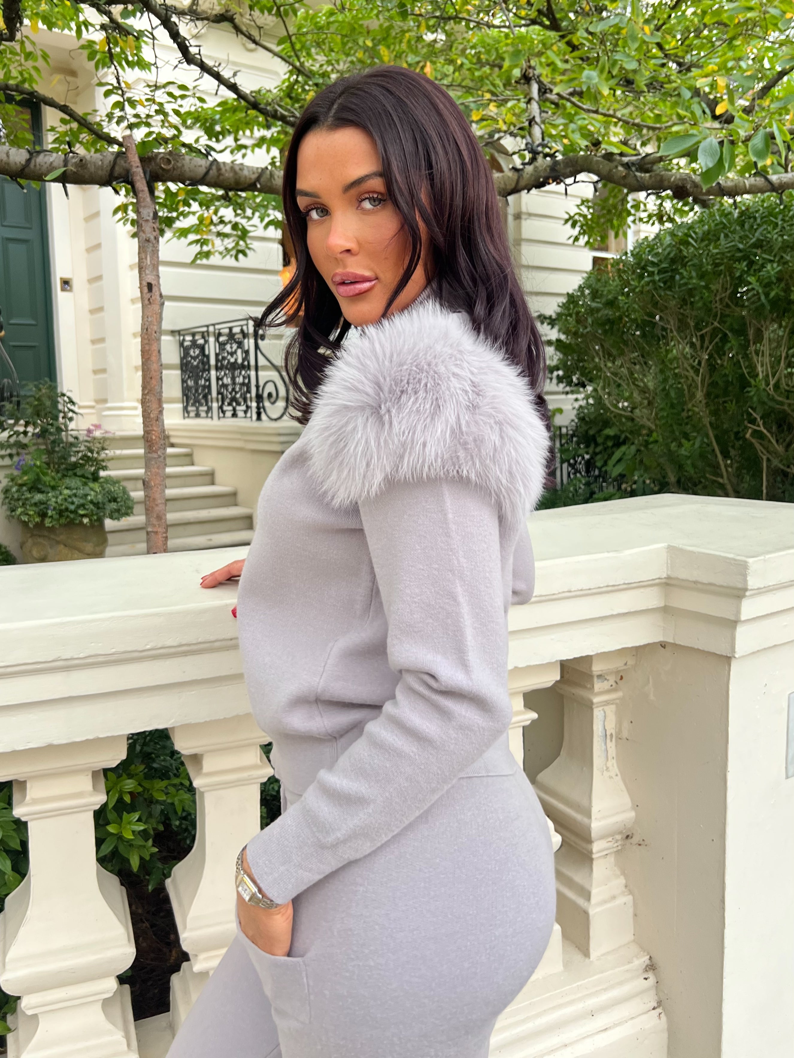 Dieses babyblaue Luxus-Pelz-Loungewear-Set ist aus feinstem Fuchspelz gefertigt und bietet unvergleichlichen Komfort und Stil. Mit Bündchen an den Ärmeln, einem Kordelzug in der Taille und einer kuscheligen Kapuze ist dieses Set perfekt für den Abend zu Hause oder einen entspannten Tagesausflug. Bleiben Sie warm und modisch mit diesem unverzichtbaren Loungewear-Set.