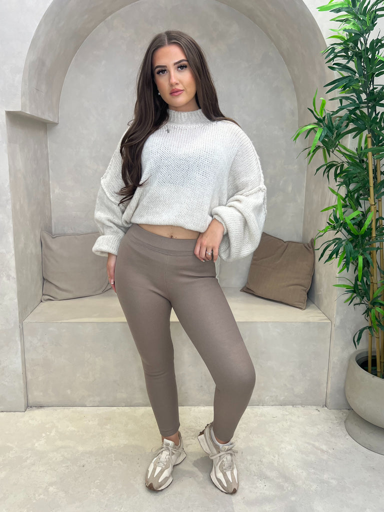 Diese mit Fleece gefütterten Leggings sind Ihre unverzichtbaren Leggings zum Chillen – Sie brauchen sie jetzt. Für einen mühelosen Look haben wir es mit unserem tief ausgeschnittenen Langarm-Body und Stiefeln kombiniert.