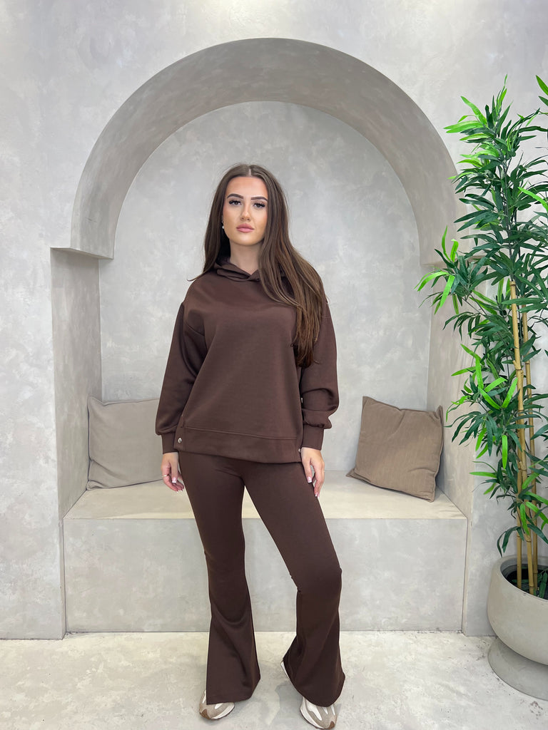Popper Detail Hooded Wide Leg Trouser Co Ord