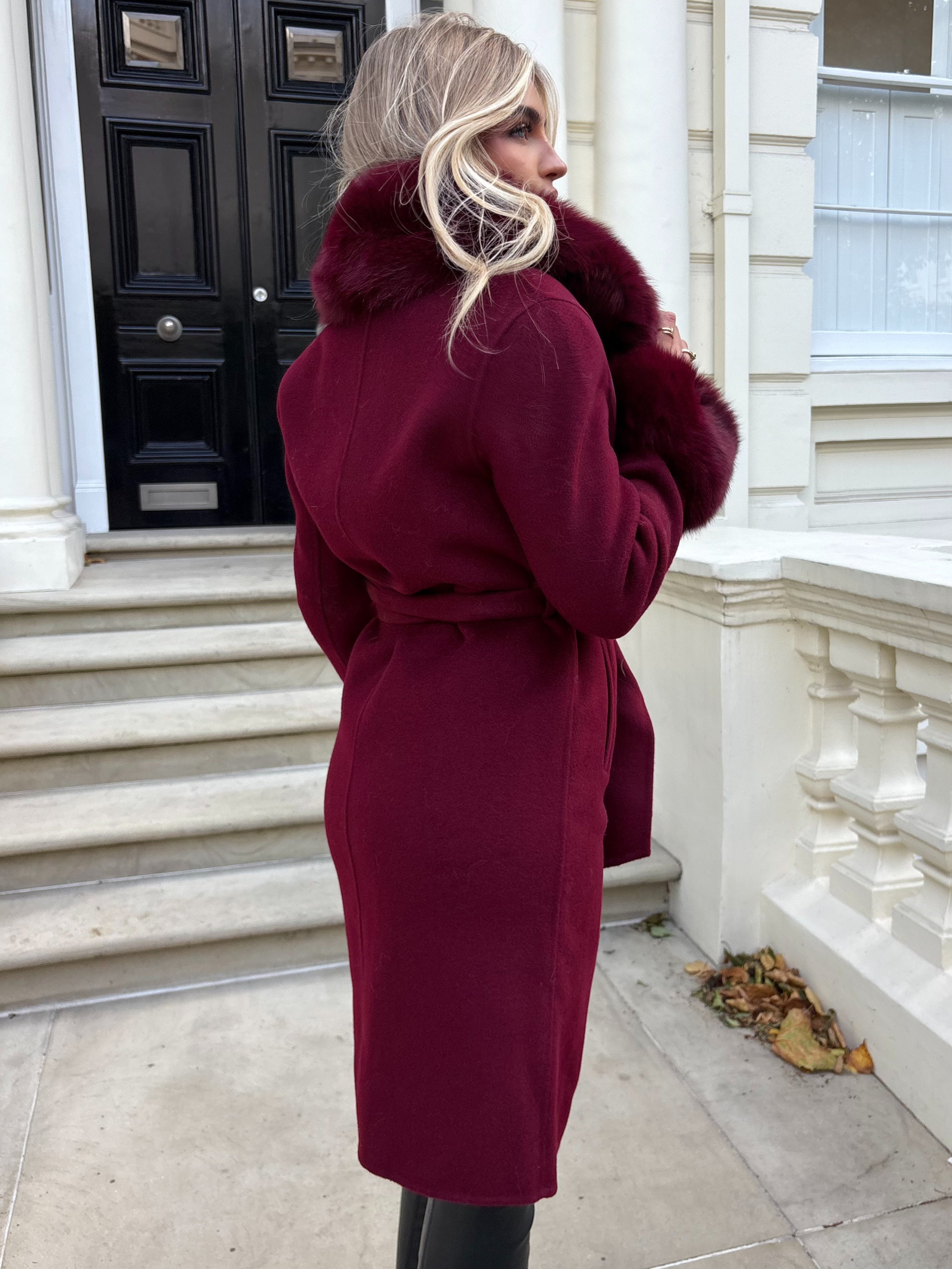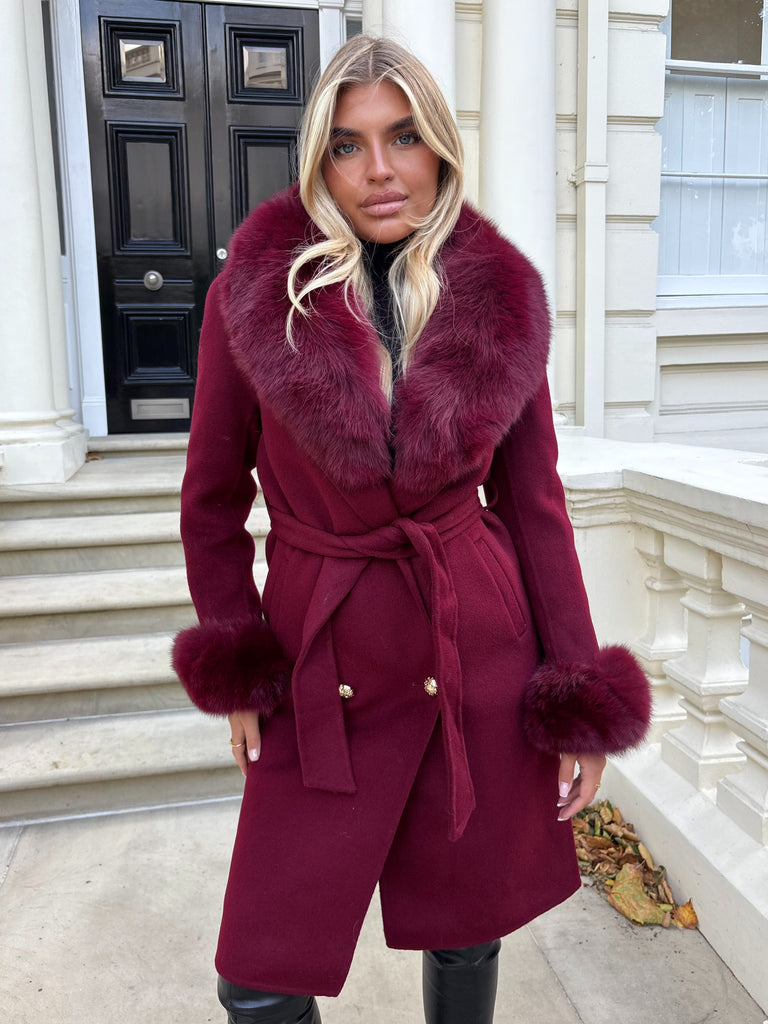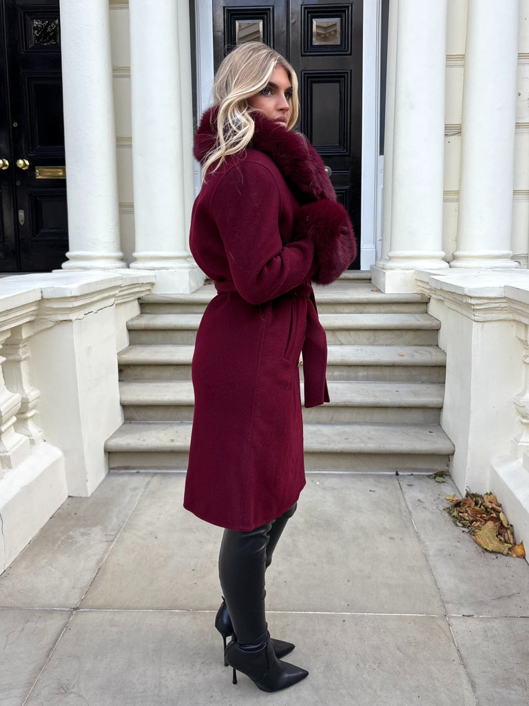 Wie umwerfend ist unser Camel Luxury Fur Cashmere Coat – der Mantel, den Sie diesen Winter brauchen. Mit luxuriösem Pelzbesatz und -manschetten sowie einem Taillengürtel, der Ihnen Form verleiht. Kombinieren Sie es mit einem Winterlook, um eine gemütliche und dennoch schicke Atmosphäre zu schaffen.