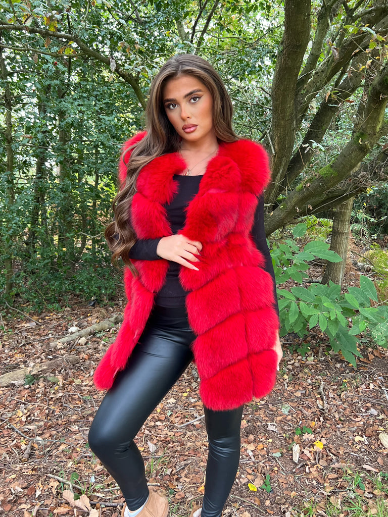 Schwarze Luxus-Pelzweste mit 6 Reihen