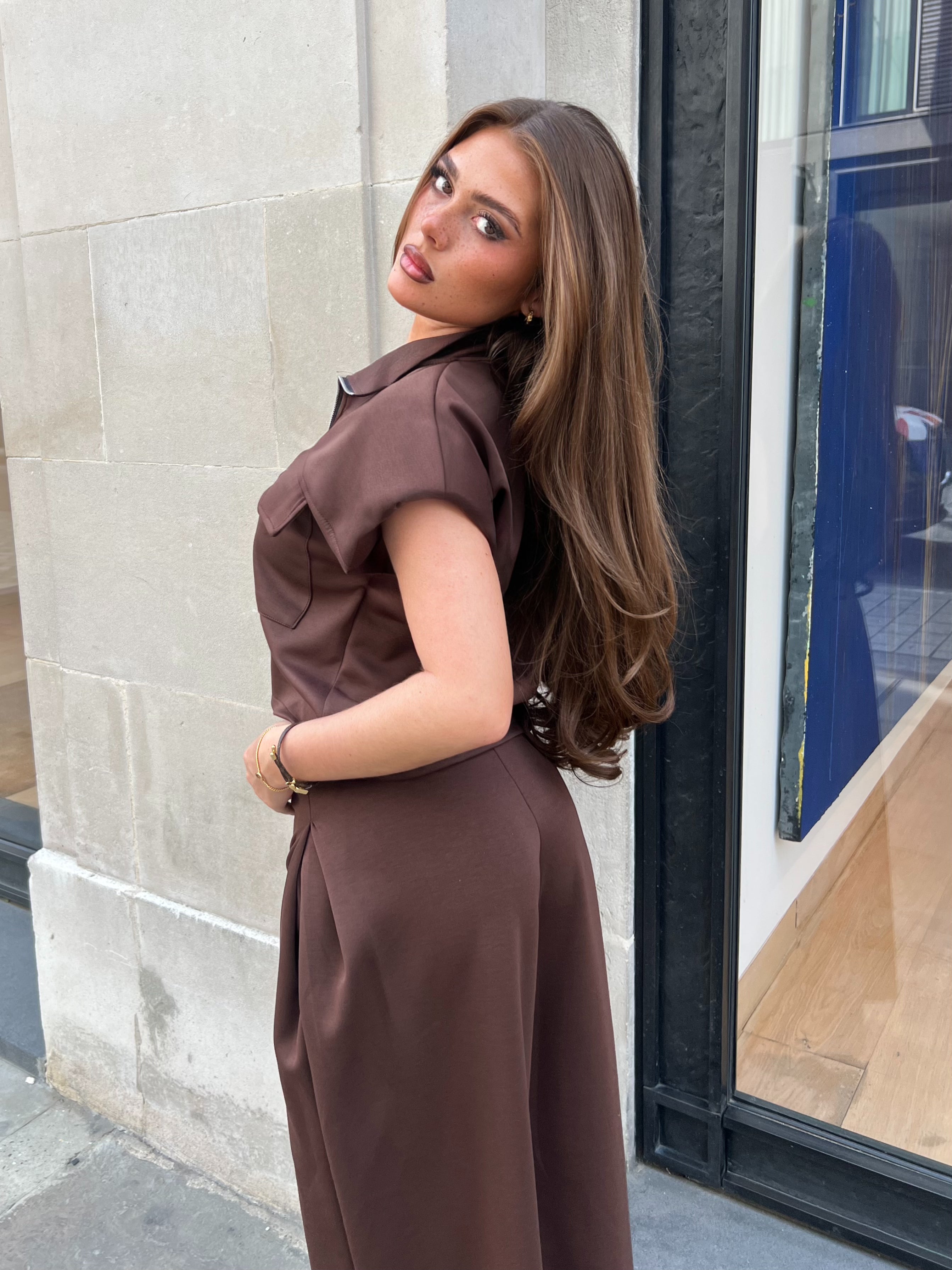 Beigefarbenes T-Shirt mit Flügelärmeln