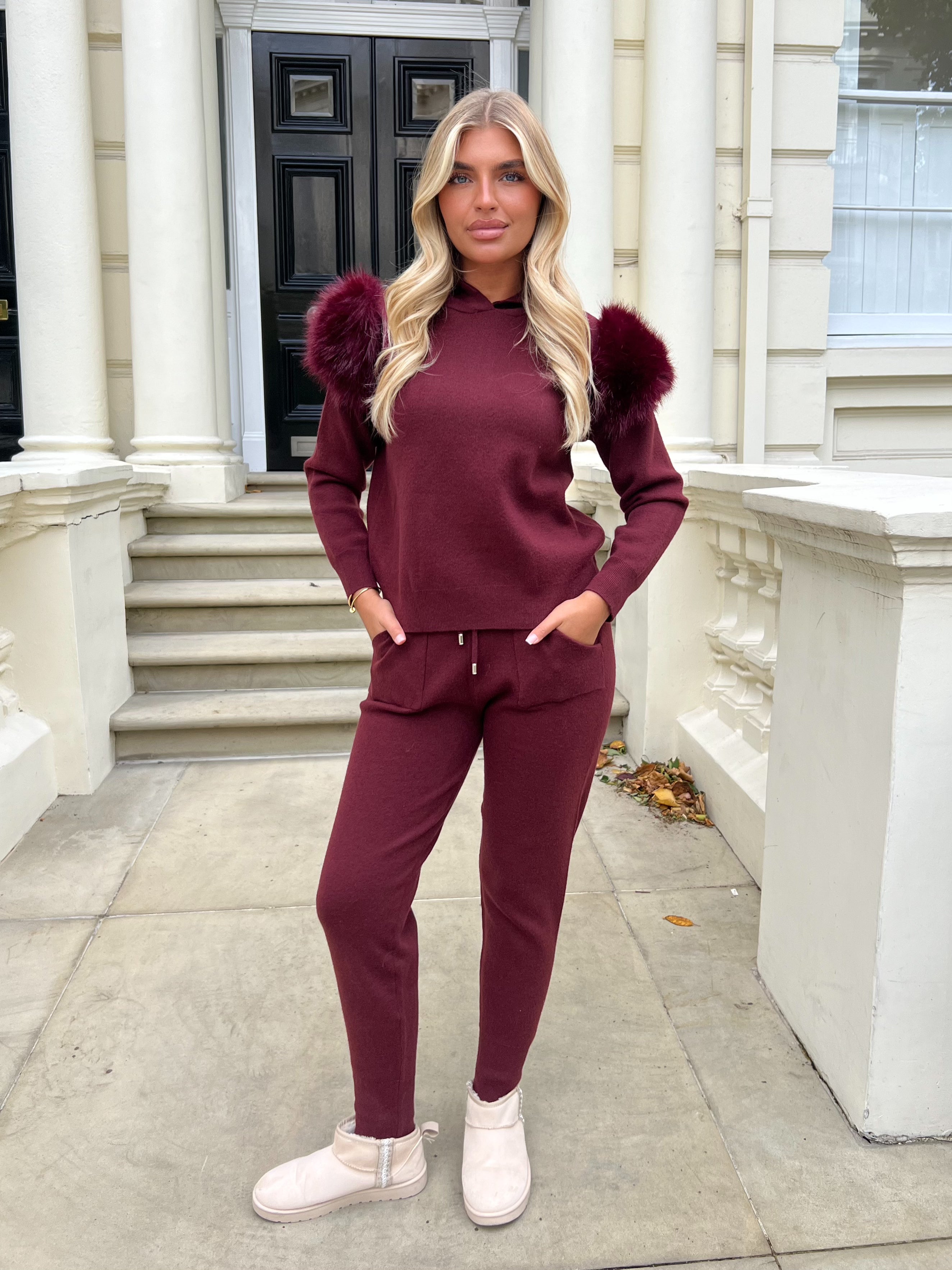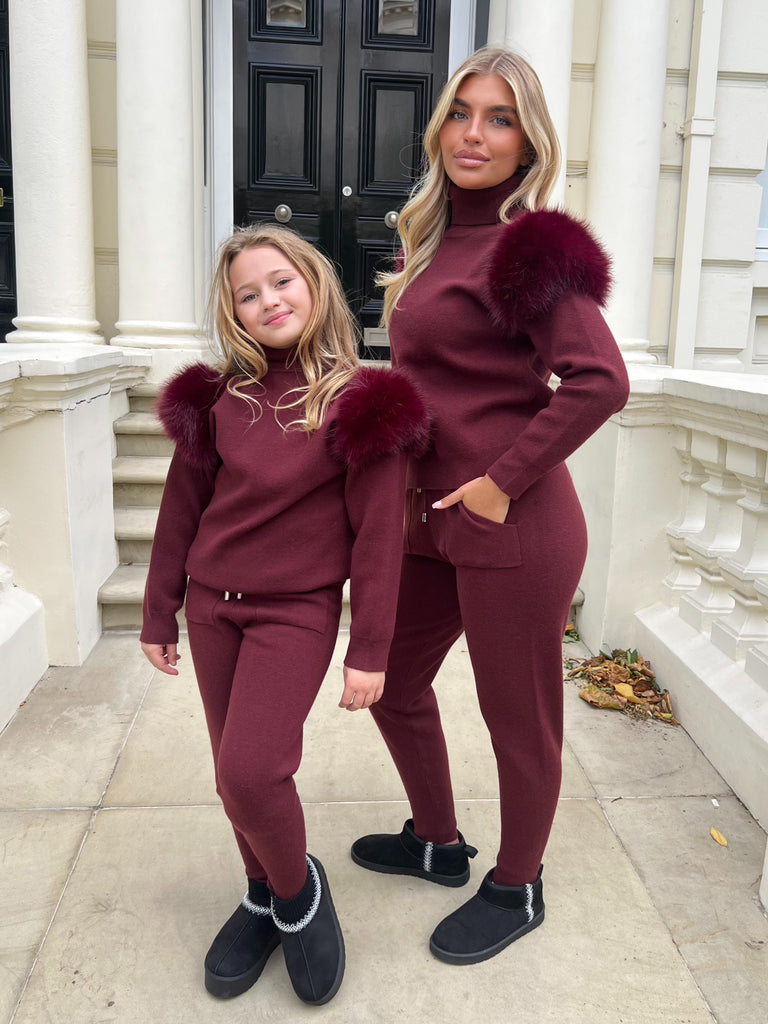 Burgundy Premium Faux Fur Jogger Tracksuit
