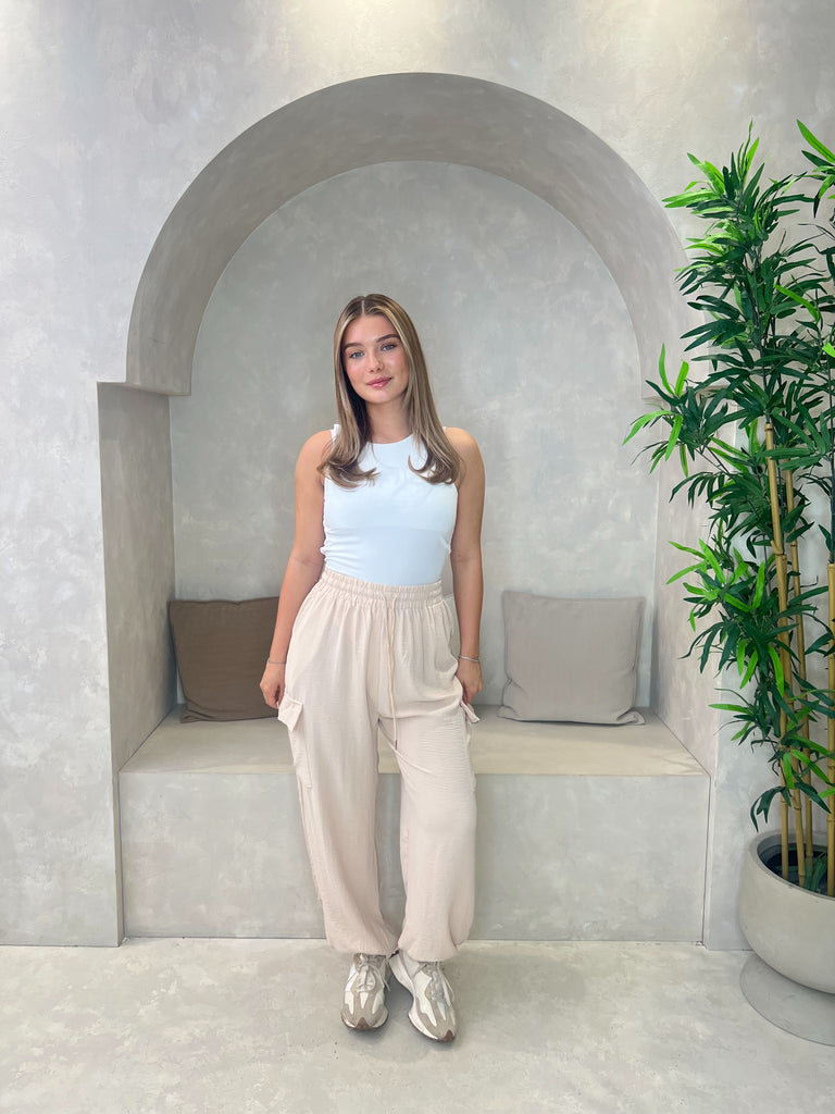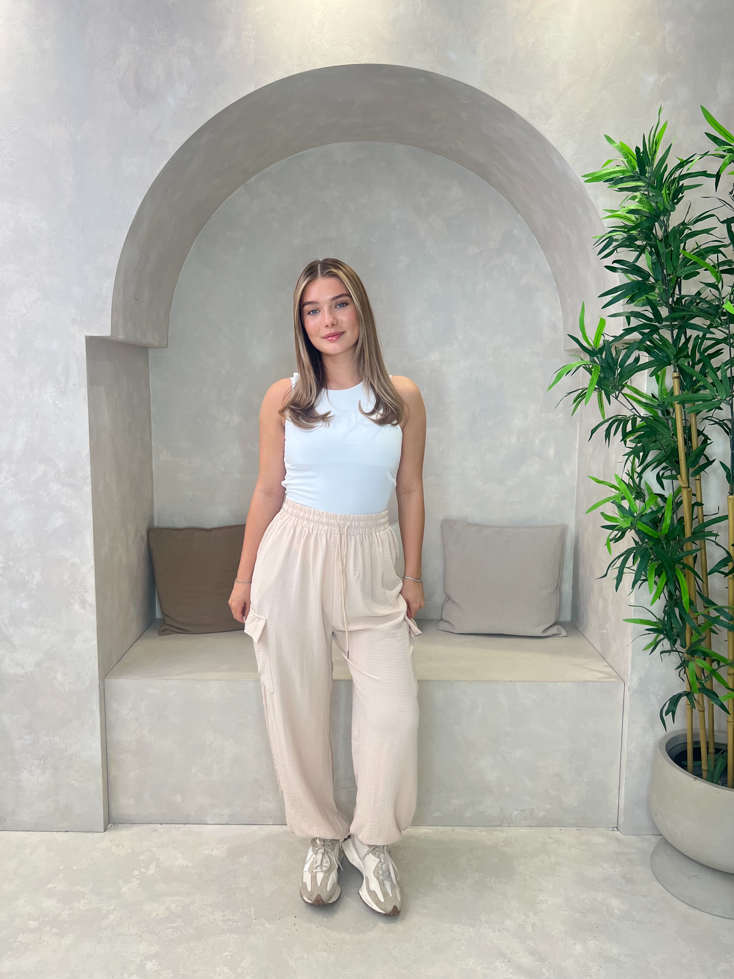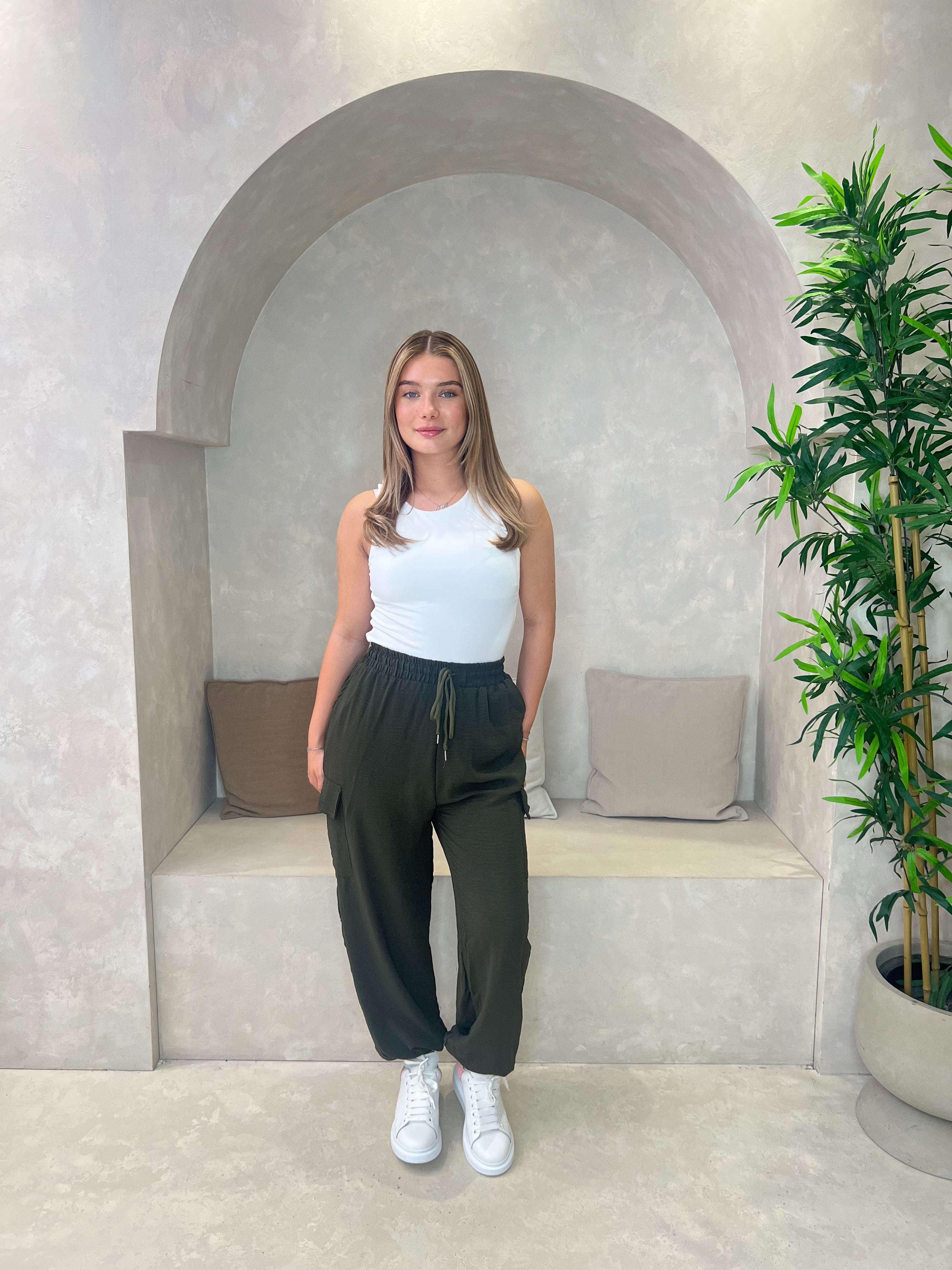 Unsere übergroßen Cargohosen sind fachmännisch auf Funktionalität und Stil ausgelegt und ein Muss für jede Garderobe. Mit mehreren praktischen Taschen, Bündchen am Saum für einen eleganten Look und einem Kordelzug für die perfekte Passform bietet diese Hose sowohl Funktionalität als auch Komfort. Perfekt für jeden Anlass, von der Arbeit bis zu Wochenendabenteuern.