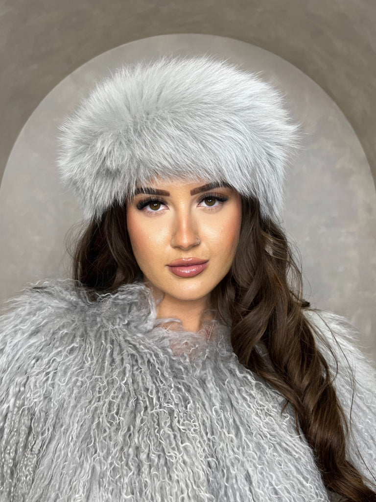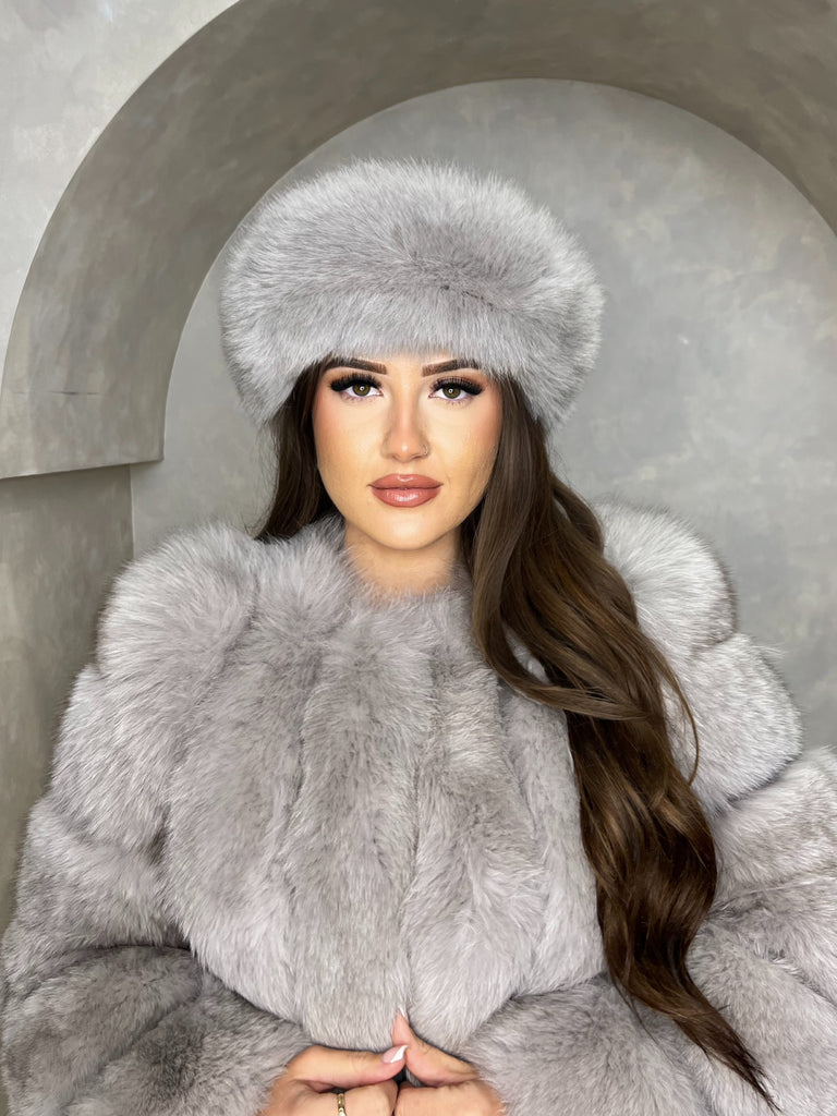 Hellbraune Luxus-Pelzjacke mit 5-reihigen kurzen Ärmeln