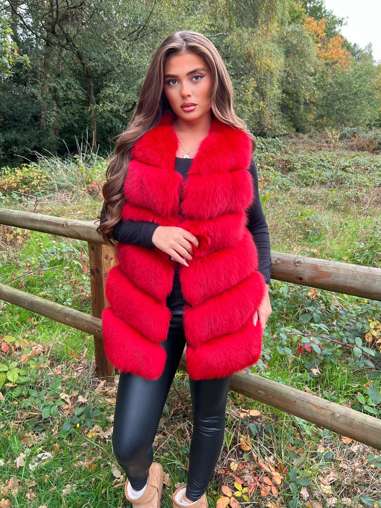 Schwarze Luxus-Pelzweste mit 6 Reihen